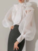 2025 Spring Summer New Fashion Korean Shirt Female Bow Tie Collar Retro Bubble Long-Sleeve Elegant Harajuku Temperament Blouse
