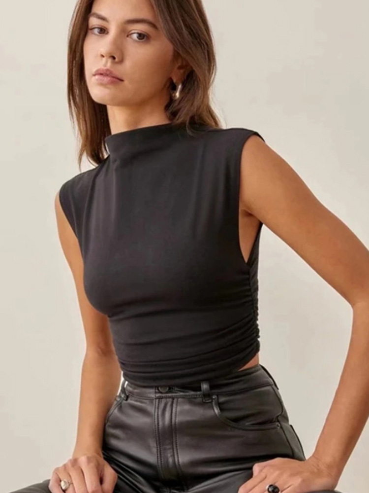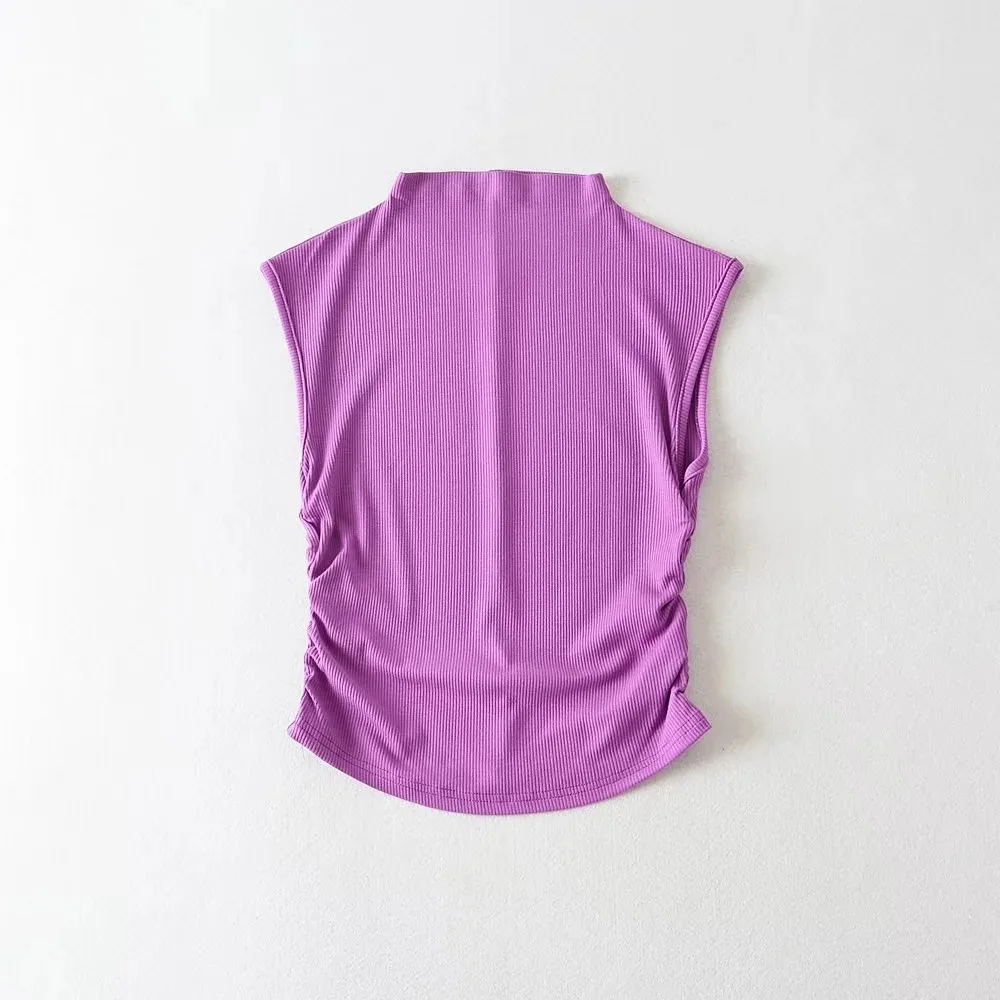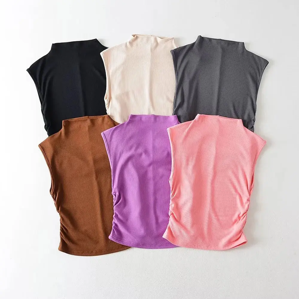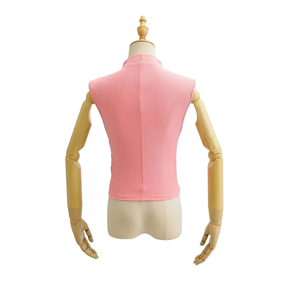2025 Summer Black Turtleneck Crop Tank Top Pink Purple Solid Sleeveless Women Tee Tshirt Rave Outfits E Girl Colorful