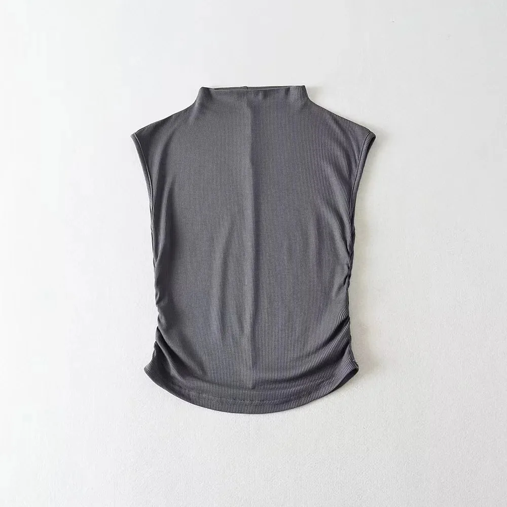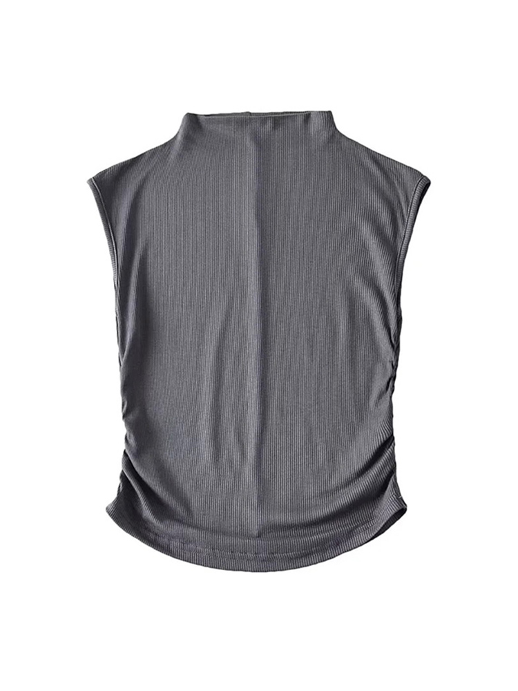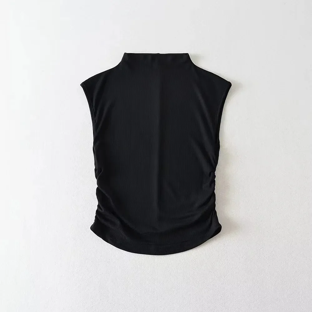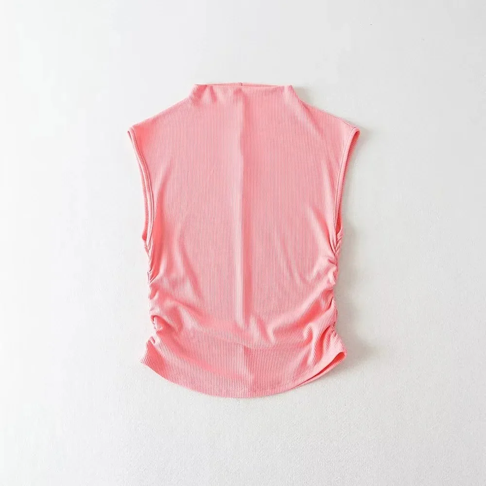2025 Summer Black Turtleneck Crop Tank Top Pink Purple Solid Sleeveless Women Tee Tshirt Rave Outfits E Girl Colorful