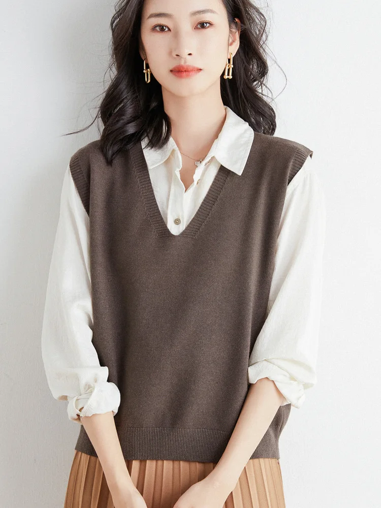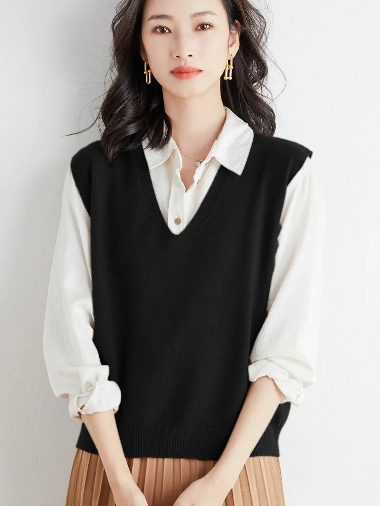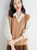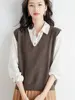 2025 Sweater Vest Spring Autumn Warm Fashin Korean Soft Loose Knit Vest V-neck Knitwear Solid Pullovers Short Style Sweater Vest