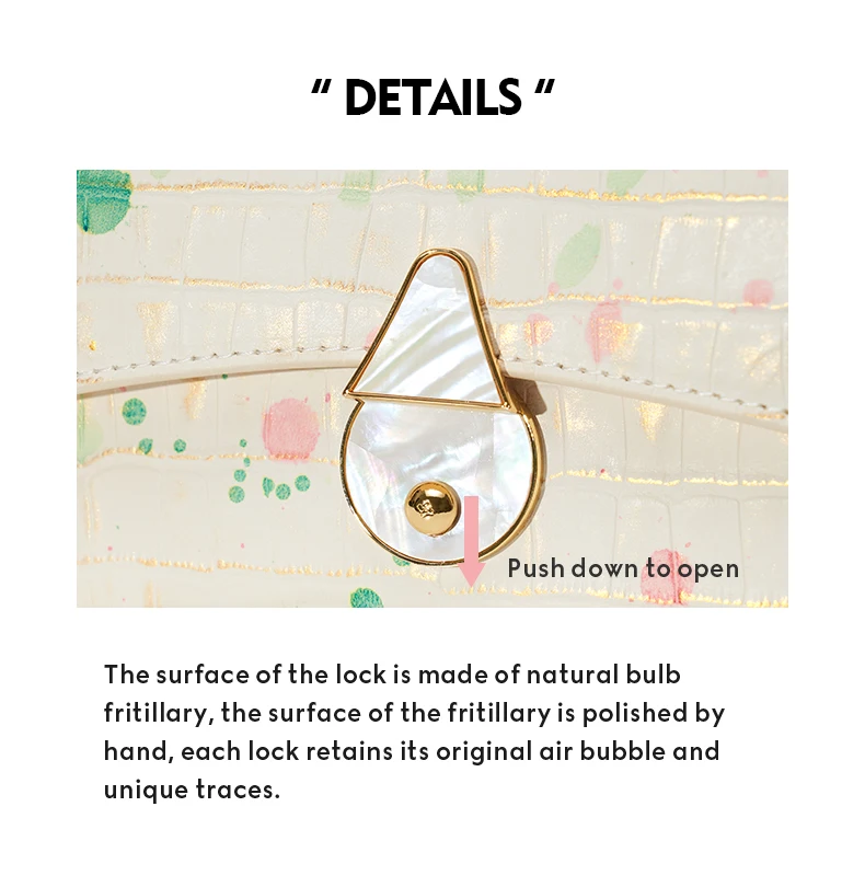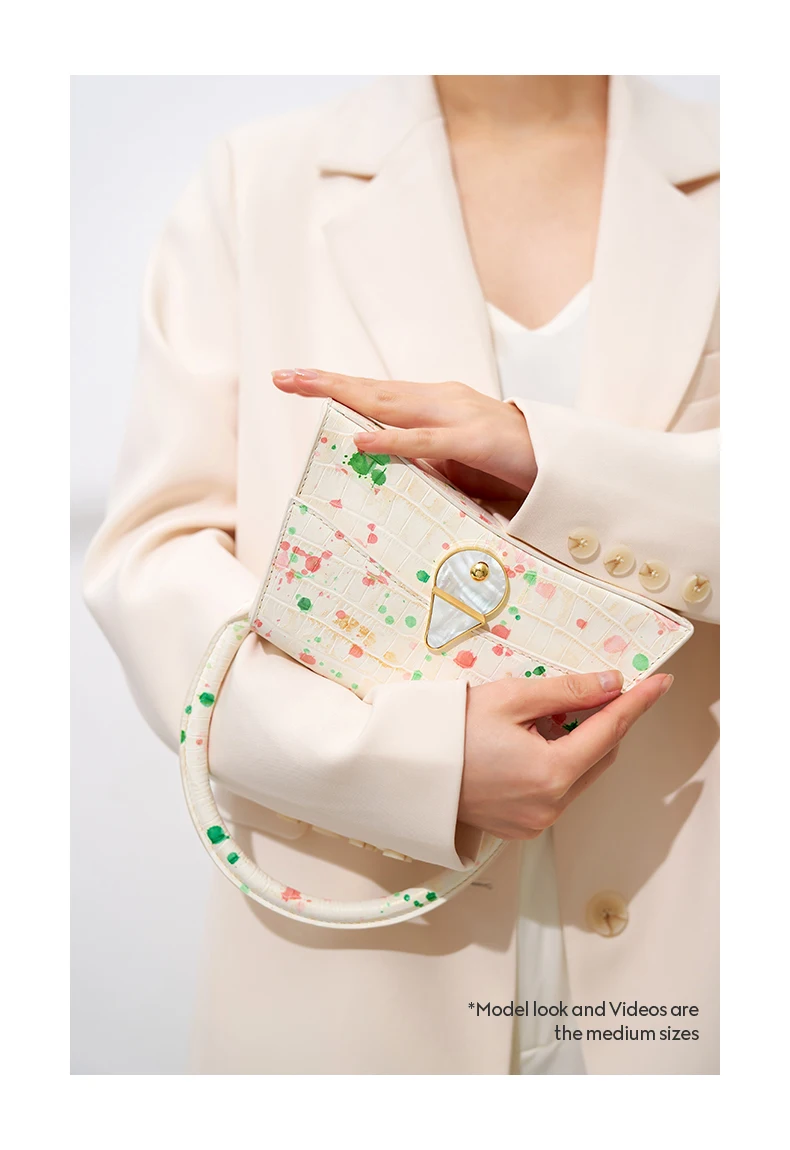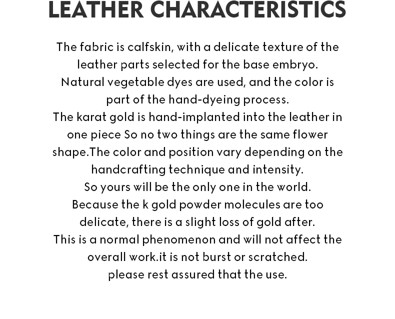 I'm not sure what kind of leather it is. It's light in weight and has a pretty pattern. Moreover, gold washing is luxurious. The sewing is careful and looks high-quality. I was a little disappointed because it was a new version that was different from the picture, but it's still a pretty bag.