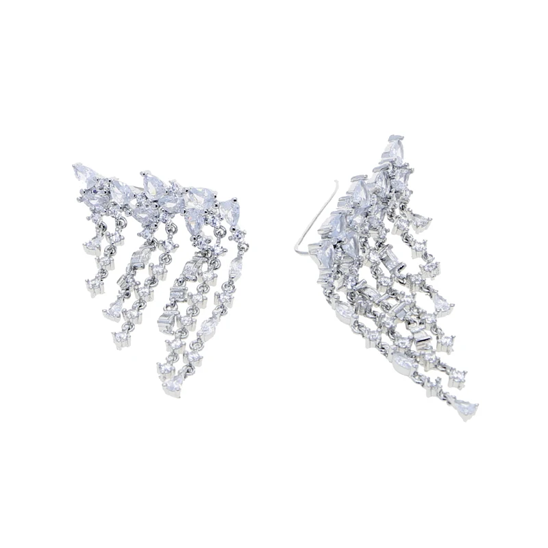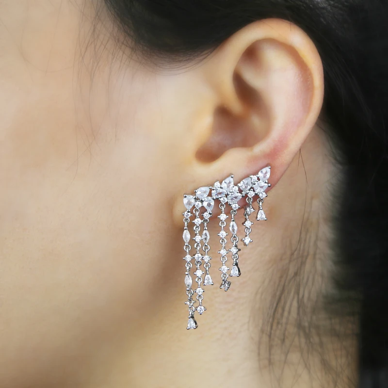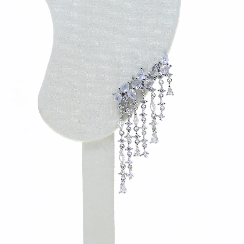 Silver Color Sparking Bling Women Fashion Jewelry 5A Cubic Zirconia CZ Tassel Dangle Drop Earring