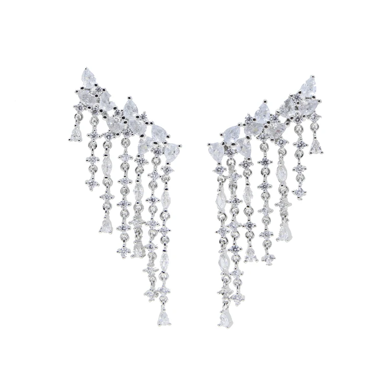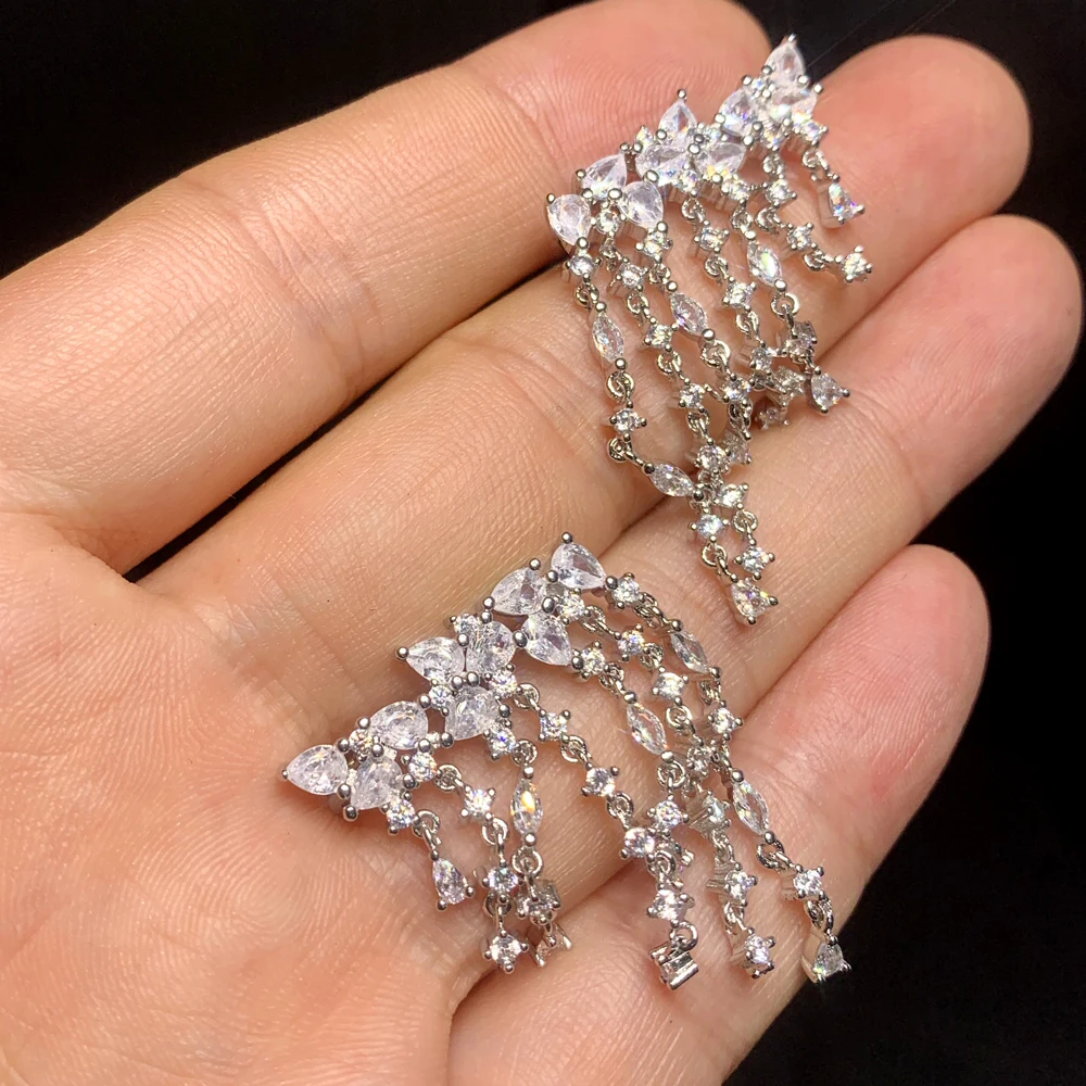 2026 Fashion Silver Color Sparking Bling Women Fashion Jewelry 5A Cubic Zirconia CZ Tassel Dangle Drop Earring