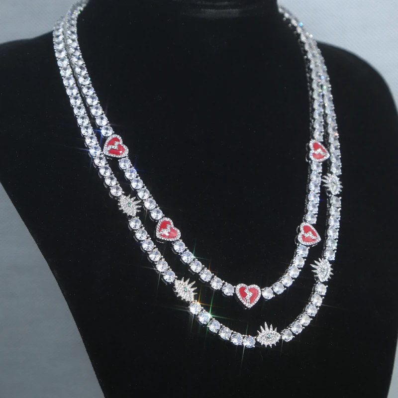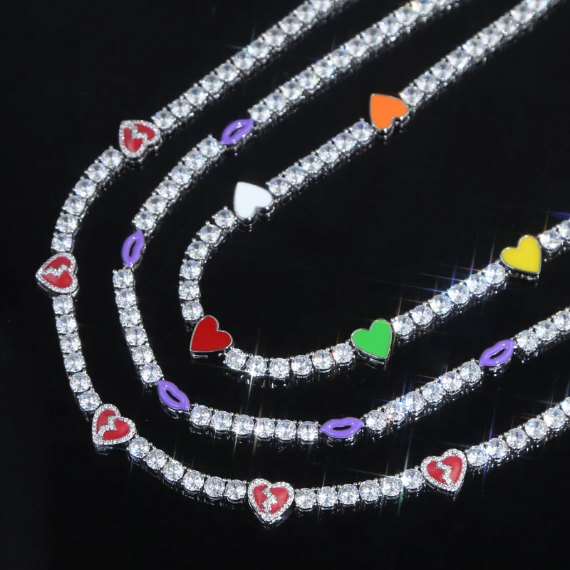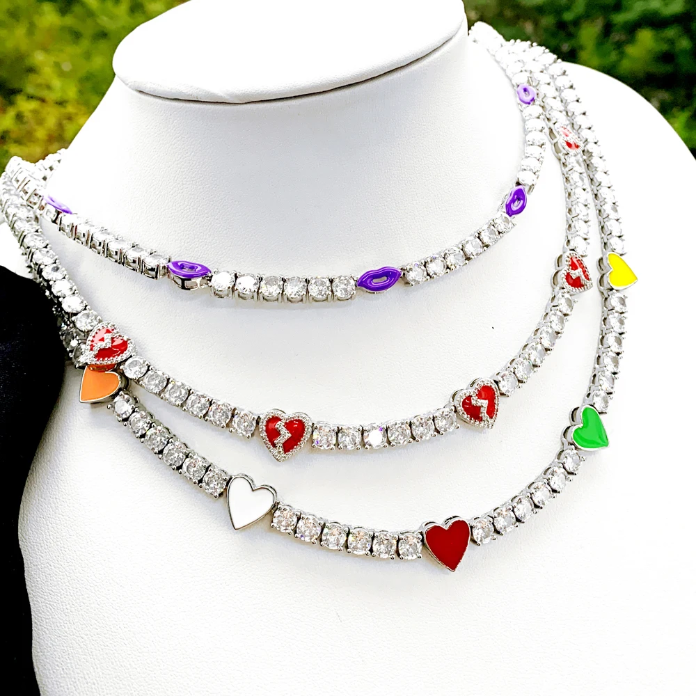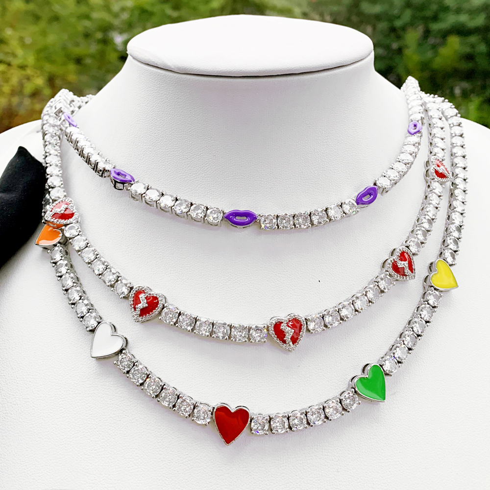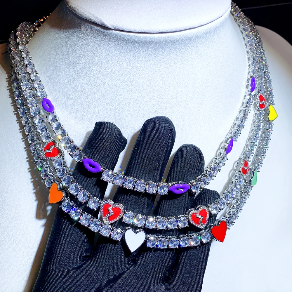 2026 New Fashion Iced Out Bling 5mm Heart Tennis Chain Necklace Iced Out Cubic Zirconia Choker For Women Men Hip hop Jewelry