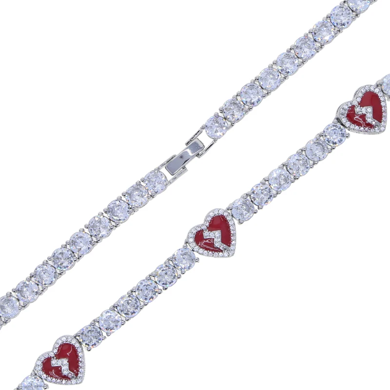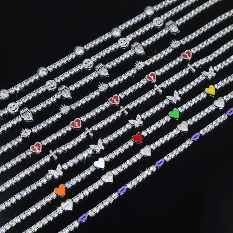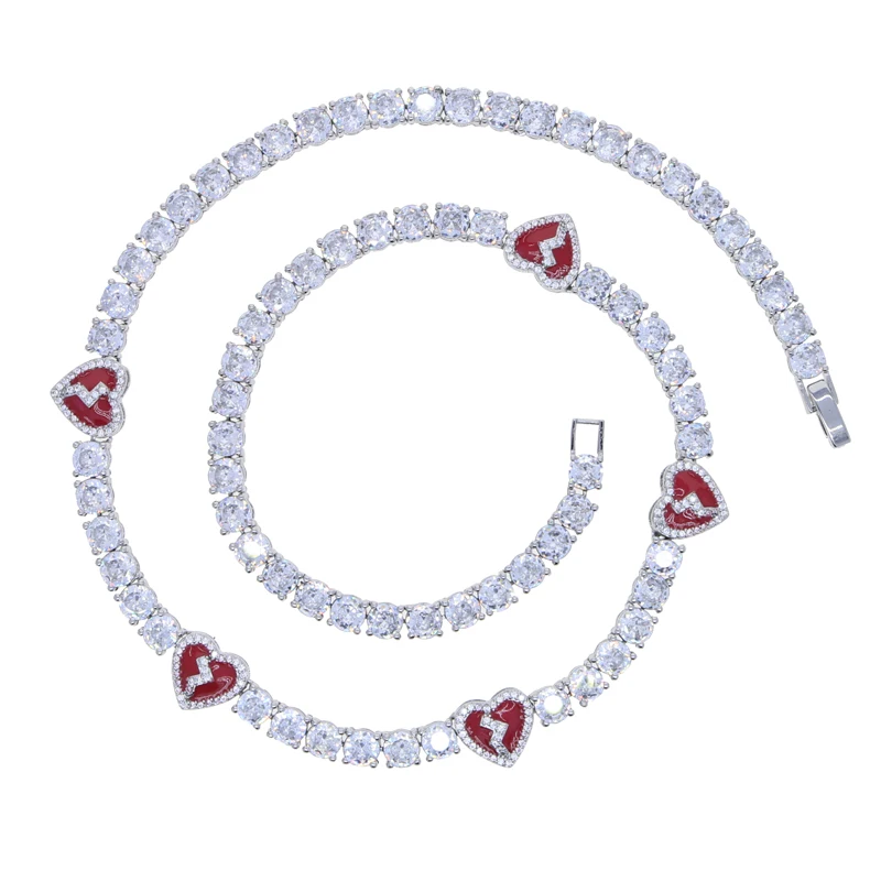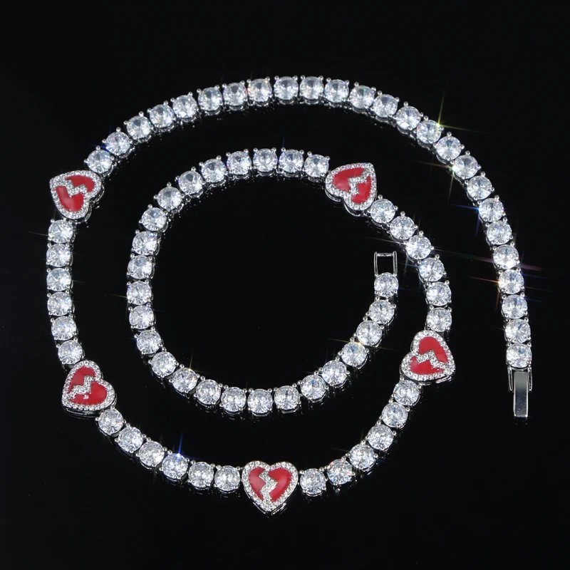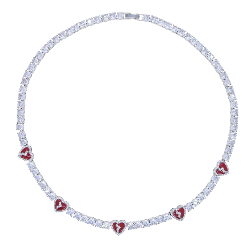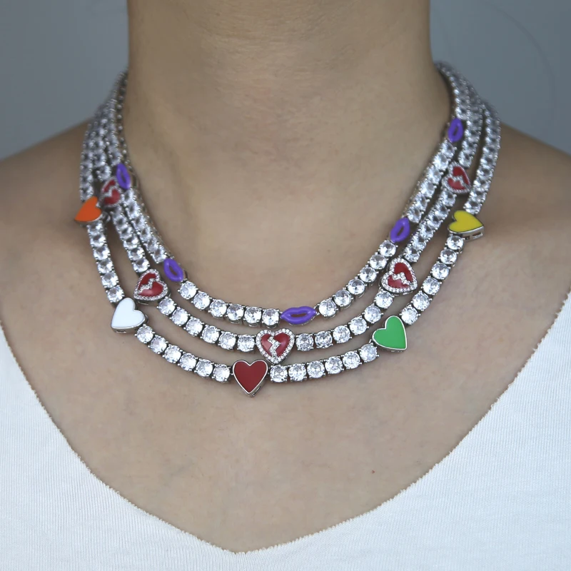 2026 New Fashion Iced Out Bling 5mm Heart Tennis Chain Necklace Iced Out Cubic Zirconia Choker For Women Men Hip hop Jewelry