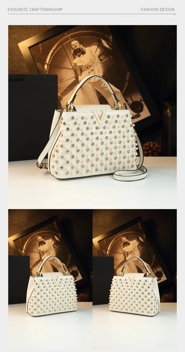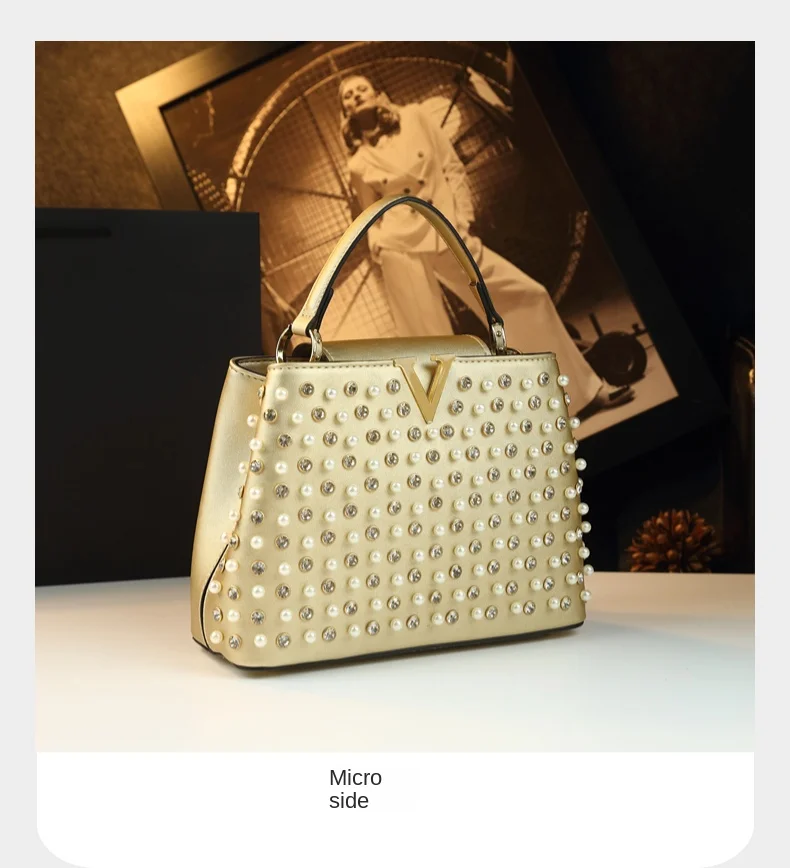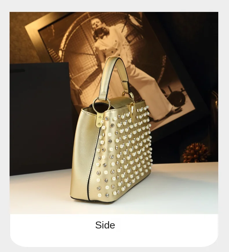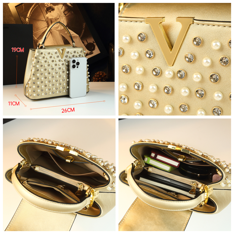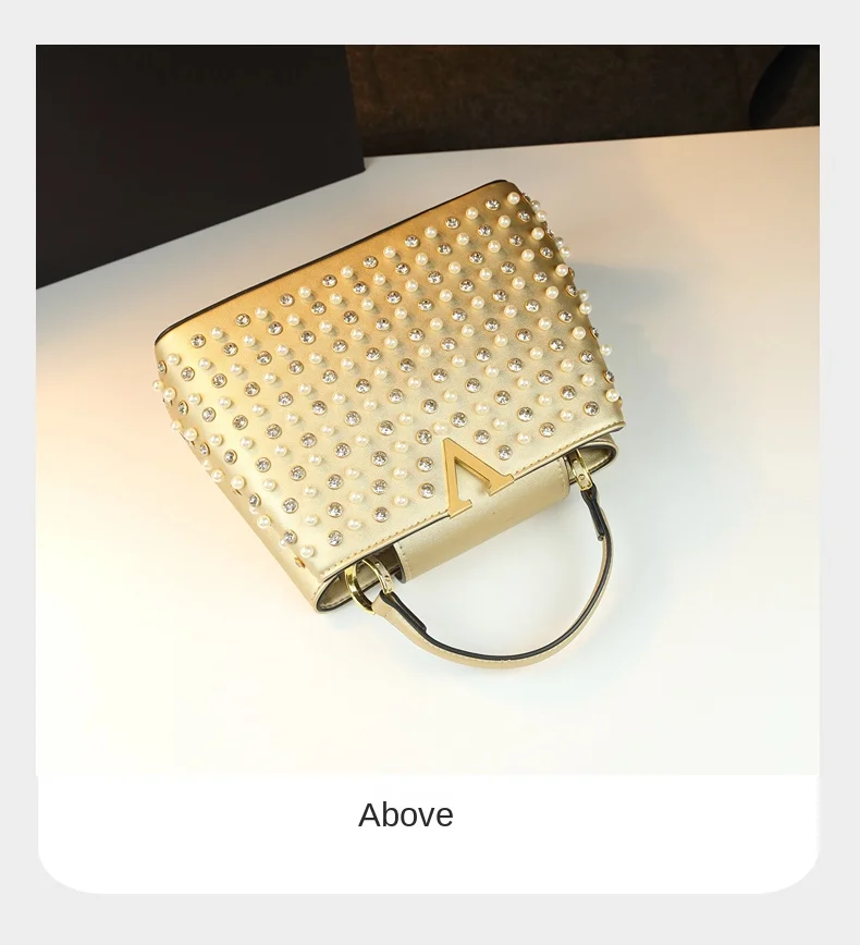 2026 New Fashion Women’s Bag Rhinestone Pearl Handbag Diamonds Shoulder Messenger Bag Luxury Small Square Bags