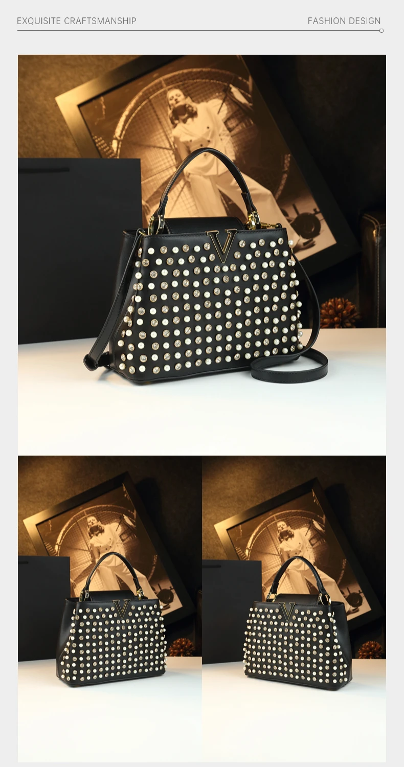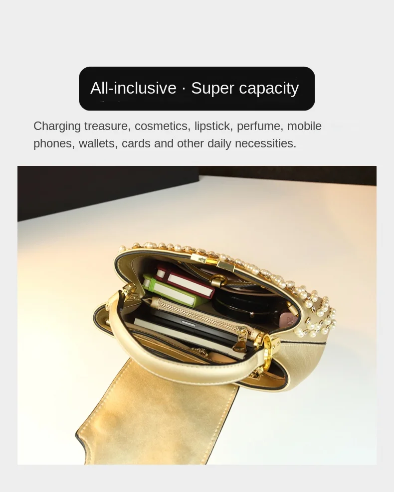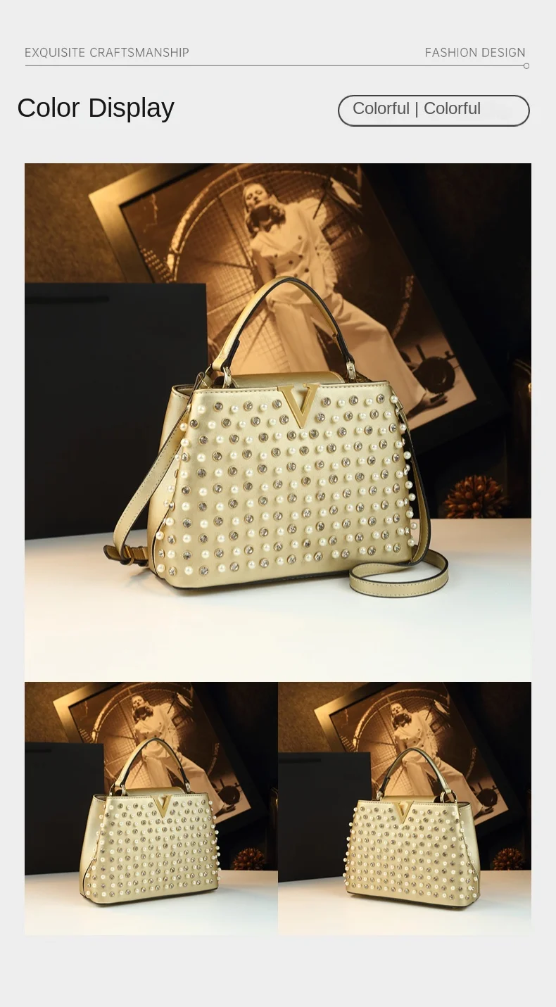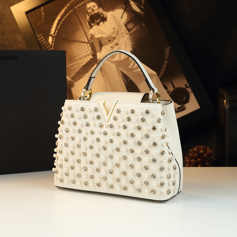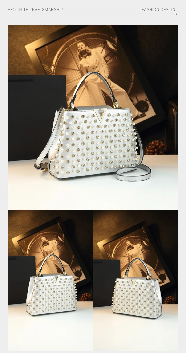 2026 New Fashion Women’s Bag Rhinestone Pearl Handbag Diamonds Shoulder Messenger Bag Luxury Small Square Bags