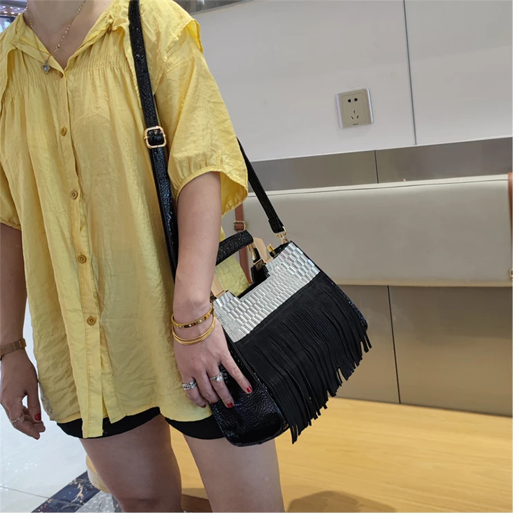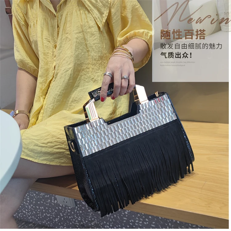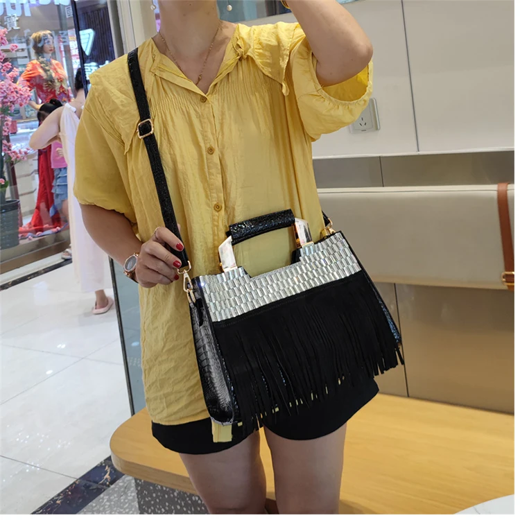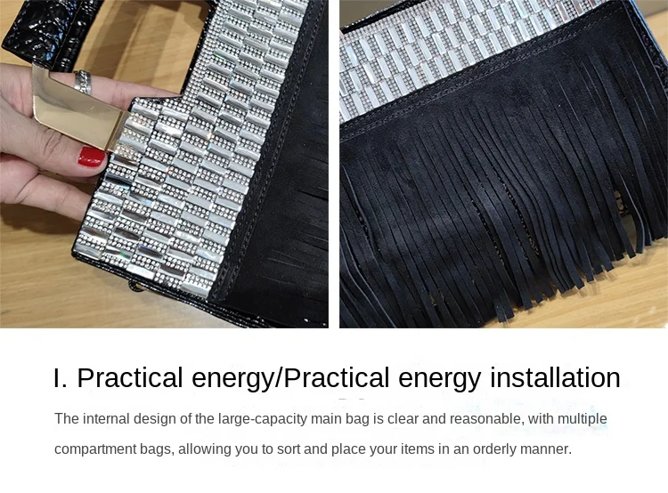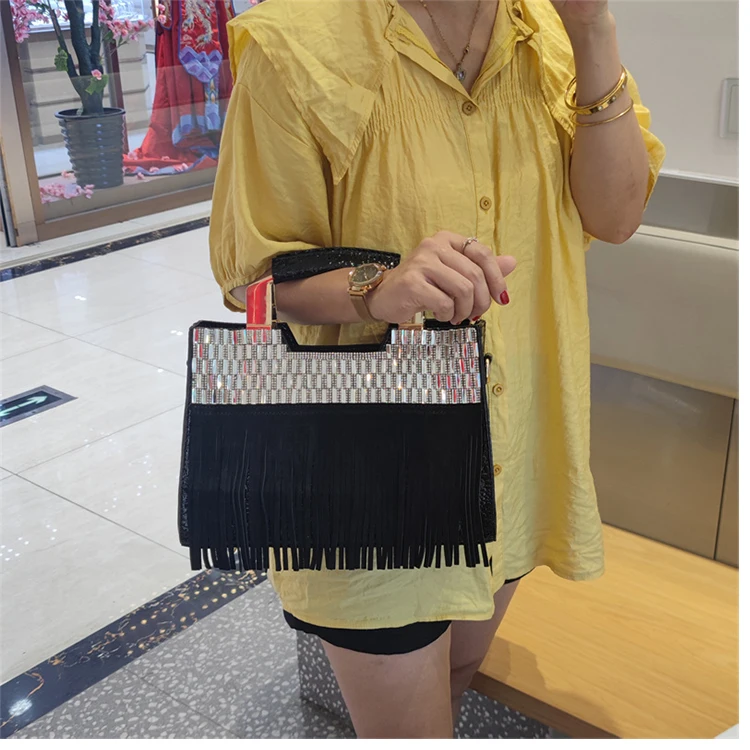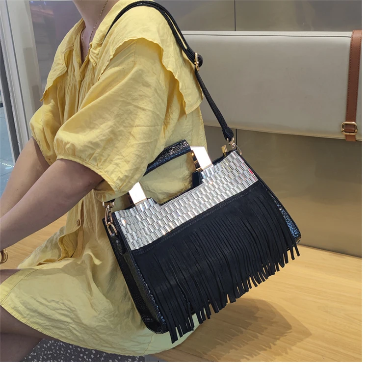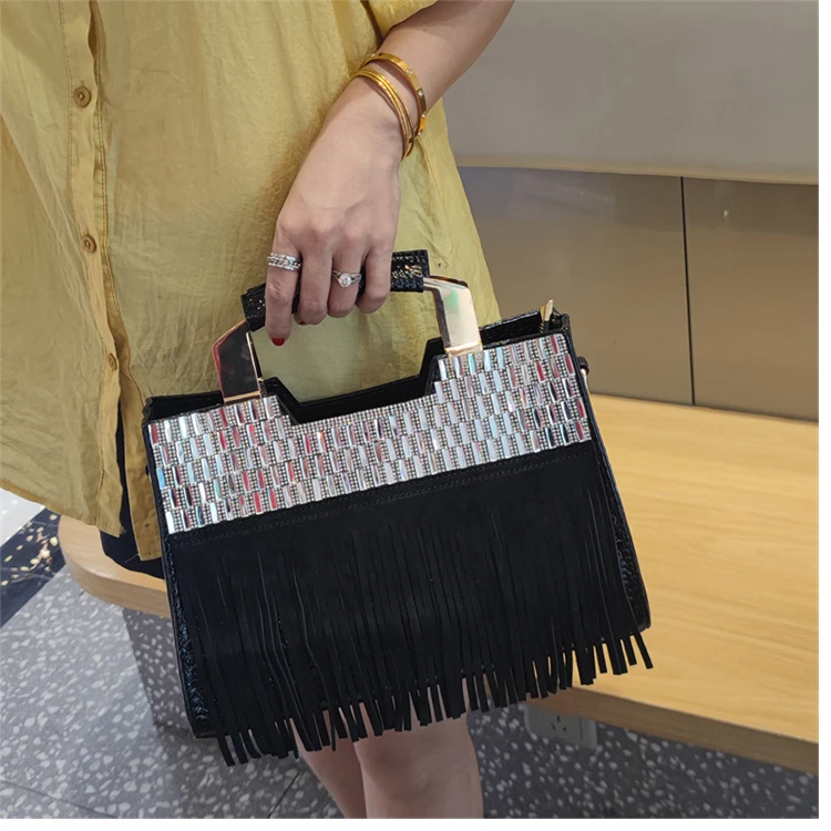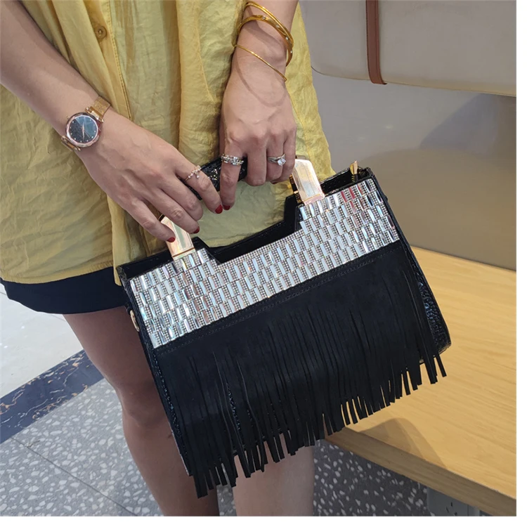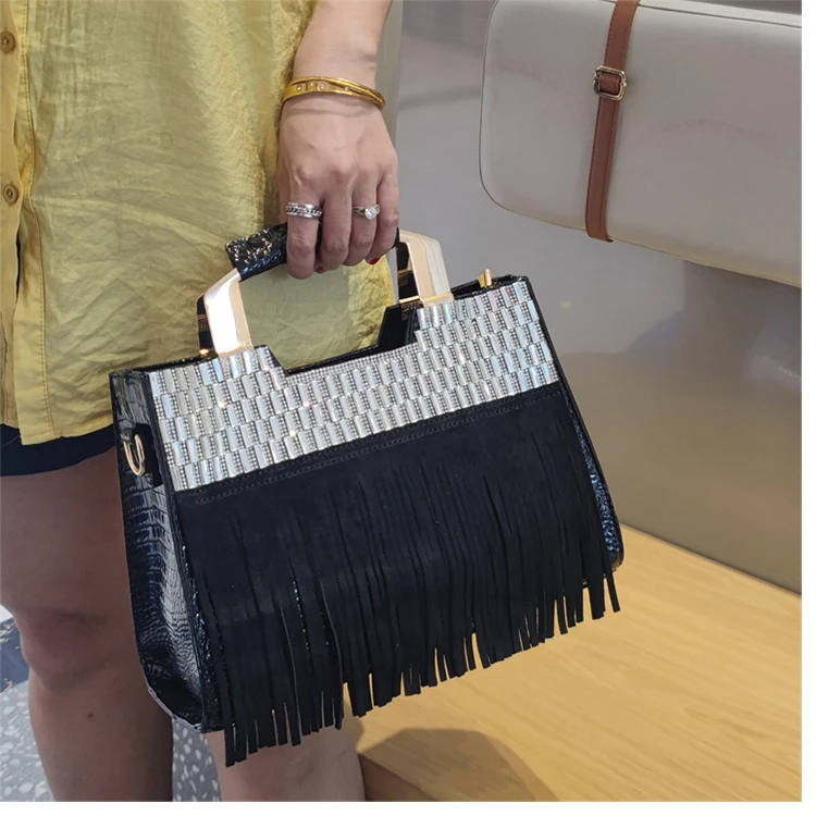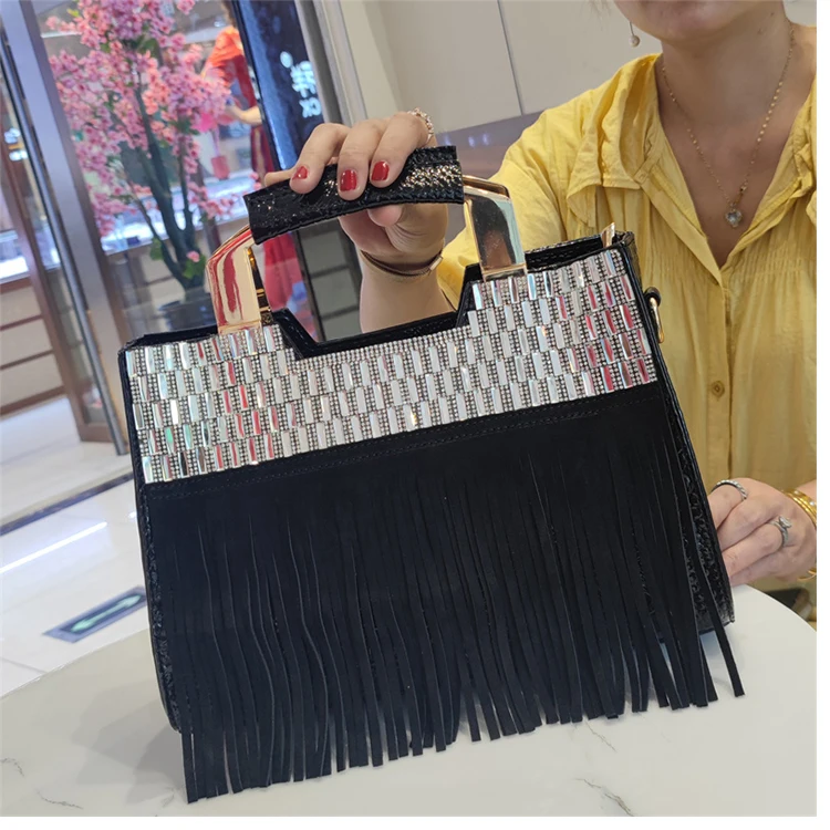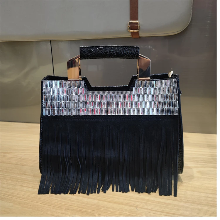 2026 new Genuine Leather Women Bag Luxury Fashion Diamonds Lady Handbags Cowhide Tassel Rhinestone Shoulder Crossbody Bags