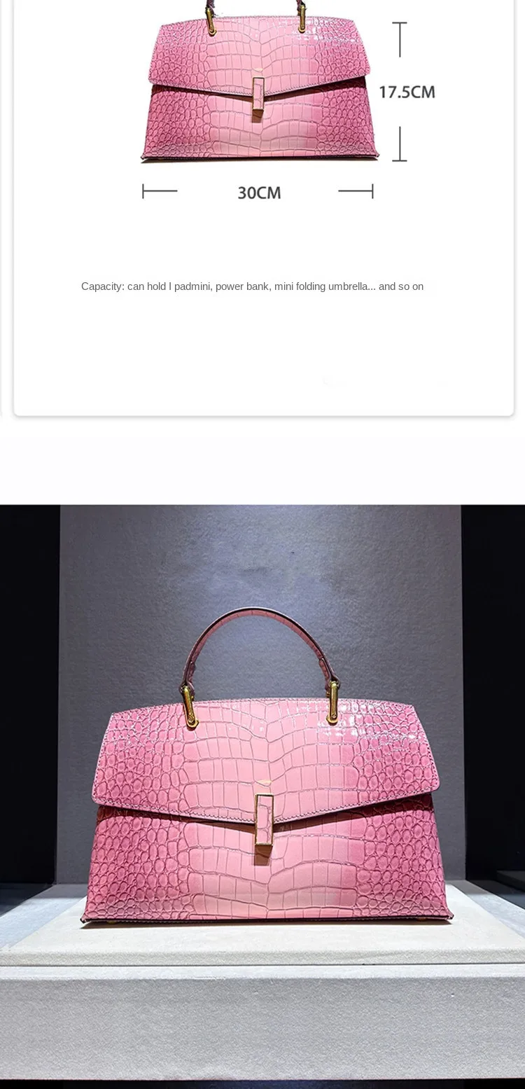 2026 New Genuine Leather Women’s Handbags Luxury Fashion Lady Top Handle Shell Bag Crocodile Pattern Shoulder Crossbody Bags