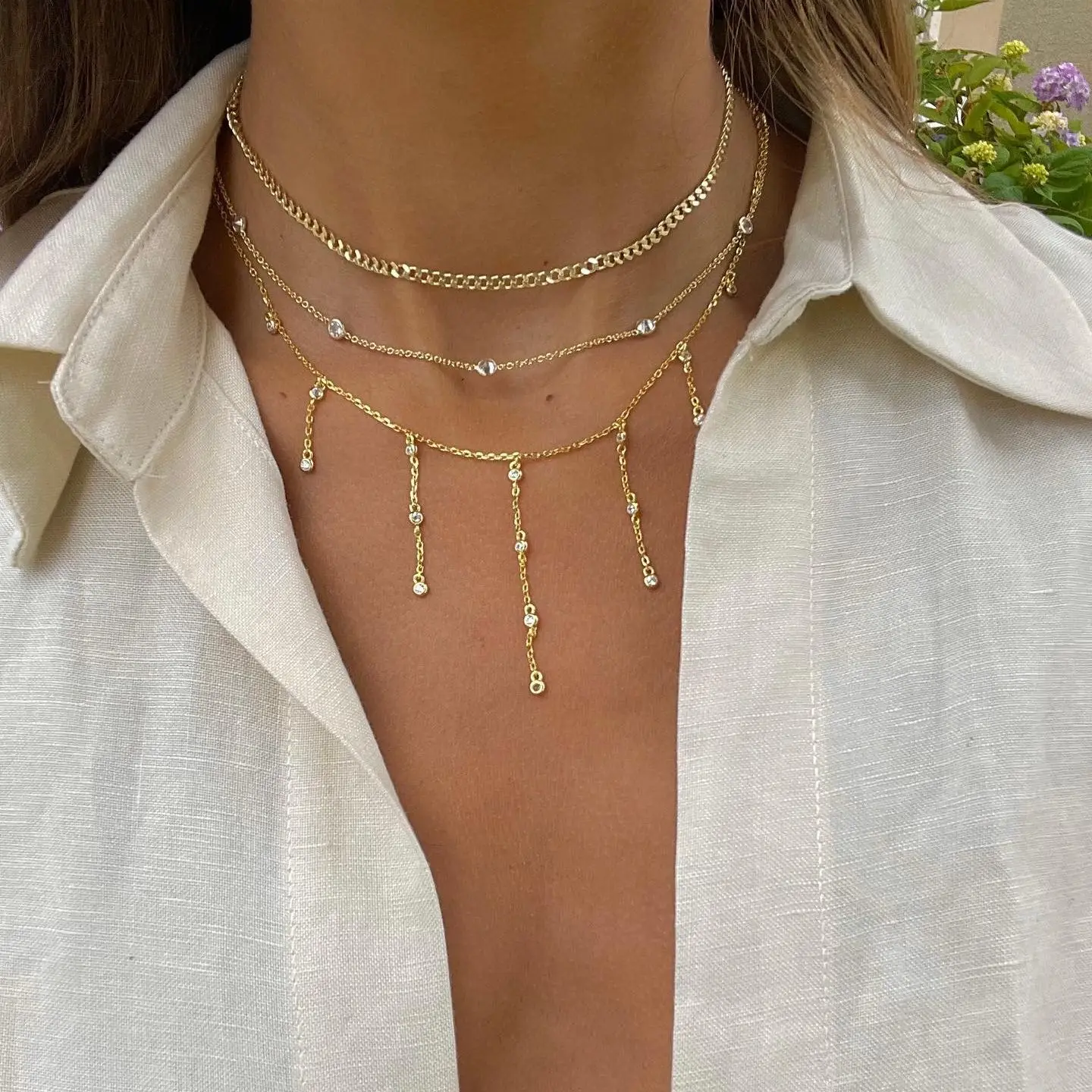 2026 New Link Chain Delicate Tassel Women Choker Necklace Paved Bling CZ Fashion High Quality Jewelry