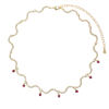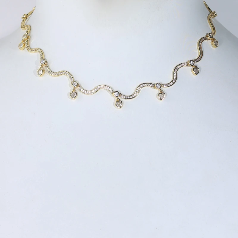 Gold Color Micro Paved CZ Wave Link Chain Bezel White Red Heart Shaped Charm Tassel Choker Women Necklace
