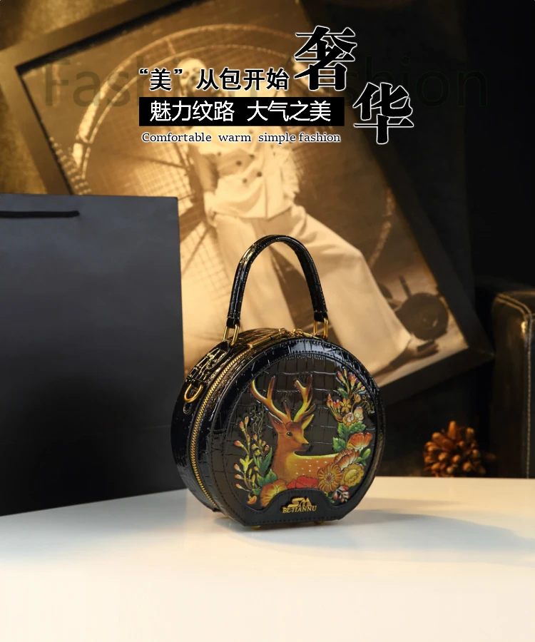 2026 new Original Crocodile Grain Women Handbags Small Round Bag Genuine Leather Fashion Crossbody Bag Shoulder Messenger Bag