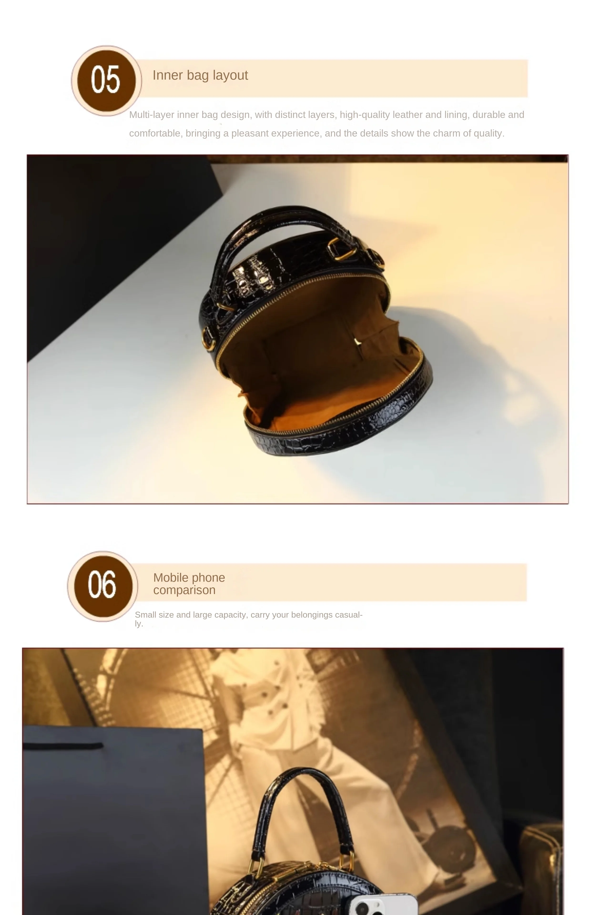 Structure: main bag, zipper bag, mobile phone bag