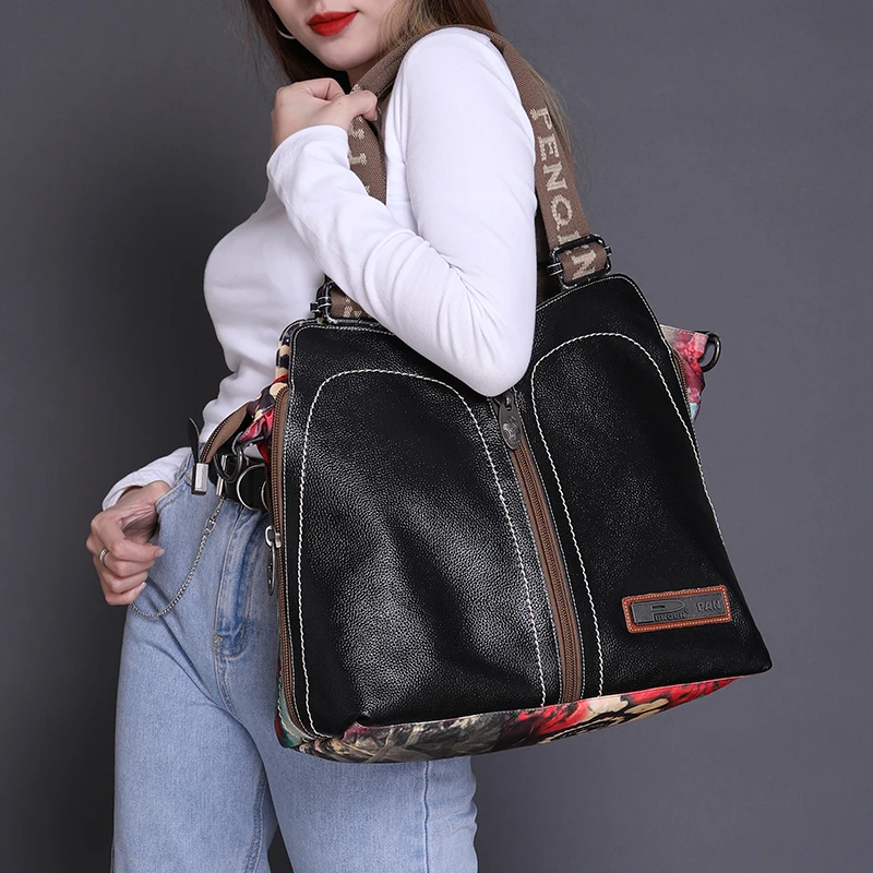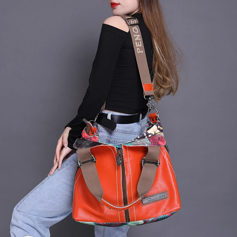 2026 New Original Leather Women Handbags Fashion Large Capacity Printing Flowers Shoulder Bag Portable Slung Leather Bags