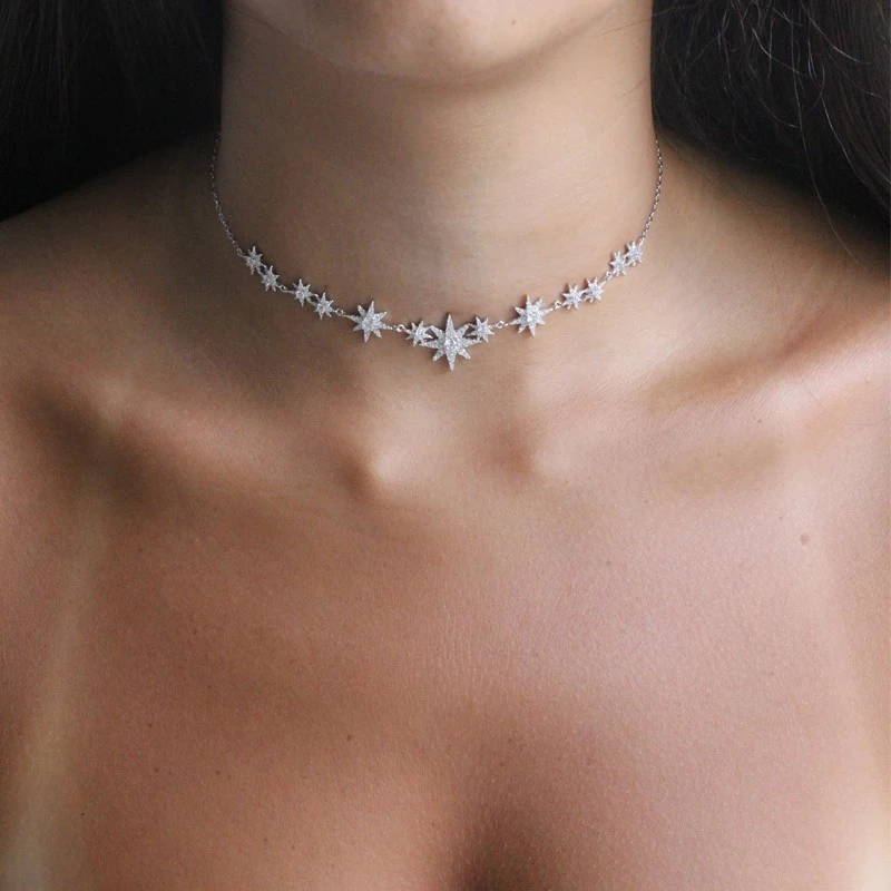 2026 New star northstar charm link chain necklace sparking bling 5A cz cubic zirconia for women fashion jewelry