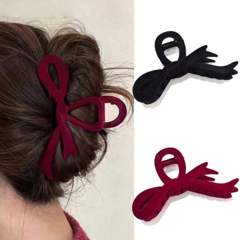 2026 New Year’s Red Velvet Bow Hair Clips Women Hair Claw Clip Elegant Hairpin Hair Claws Accessories For Girls Headwear Gift