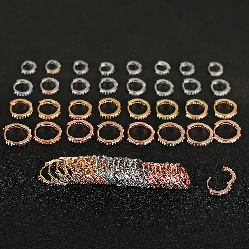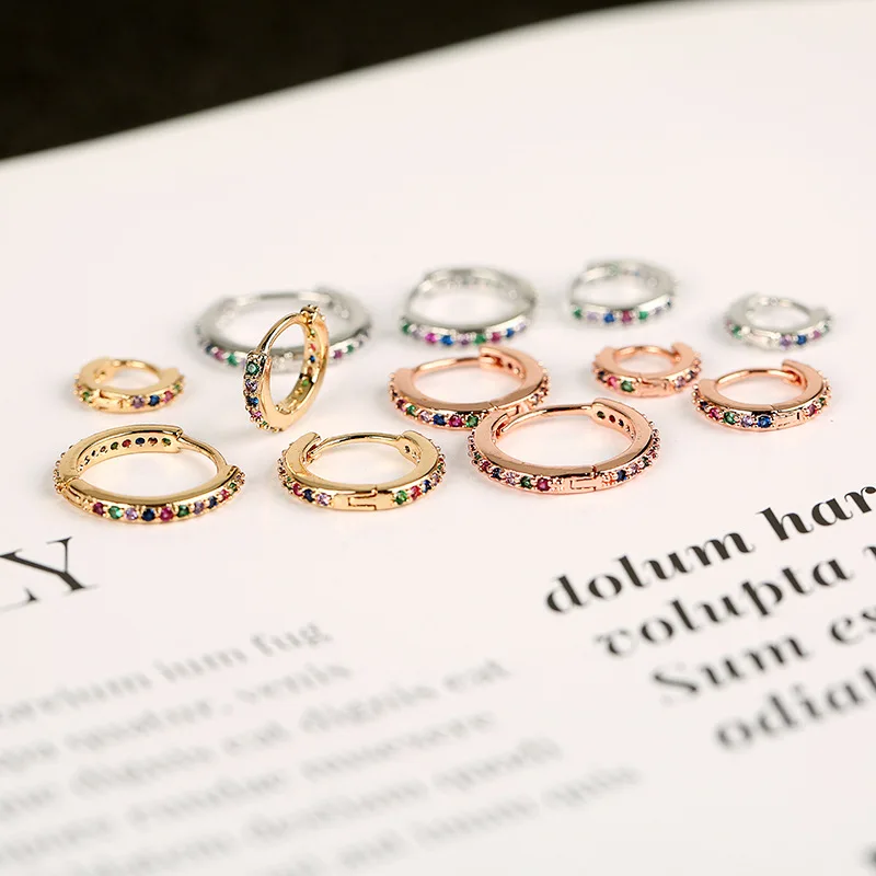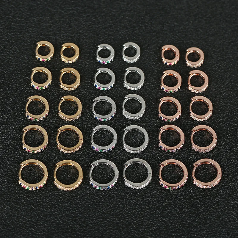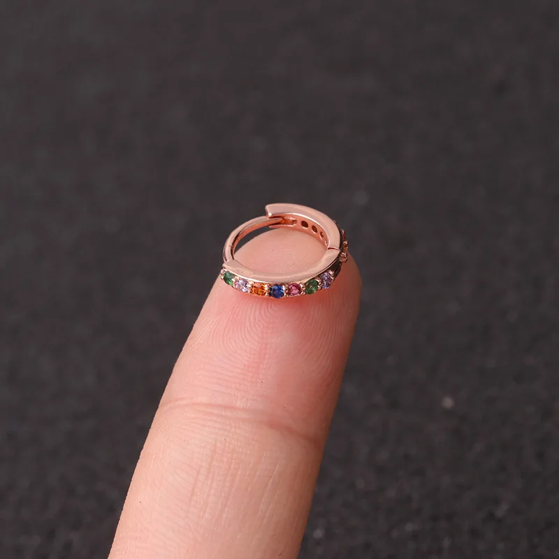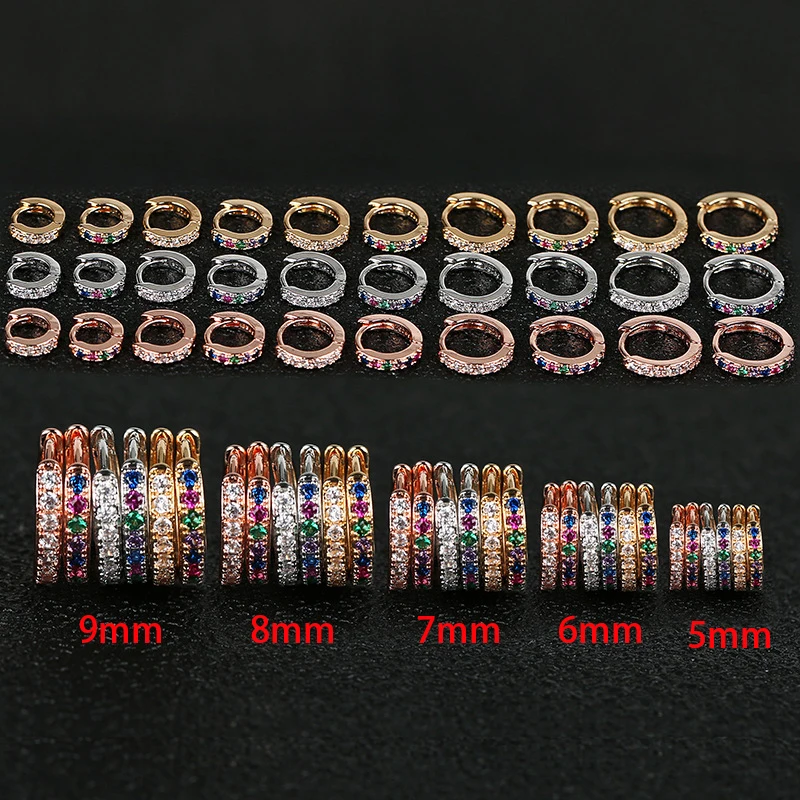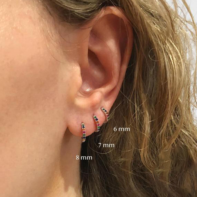 2pc 5/6/7/8/9mm Multicolor Cz Hoop Cartilage Earring Rainbow Simple Helix Tragus Daith Conch Rook Snug Ear Piercing Jewelry