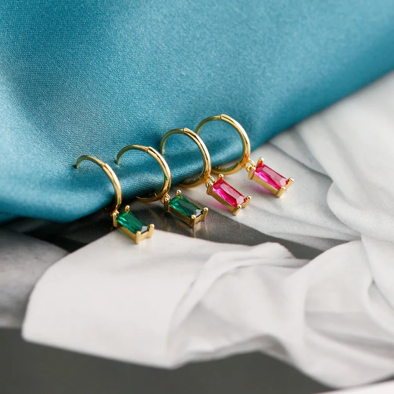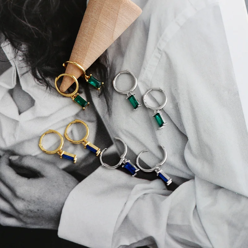 2PC Fashion Stainless Steel Zircon Small Hoop Earrings Korean Punk Pendant Ear Buckle Earrings For Women Wedding Jewelry Gift