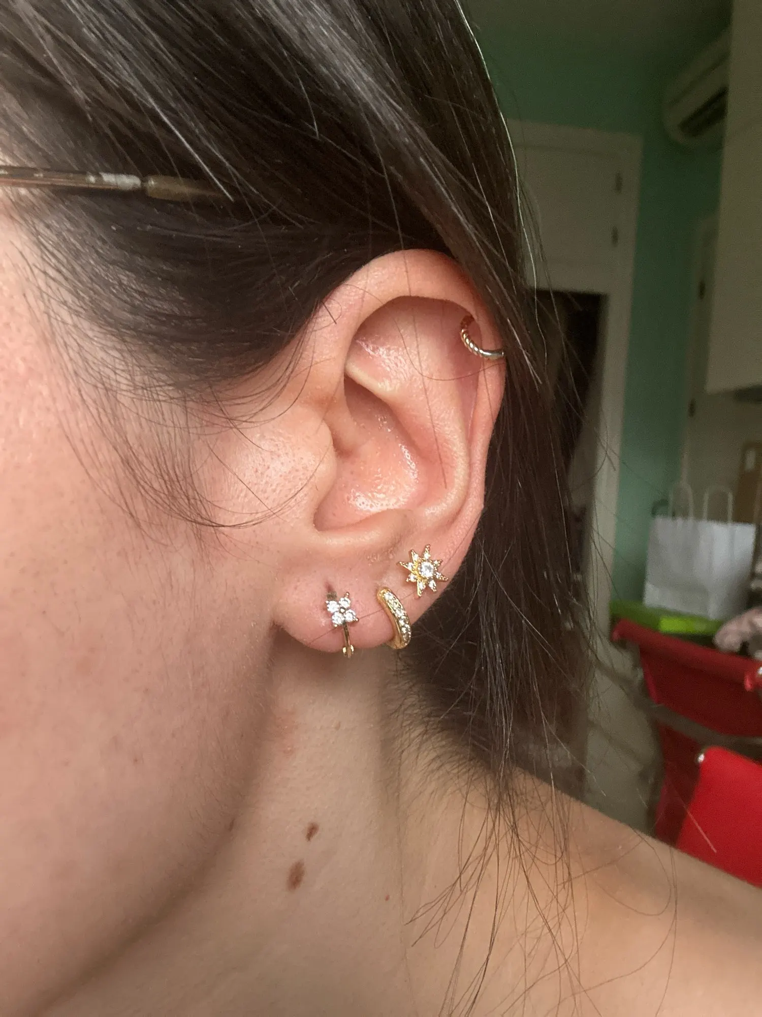 Earrings same as the photo. Really beautiful and elegant with a very nice golden color. It is better for the second ear hole. Fast shipping, it took a week to arrive.