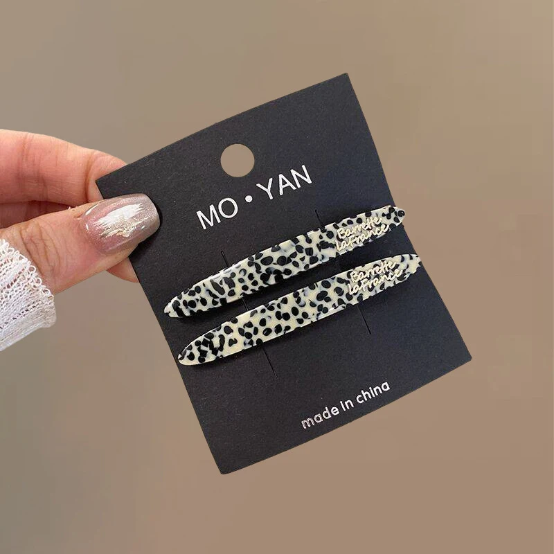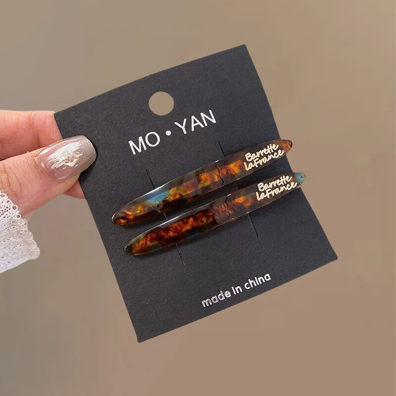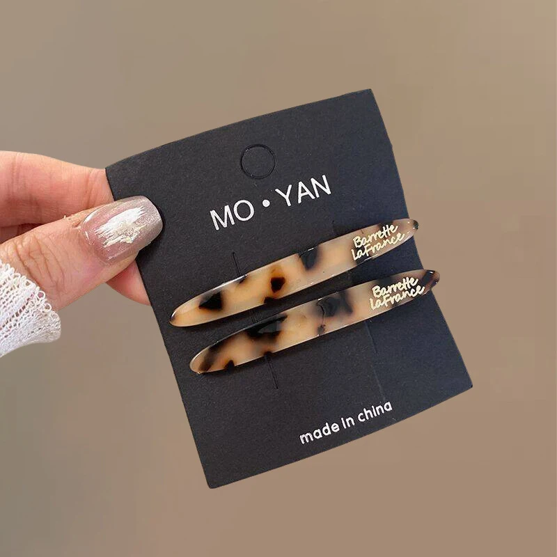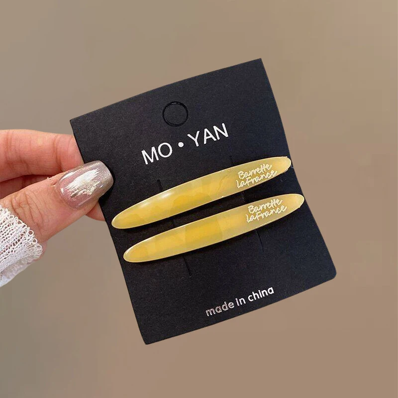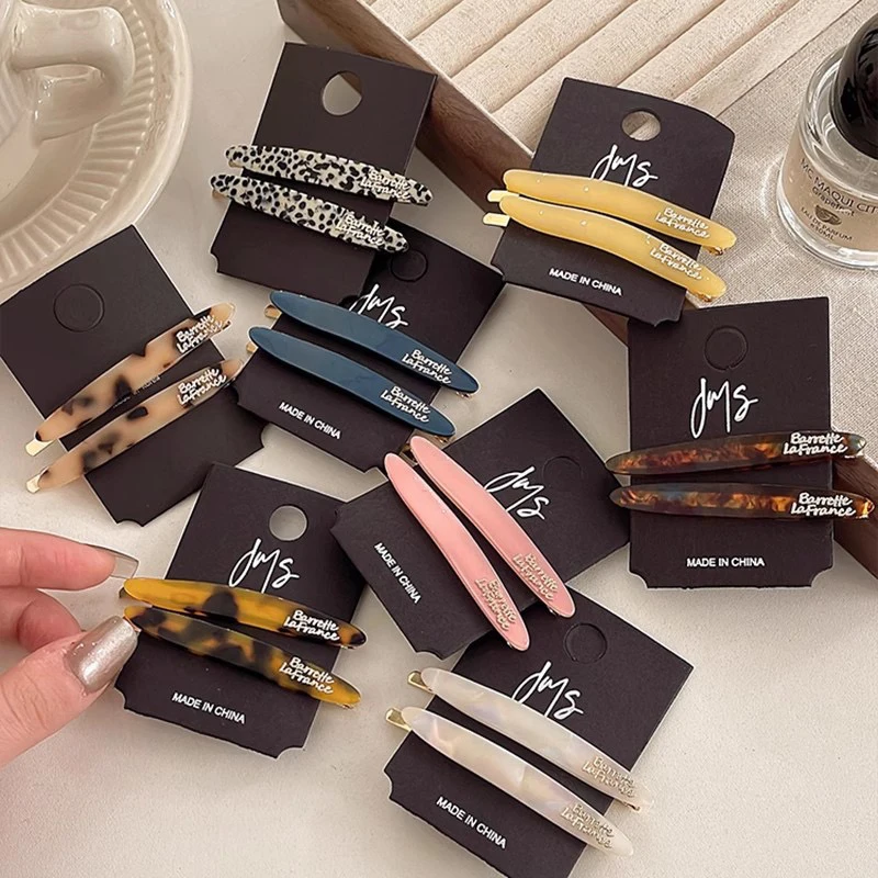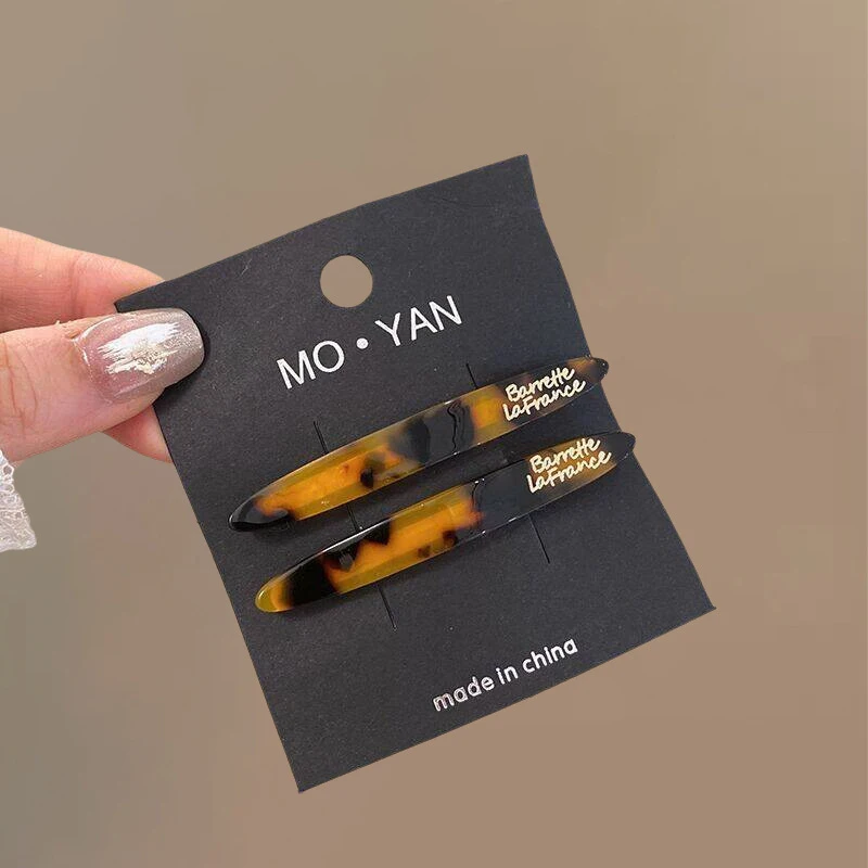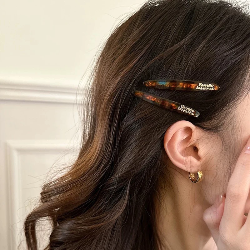 2pcs Korean style acetate golden label small willow leaf hair clip, French simple and elegant temperament side hair clip, bangs