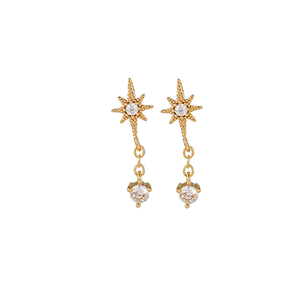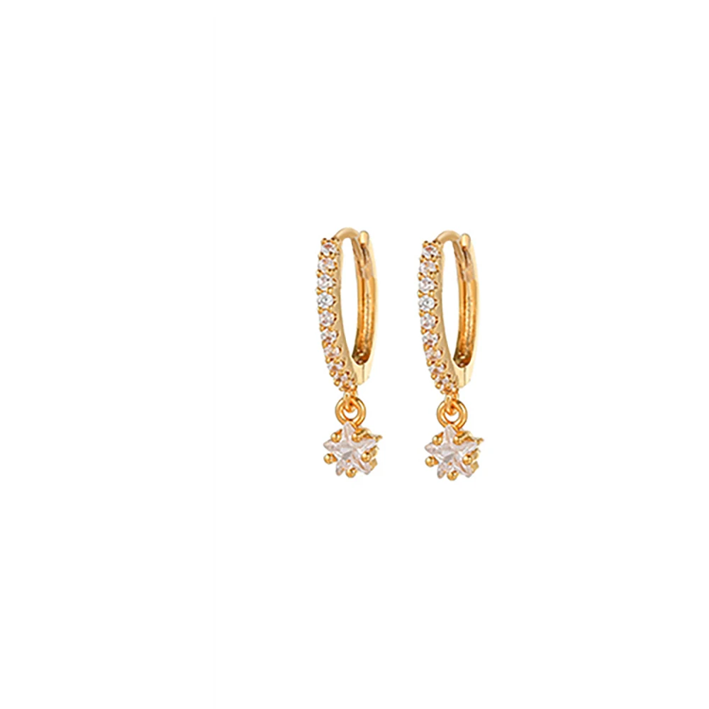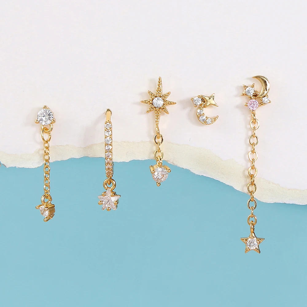 2PCS New Stainless Steel Cubic Zirconia Chain Hoop Earrings For Women Star Moon Unique Punk Earring Cartilage Piercing Jewelry