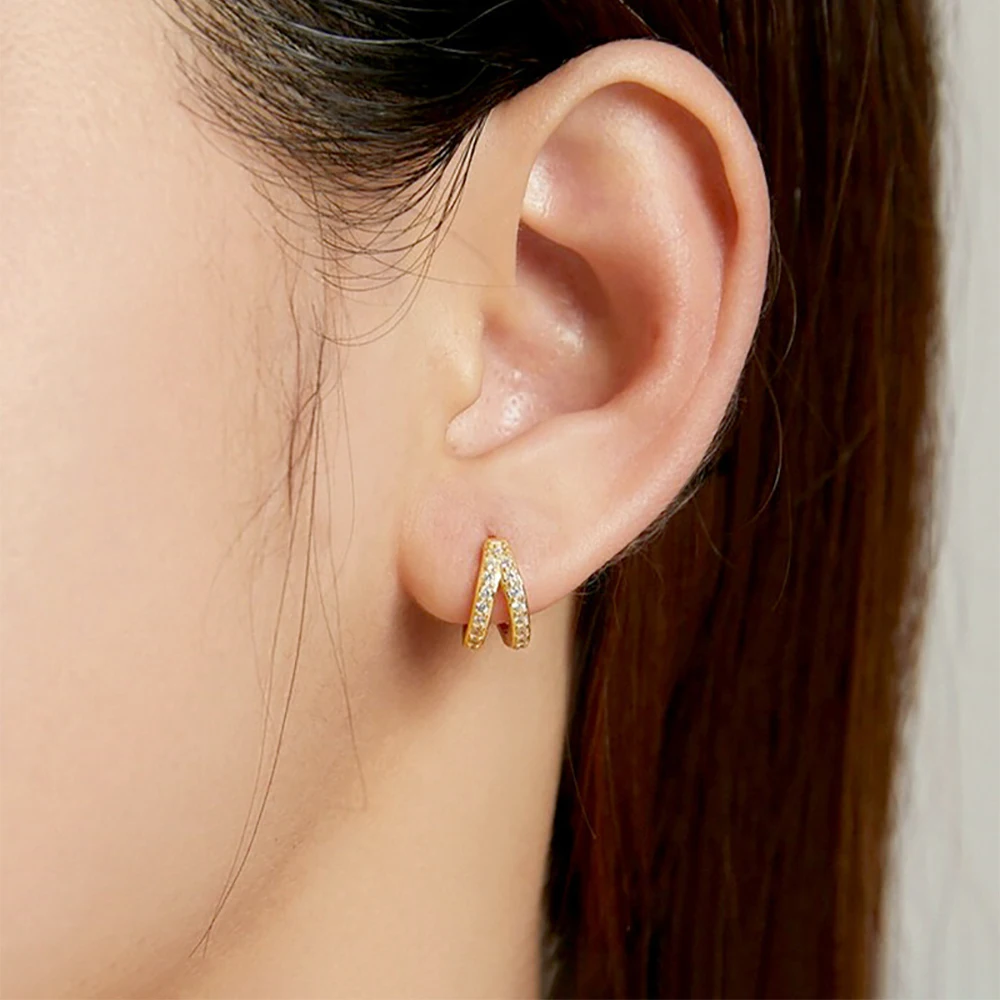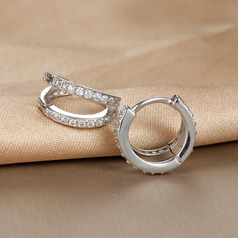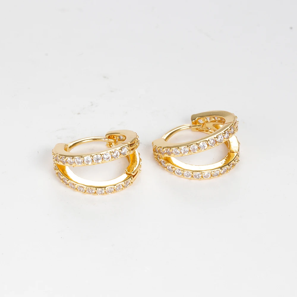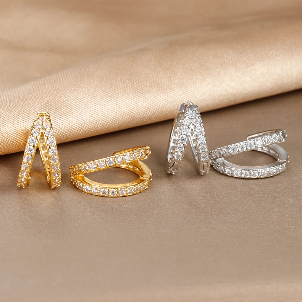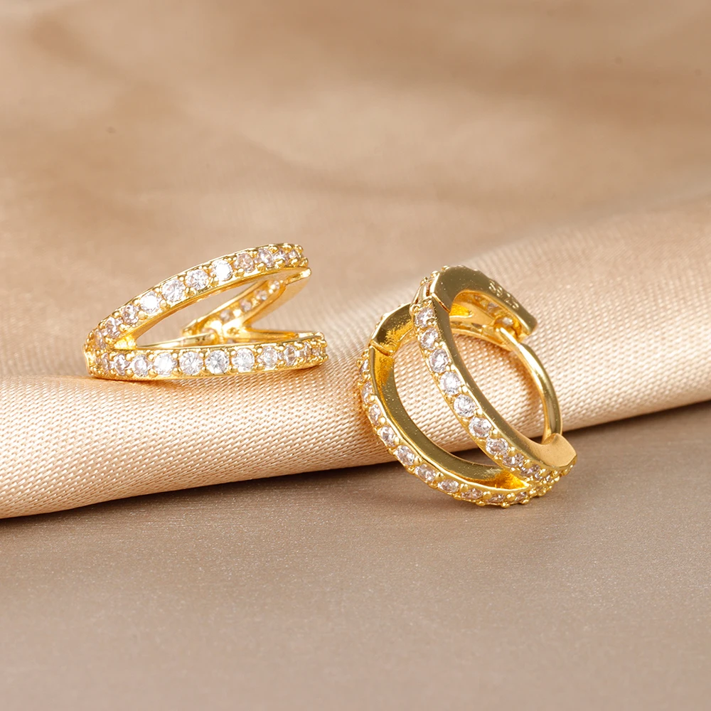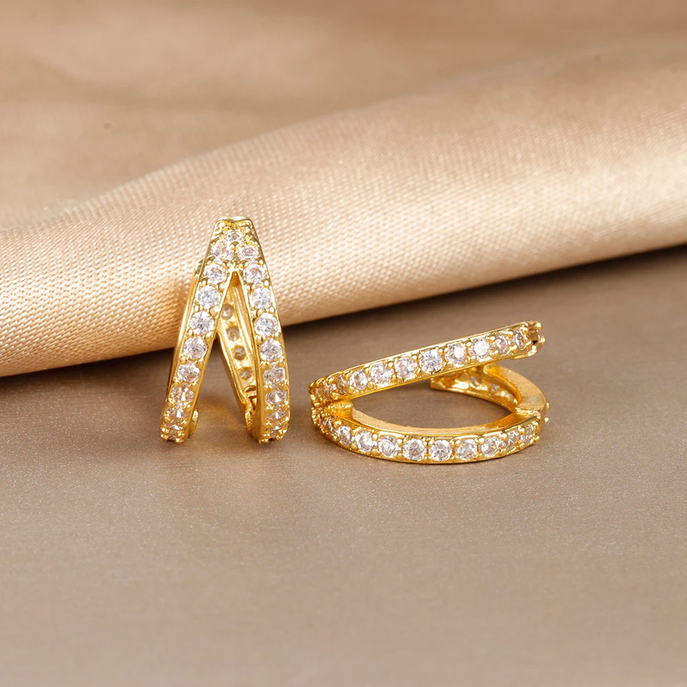 2PCS/pair Fashion Gold Color Stainless Steel Zircon Star Hoop Earring for Women Round Huggie Earrings Wedding Party Jewelry Gift