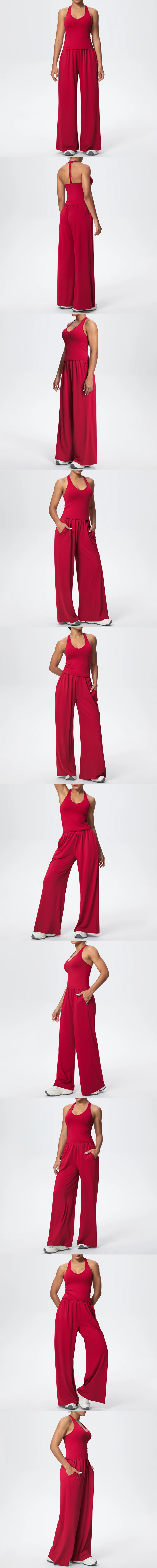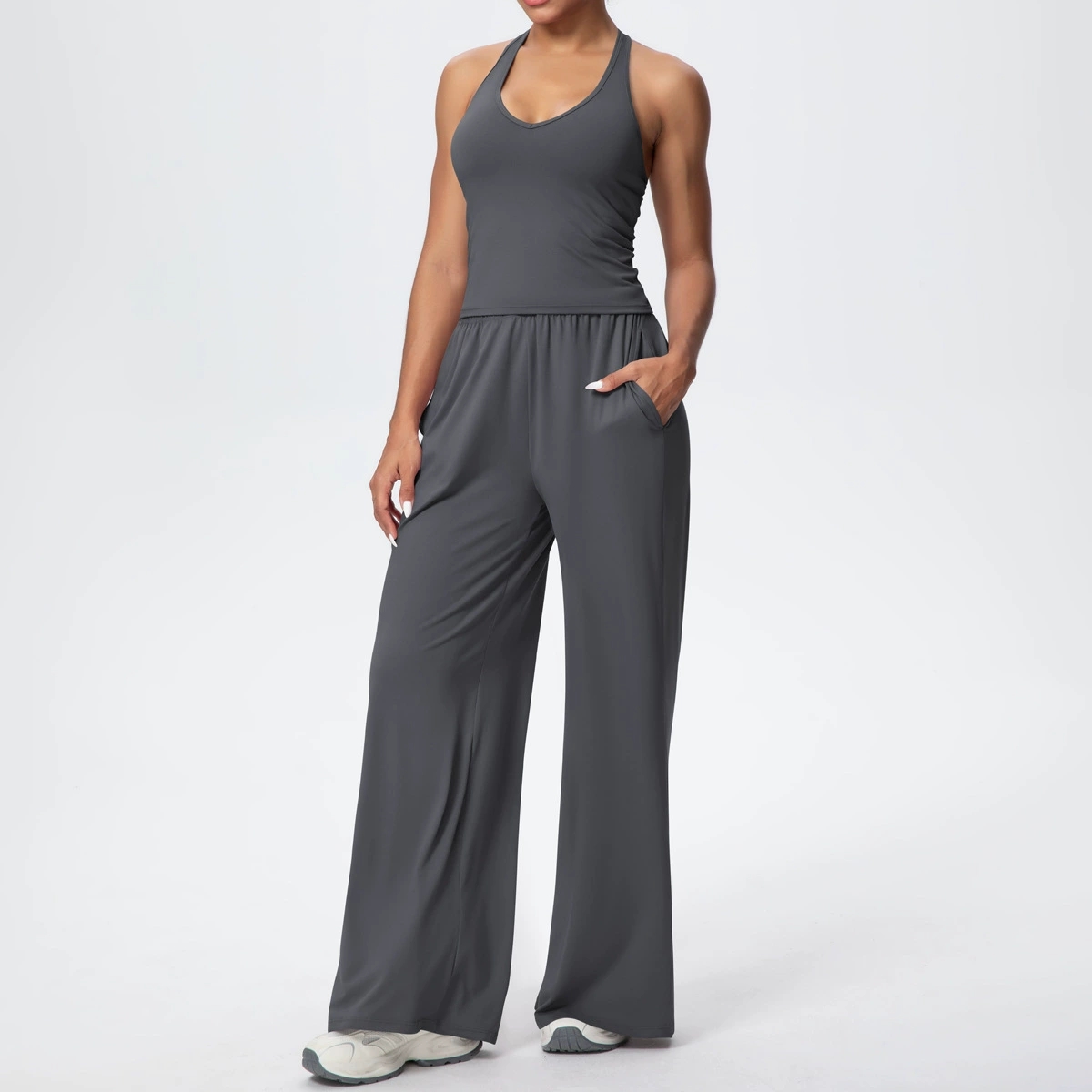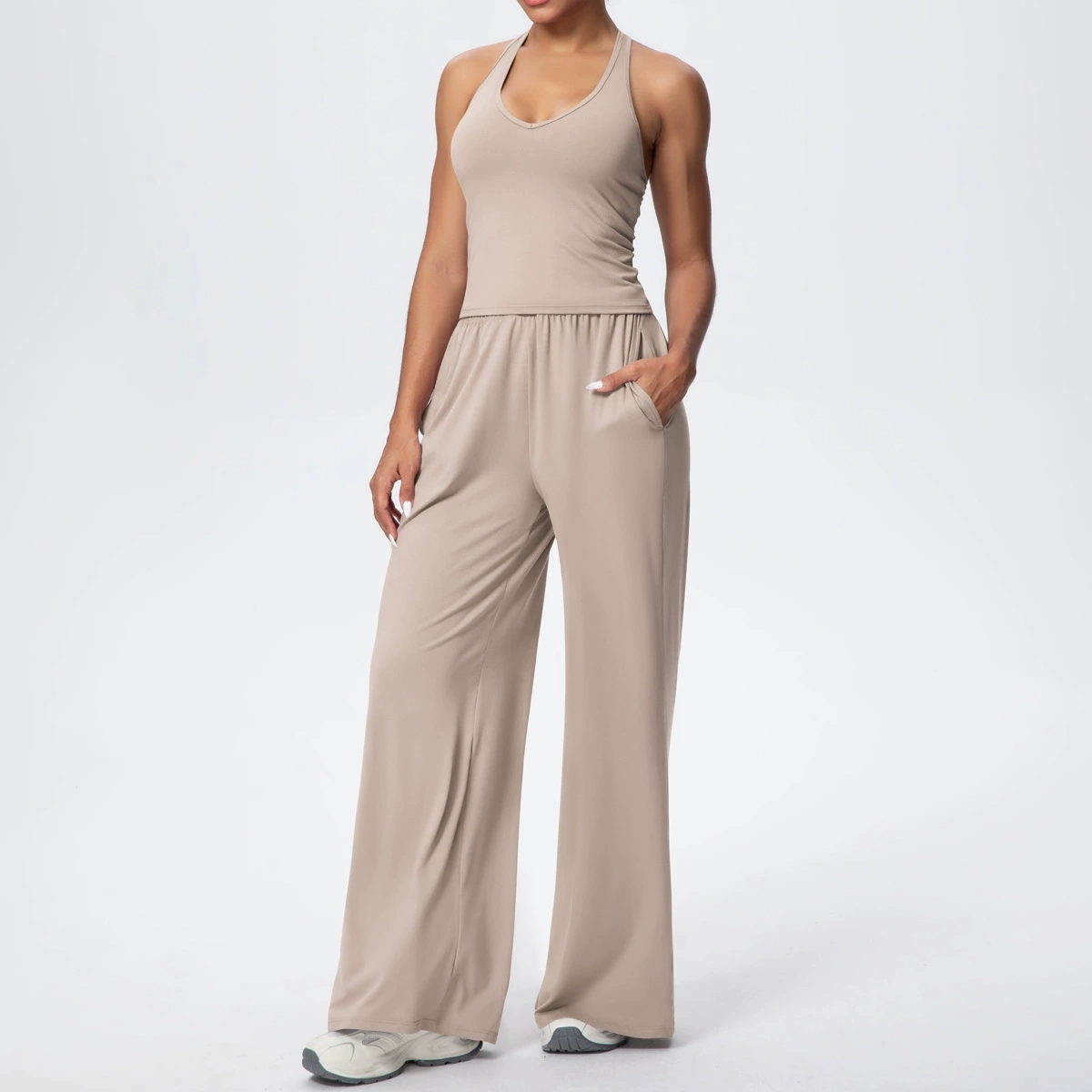 2PCS Sports Vest Women’s Set Professional Fitness Tank Top Shockproof Running Loose Pants Yoga Suit Beautiful Back Vest Clothing