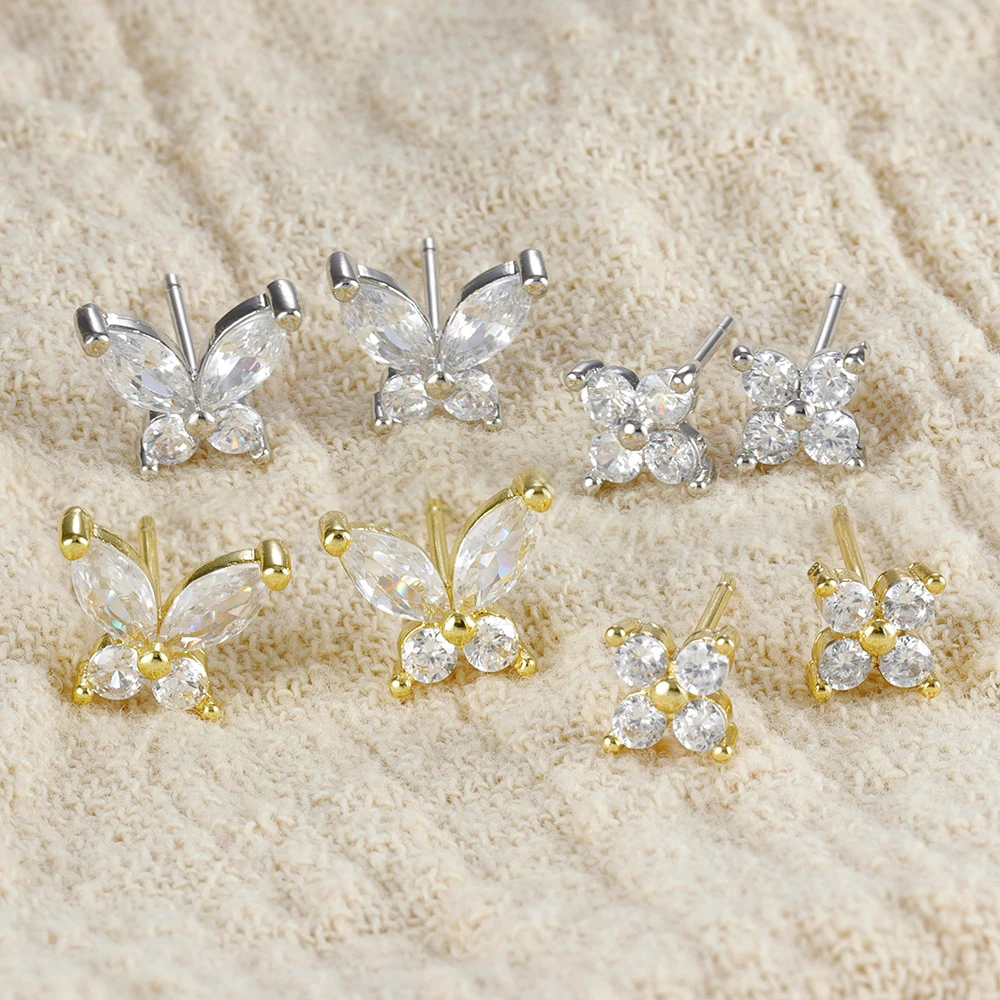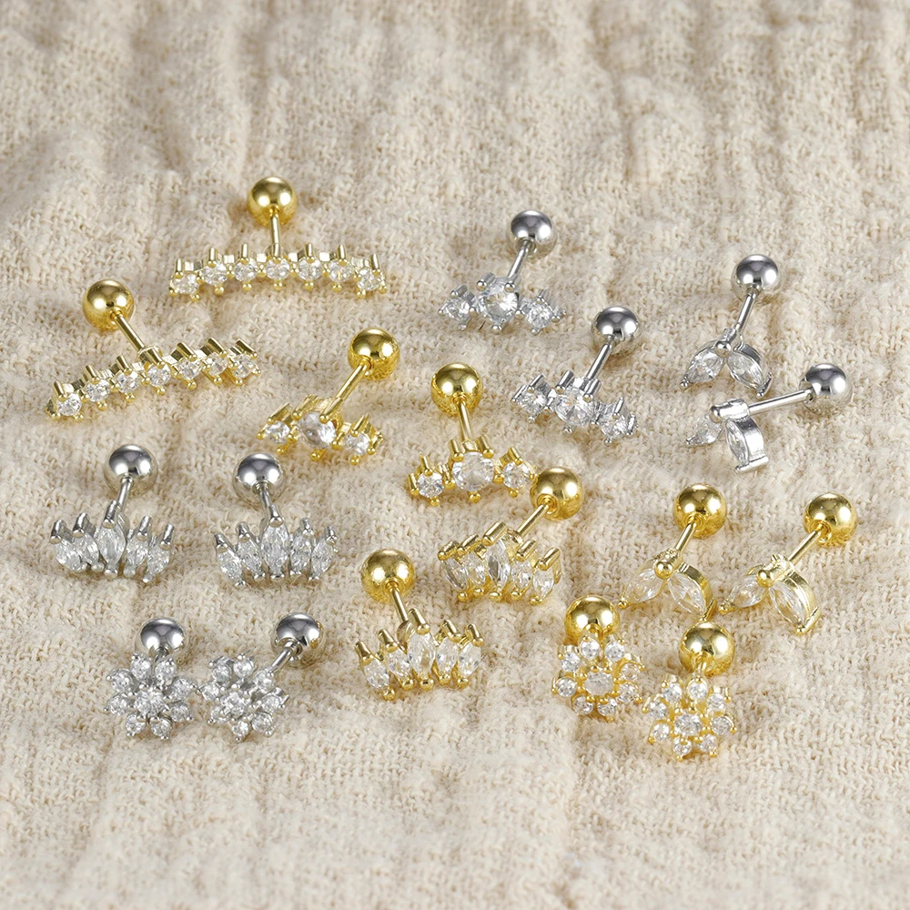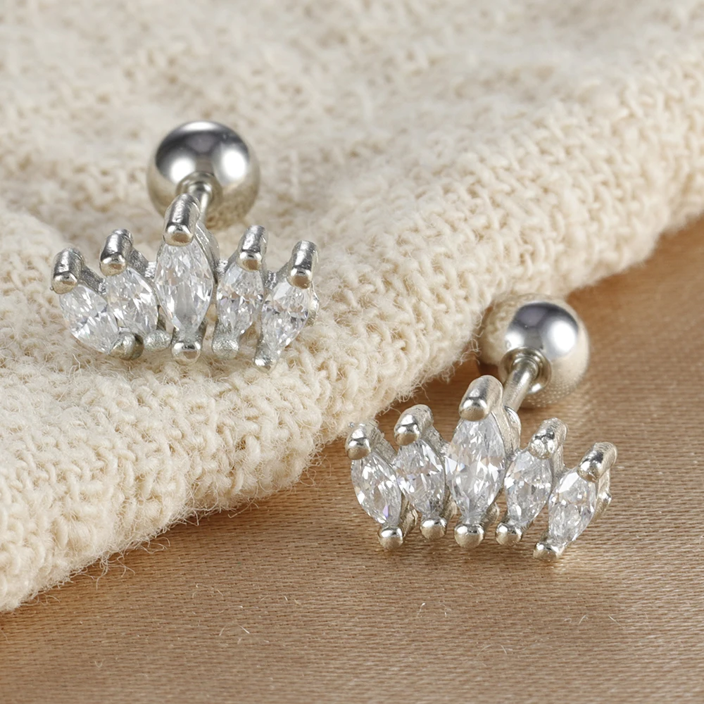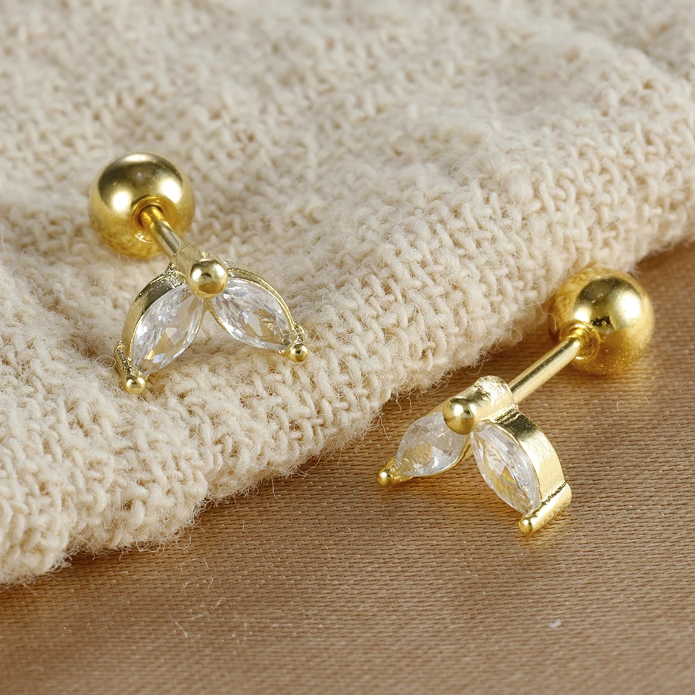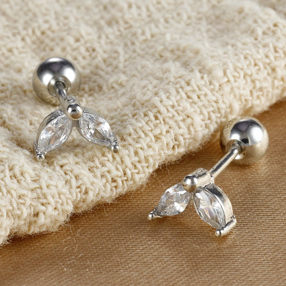 2PCS Stainless Steel Flat Head Tragus Helix Cartilage Piercing Crown Horse Eye Butterfly Stud Earrings For Women Claasic Jewelry