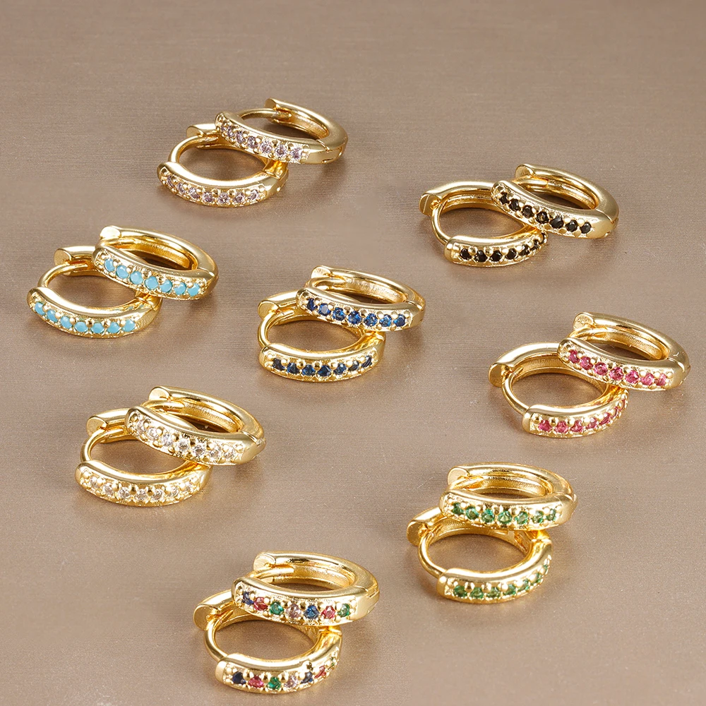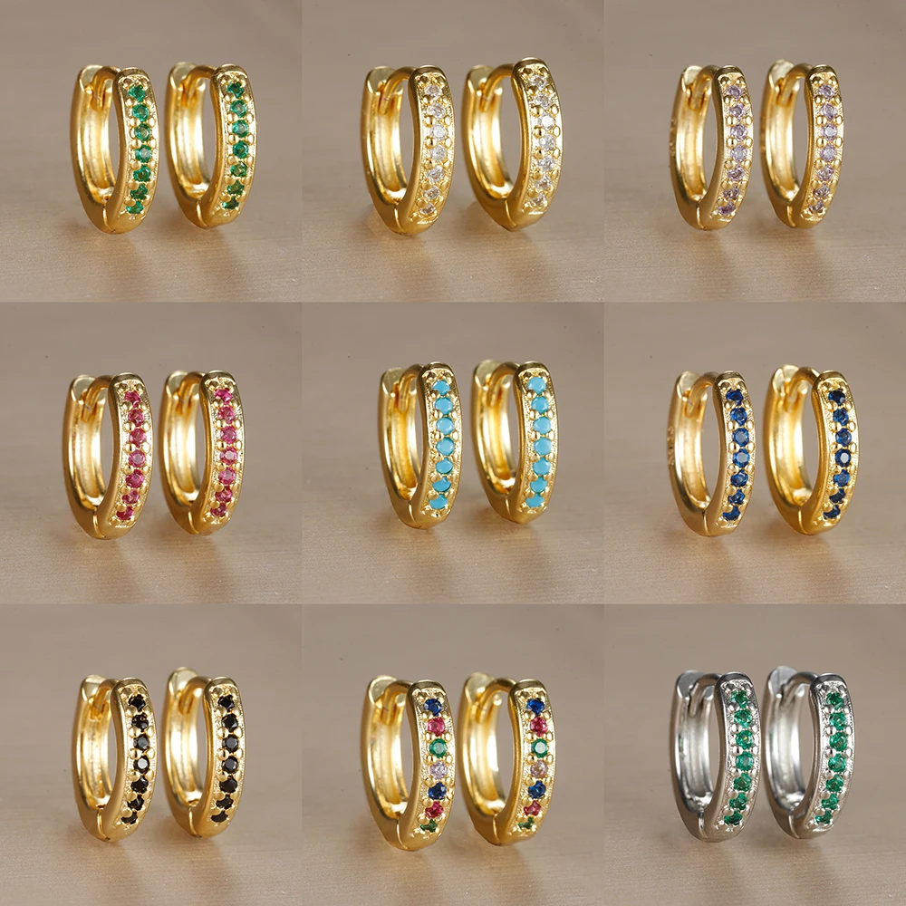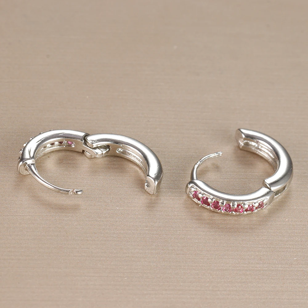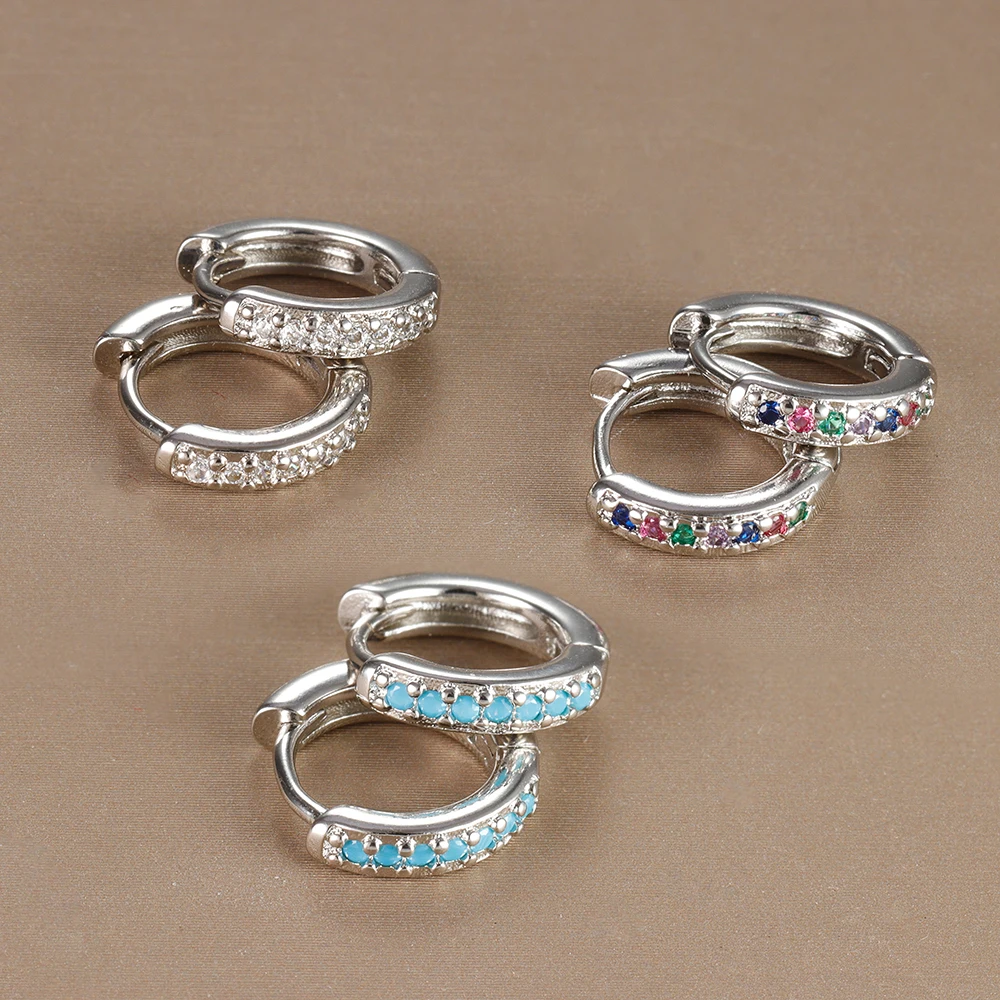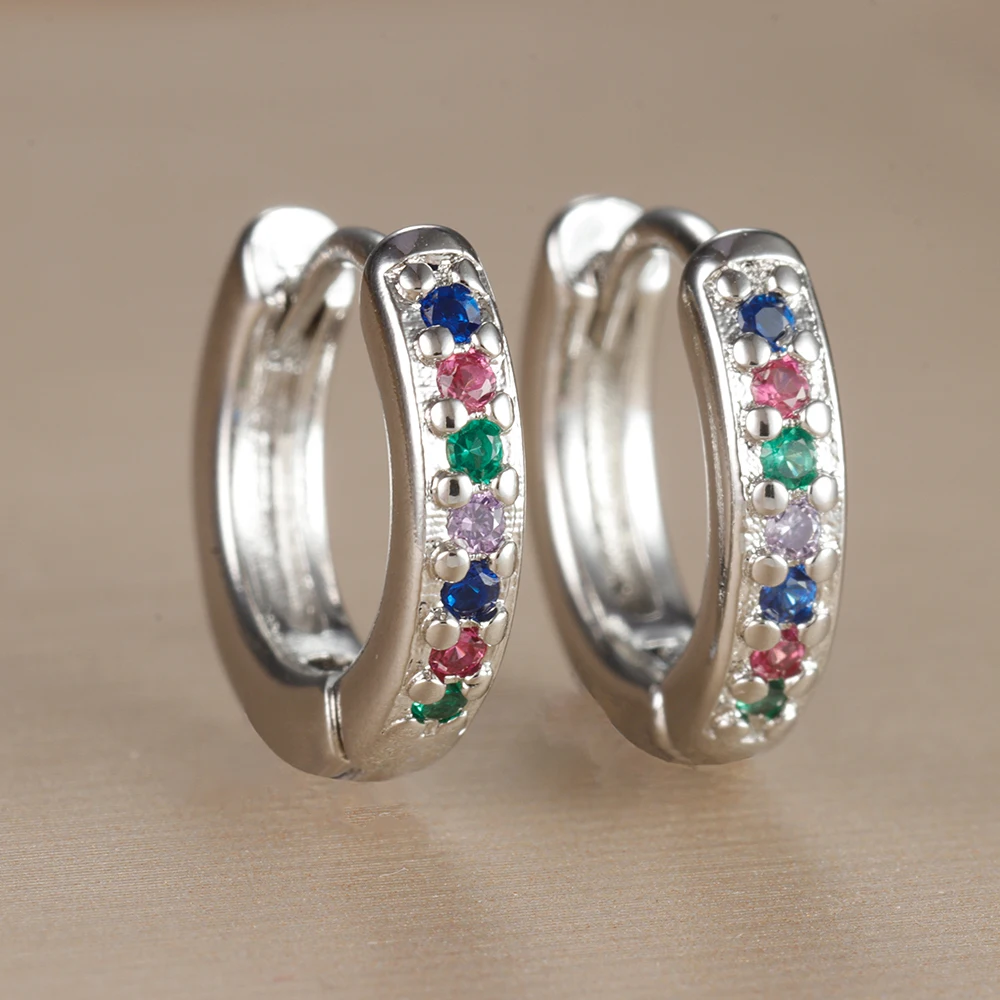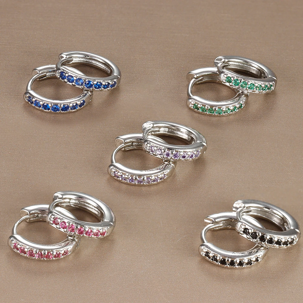 2pcs Stainless Steel Minimal Hoop Earrings for Women 8mm Huggie Hoops Multicolored Rainbow CZ Earring Cartilage Piercing Jewelry