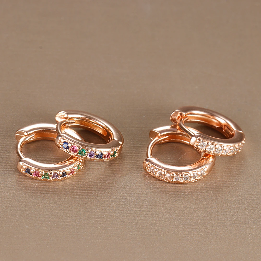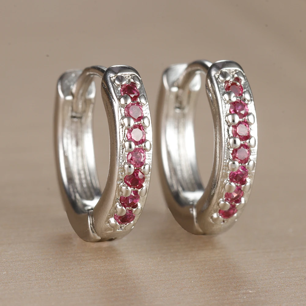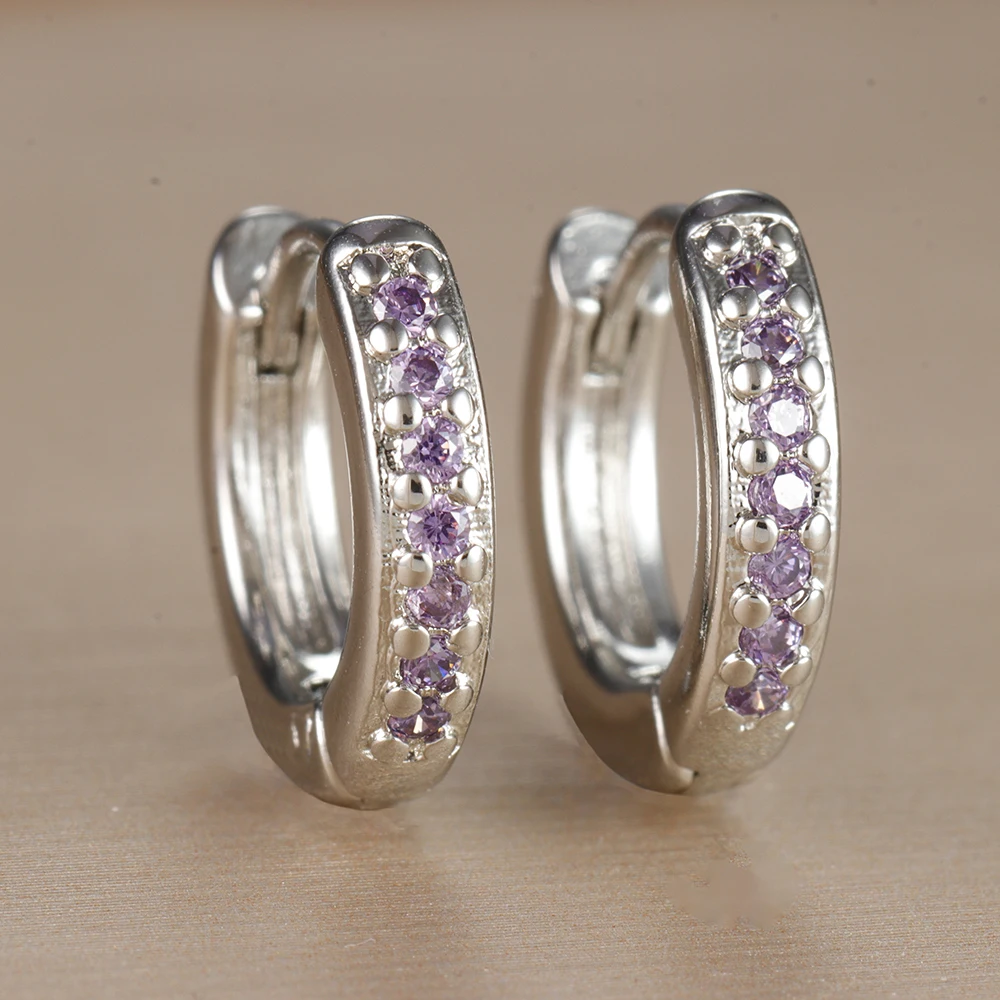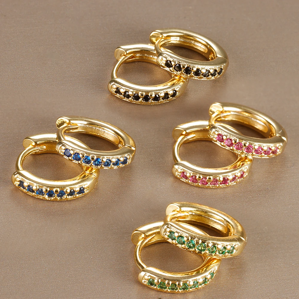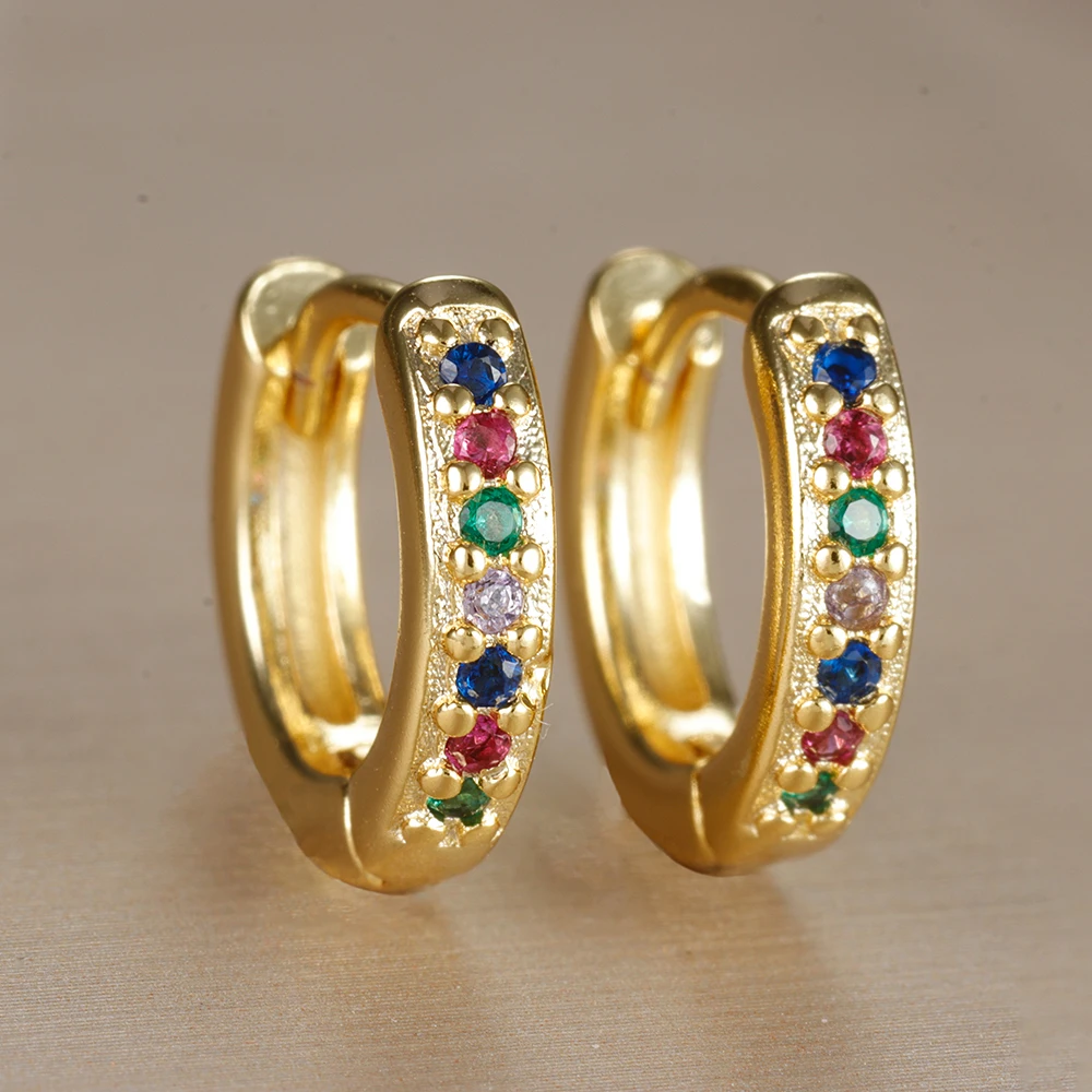2pcs Stainless Steel Minimal Hoop Earrings for Women 8mm Huggie Hoops Multicolored Rainbow CZ Earring Cartilage Piercing Jewelry