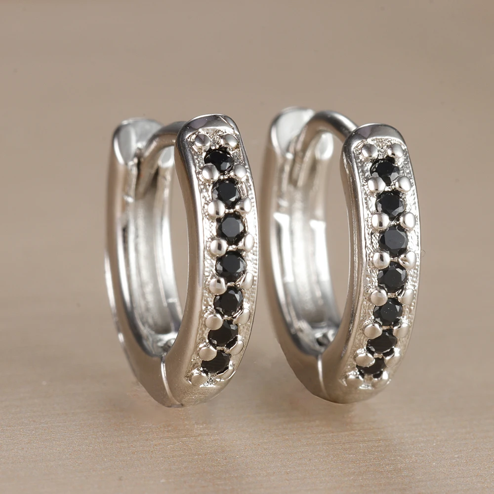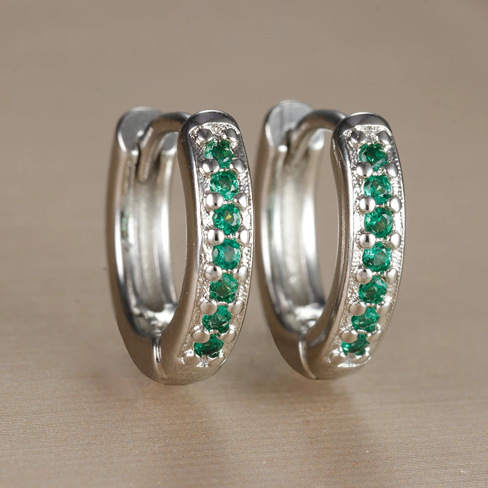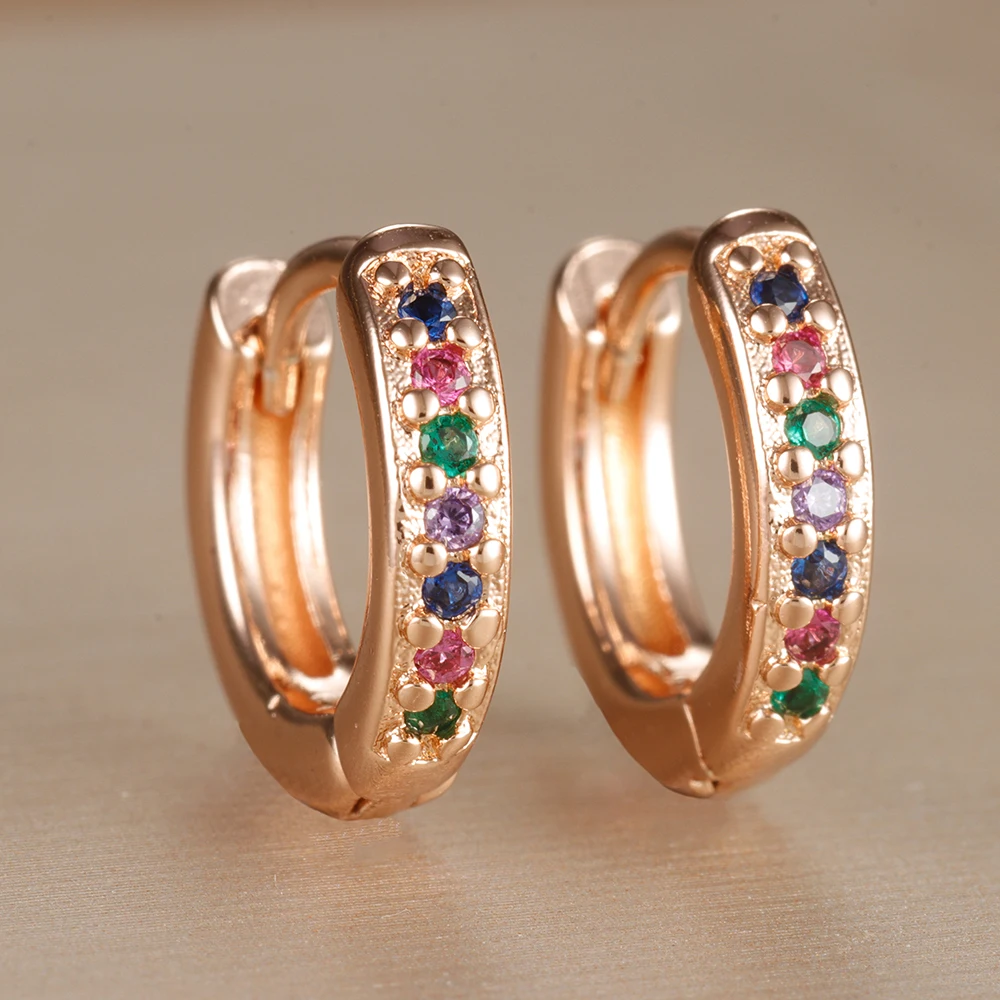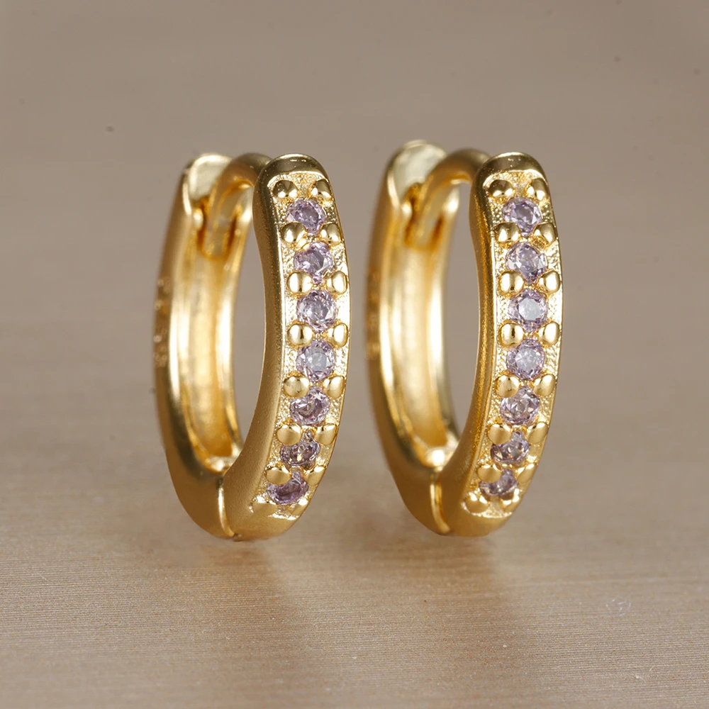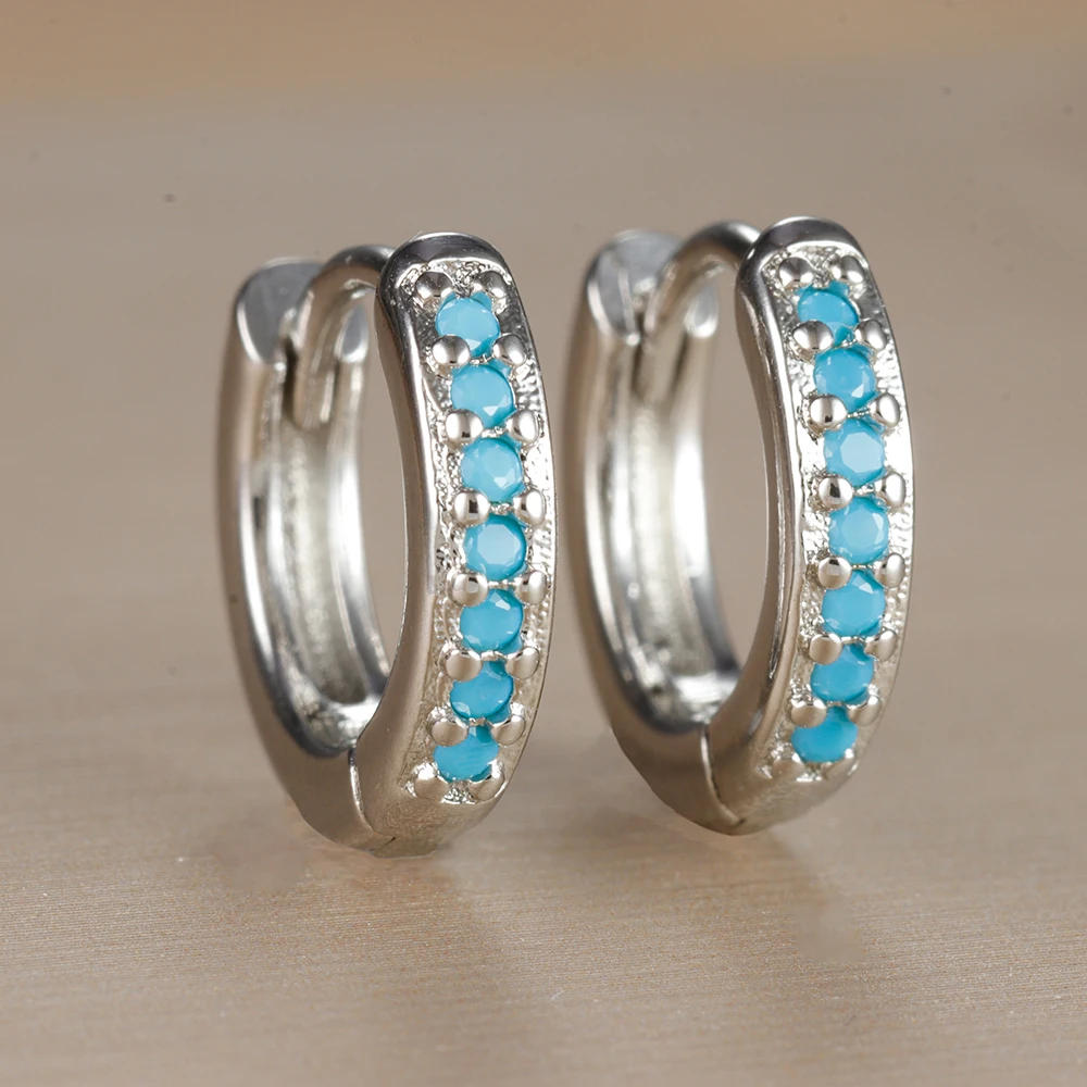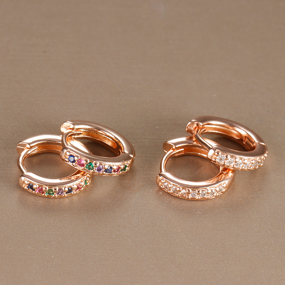 2pcs Stainless Steel Minimal Hoop Earrings for Women 8mm Huggie Hoops Multicolored Rainbow CZ Earring Cartilage Piercing Jewelry