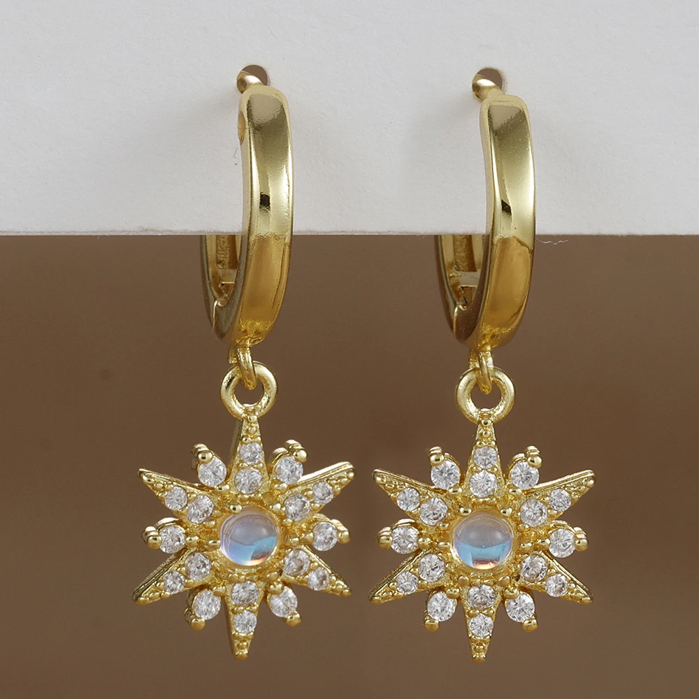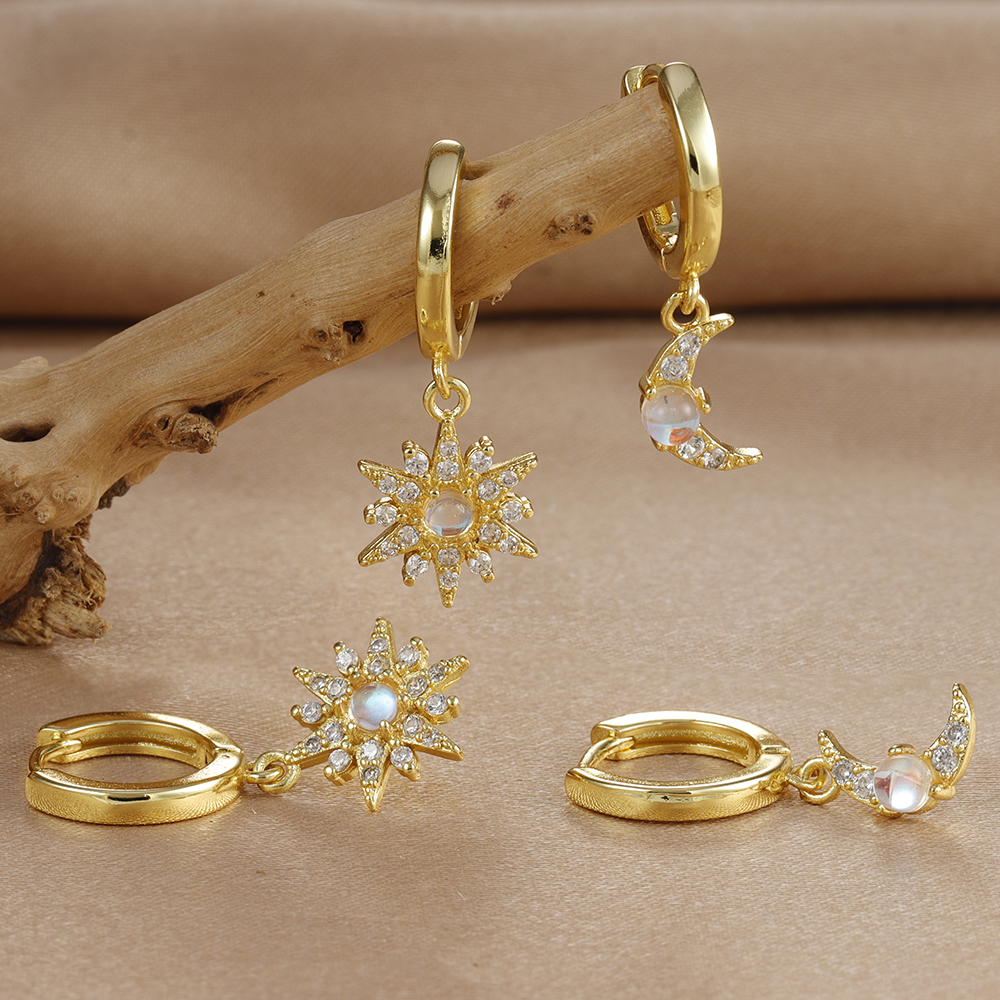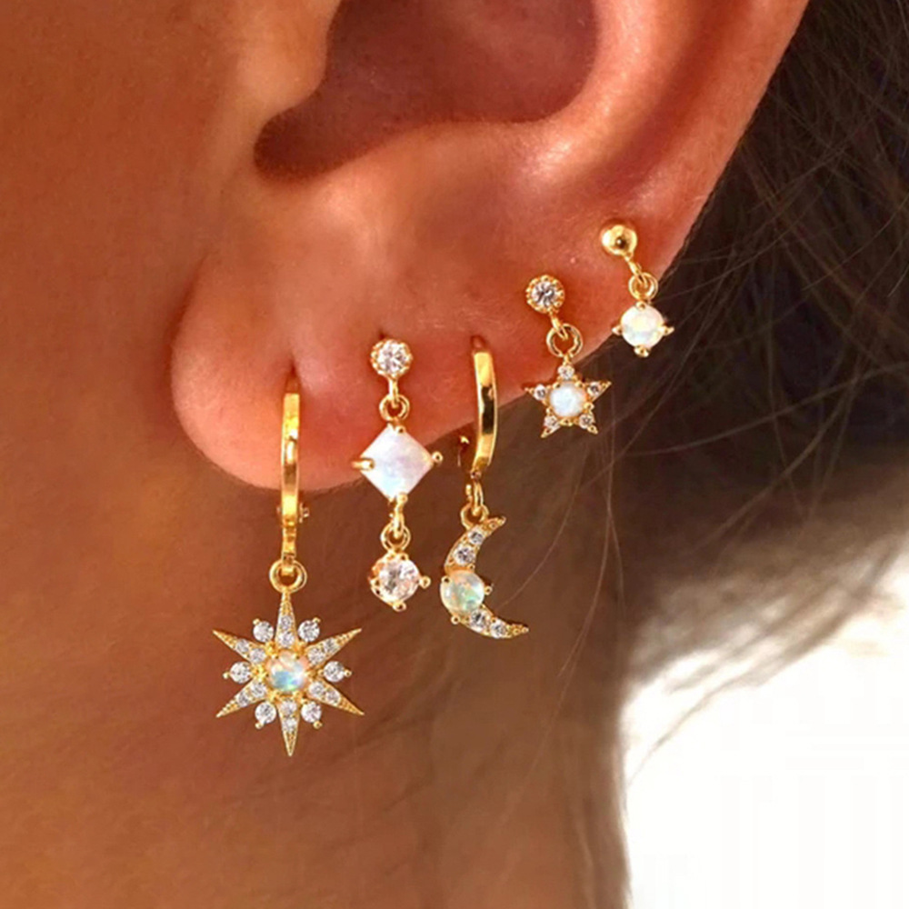 2PCS Stainless Steel Star Moon Zircon Opal Piercing Earrings for Women Sun Ear Buckle Earring Wedding Jewelry Gifts Pendientes