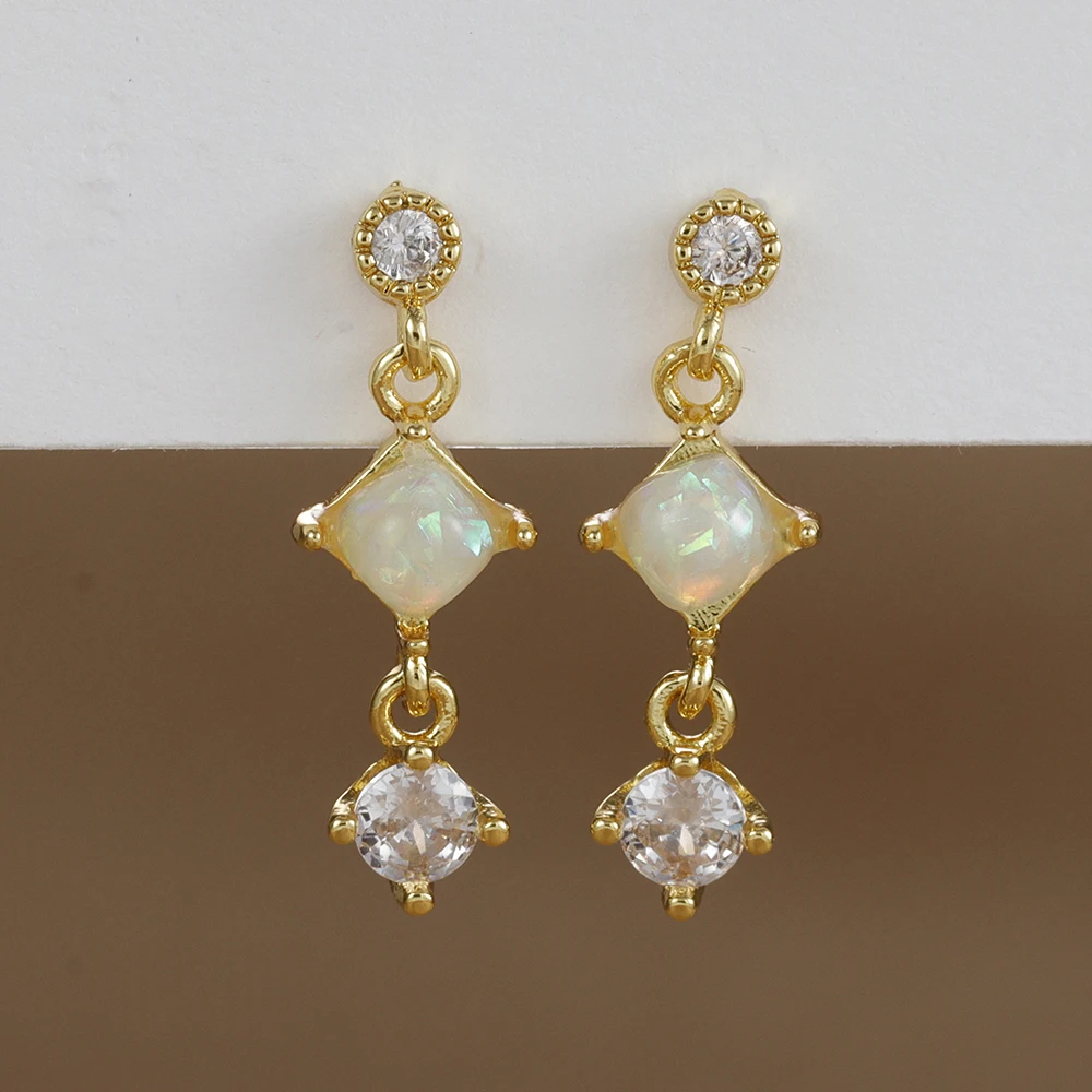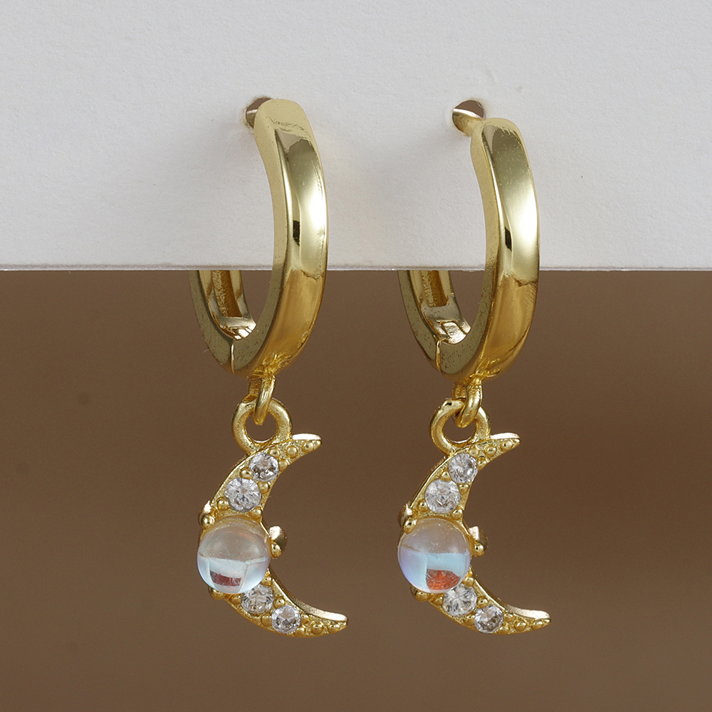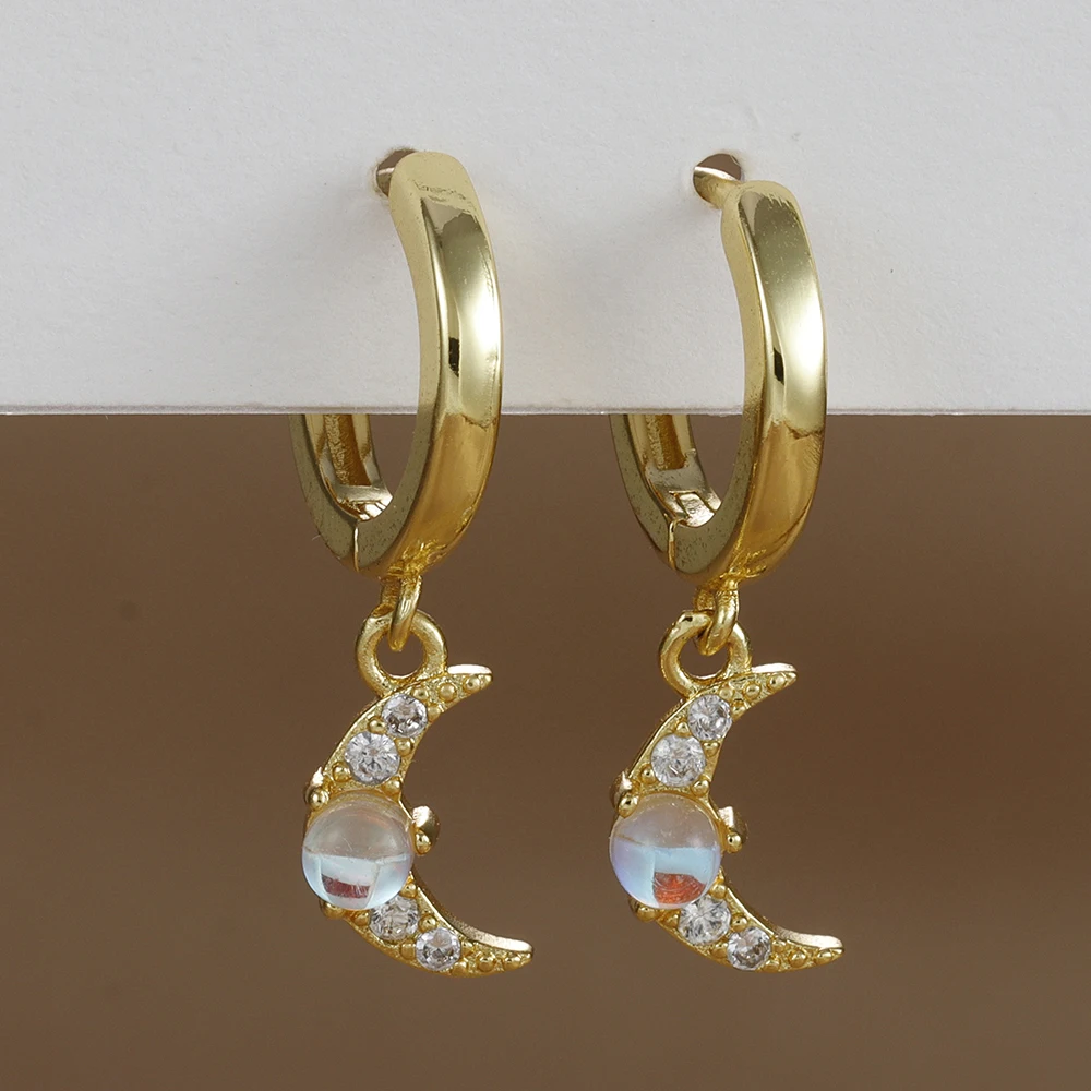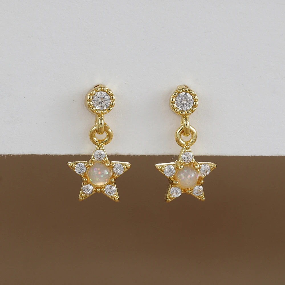 2PCS Stainless Steel Star Moon Zircon Opal Piercing Earrings for Women Sun Ear Buckle Earring Wedding Jewelry Gifts Pendientes