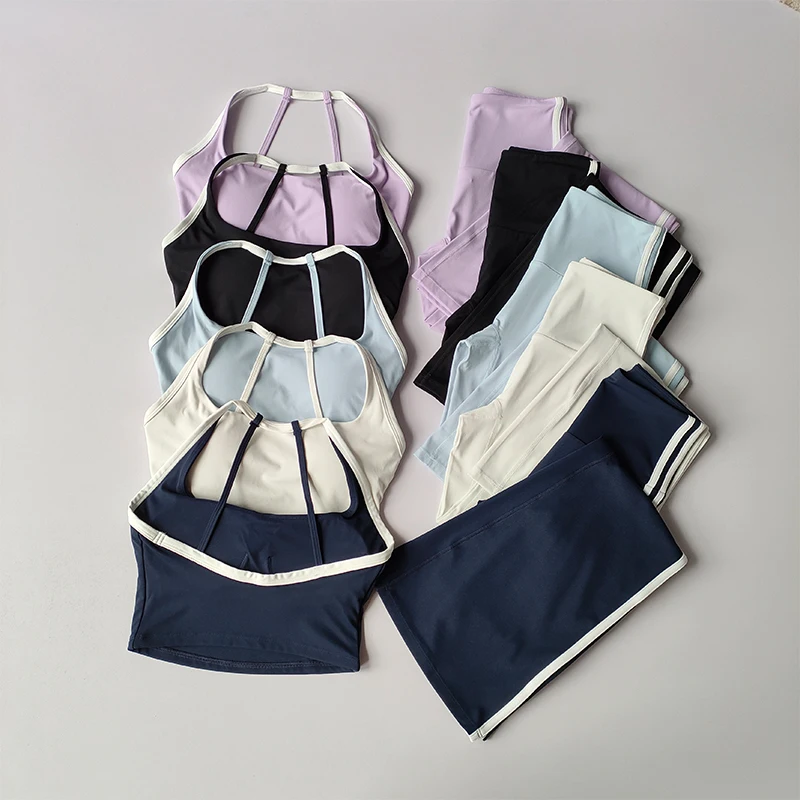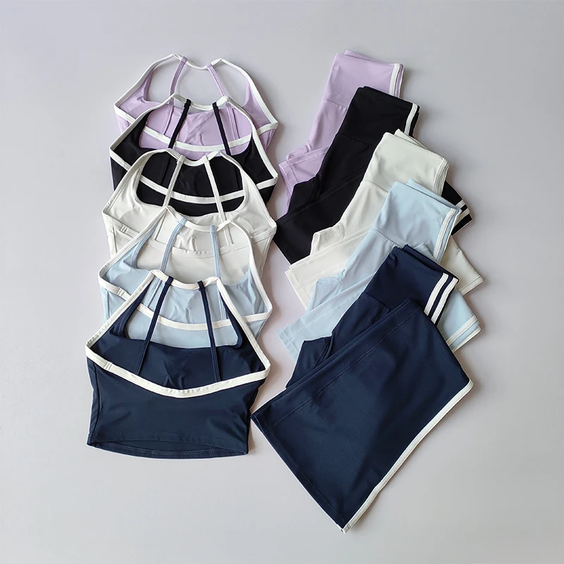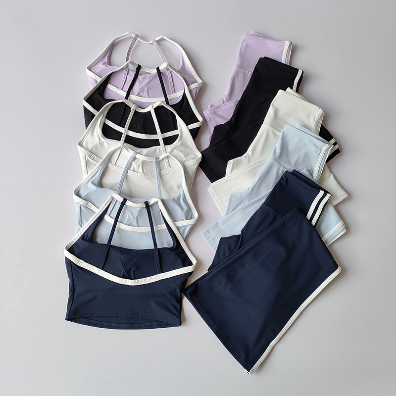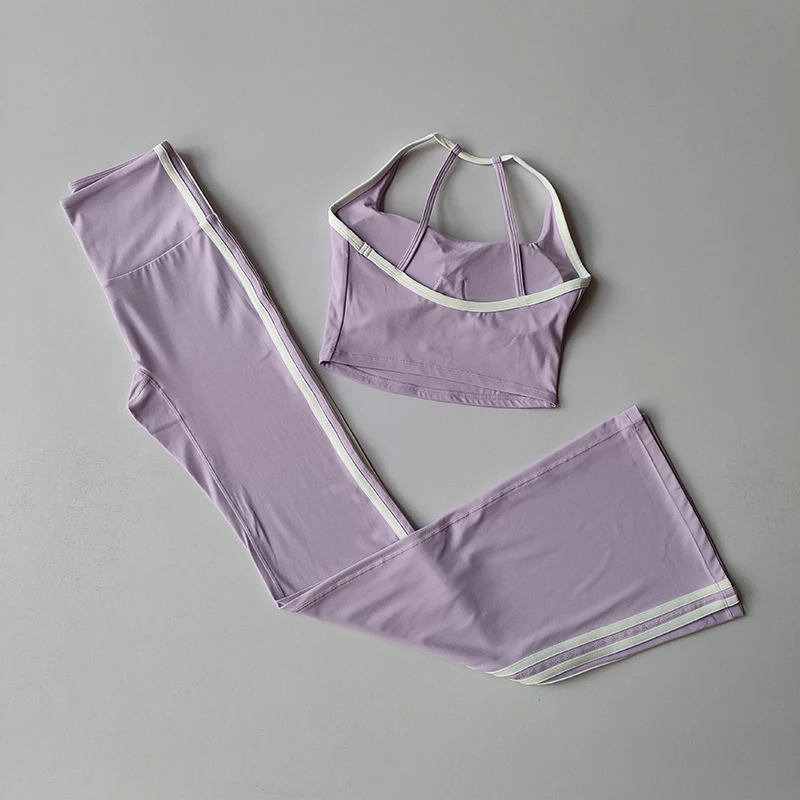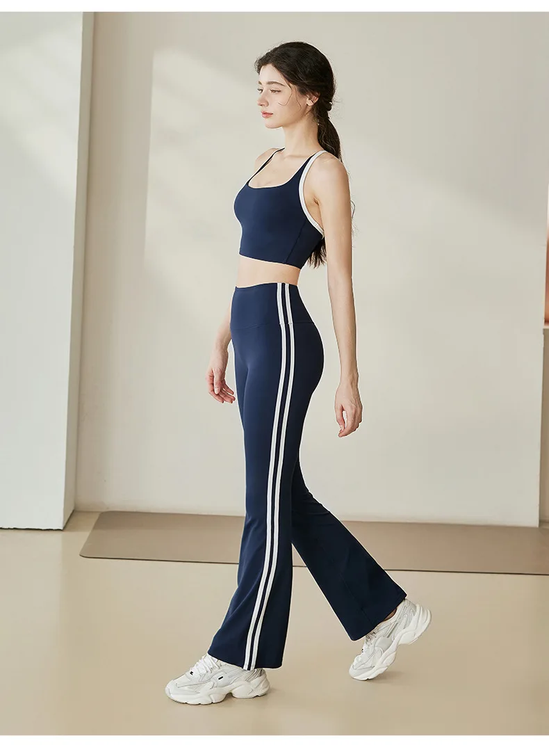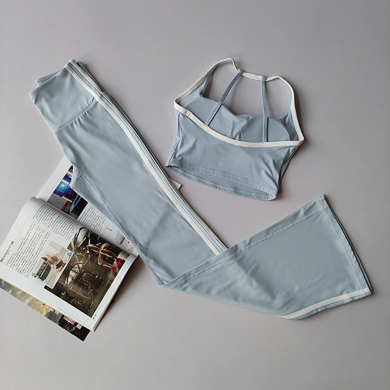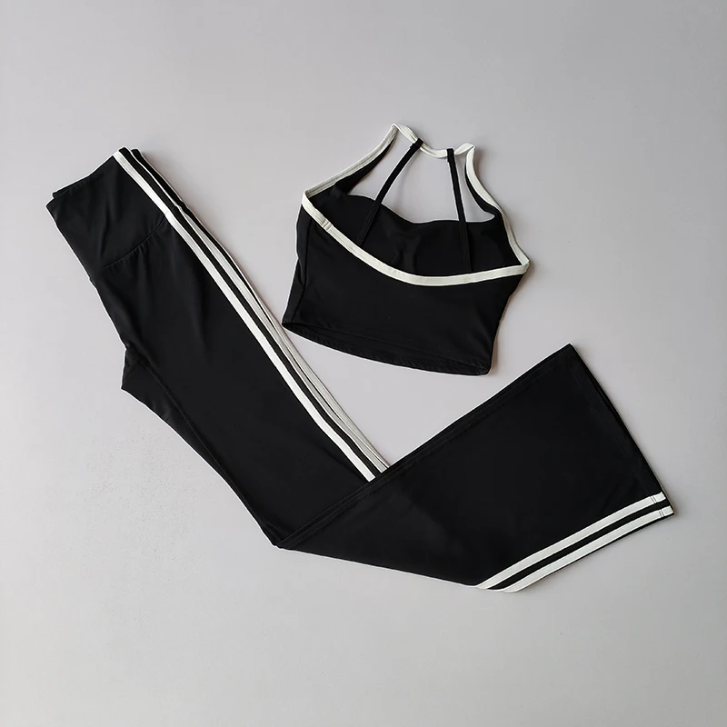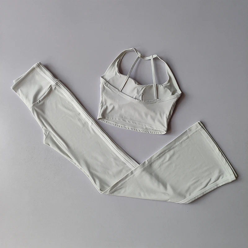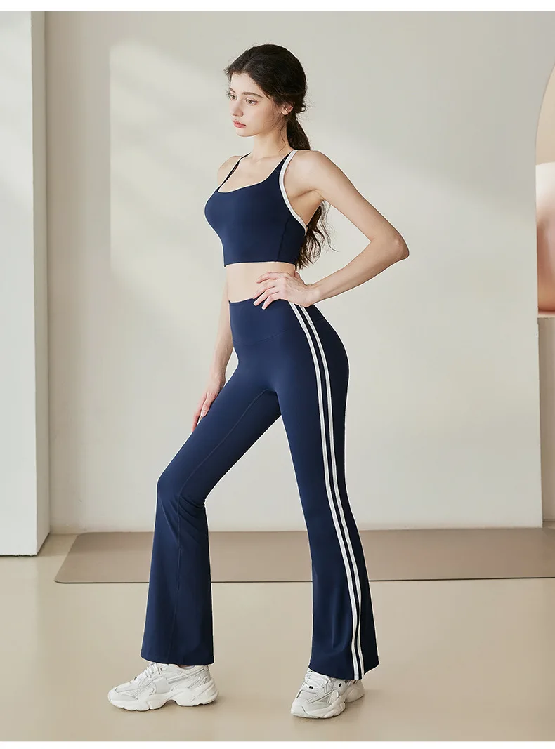 2PCS Suit Summer High Waist Belly-closing Professional Sports Yoga Suit High-end Integrated Bra Bell-bottom Pants Leggings Sets