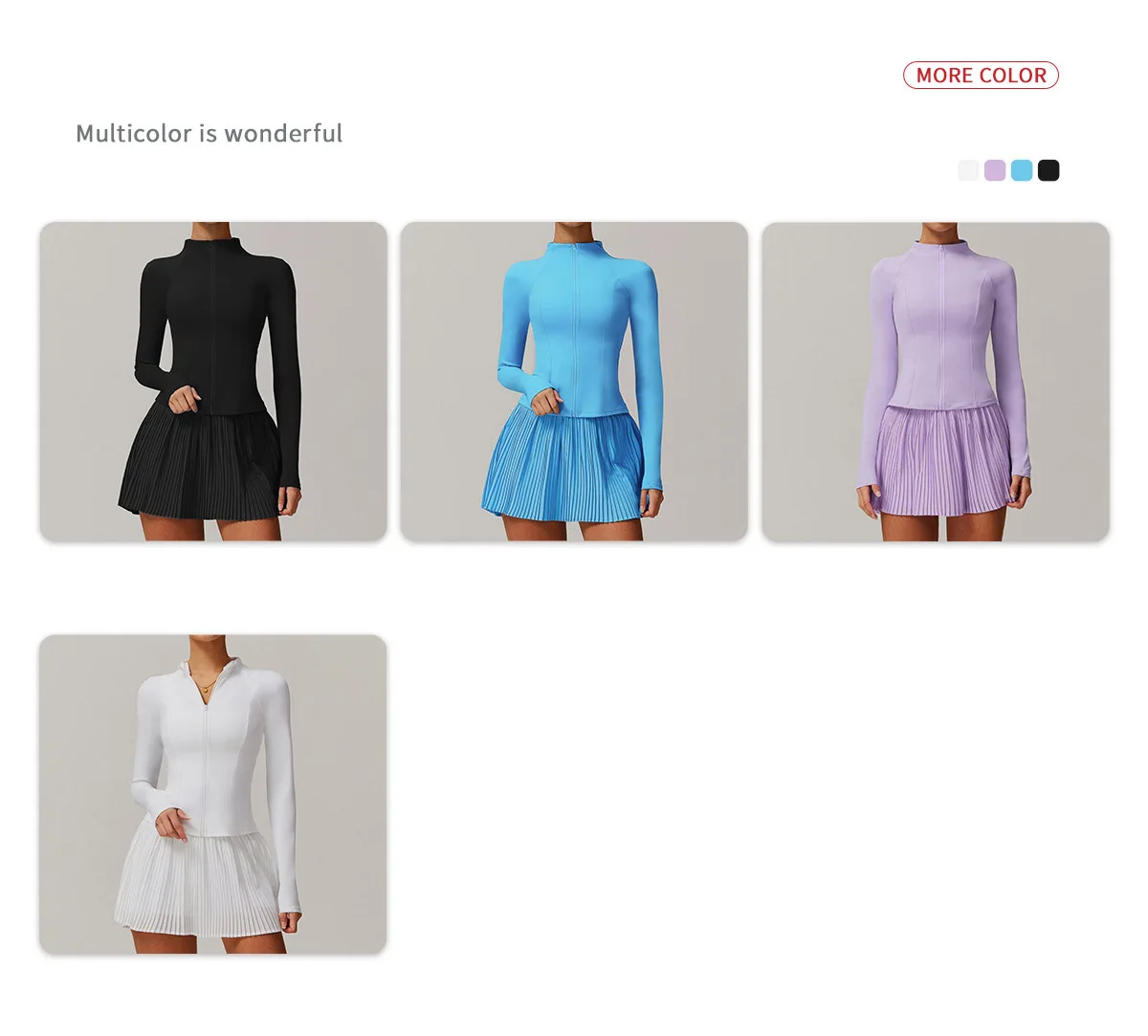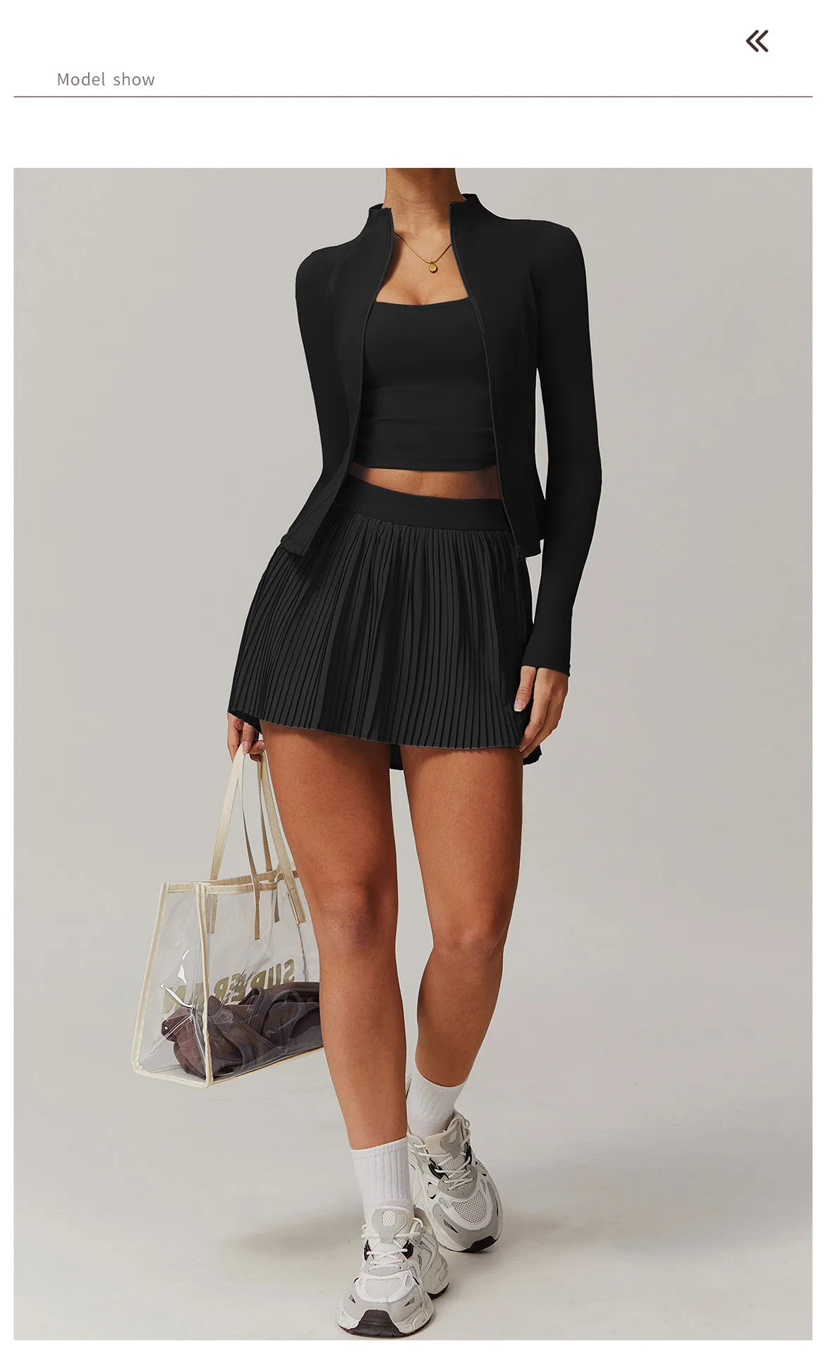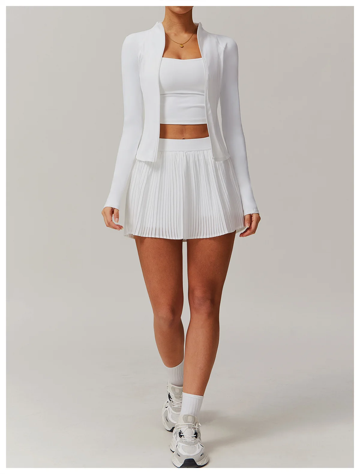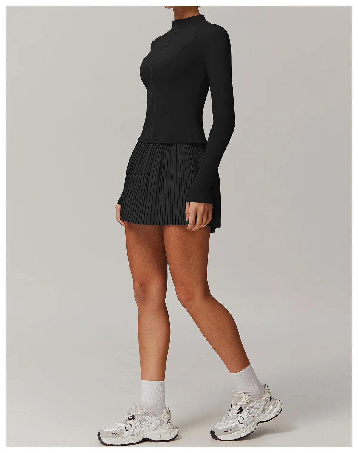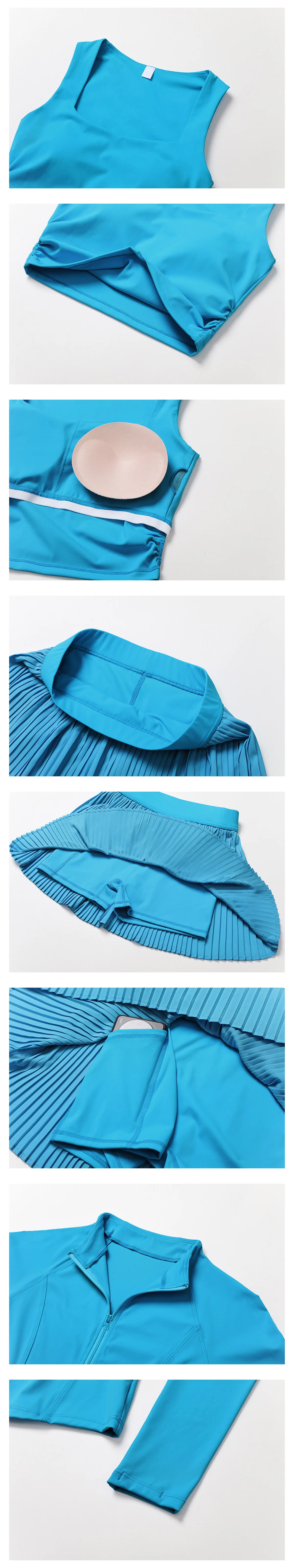 2PCS Yoga Suit Women Long Sleeve Zipper Sport Set Women Tracksuit Tennis Skirts Gym Set Female Sports Shirt Workout Sportswear