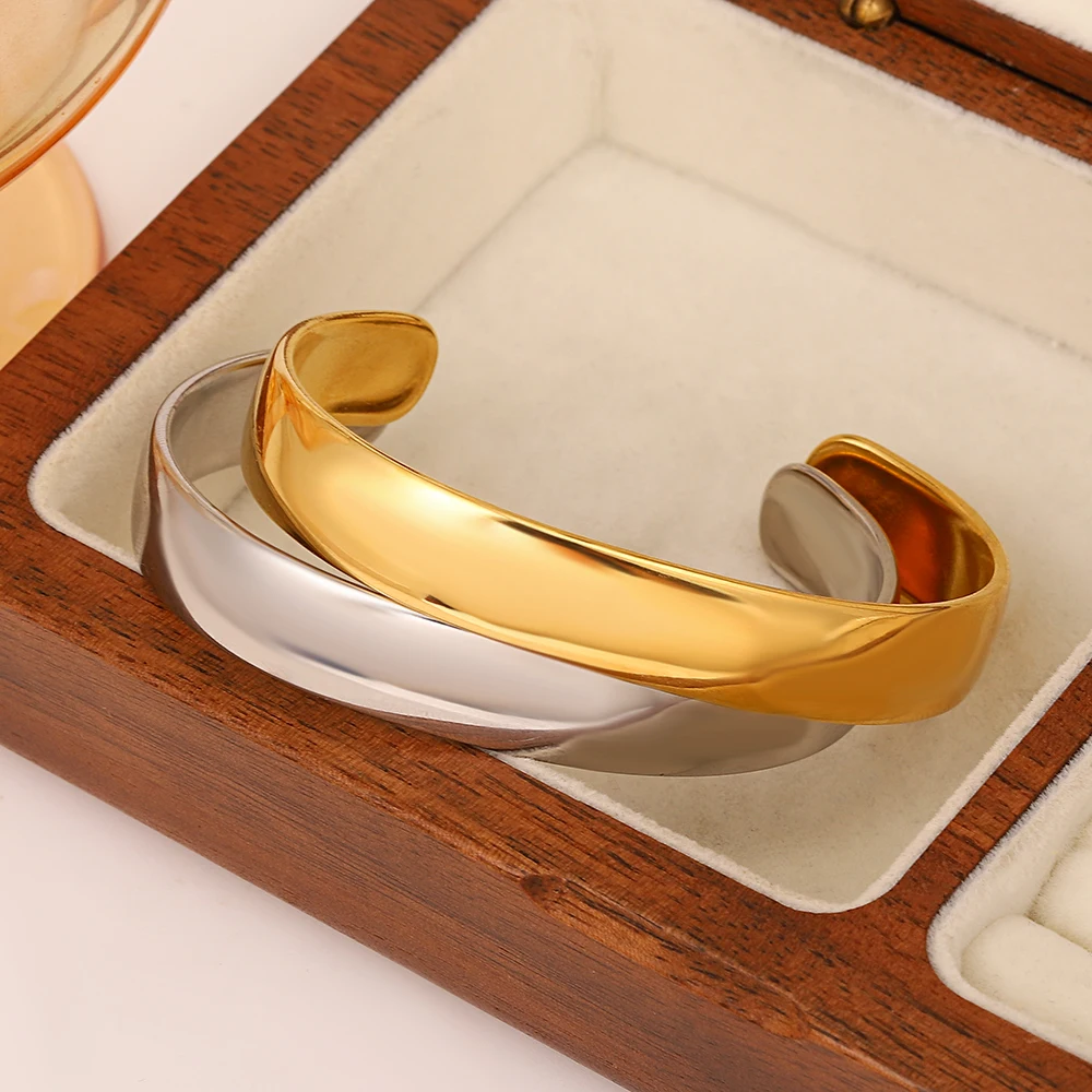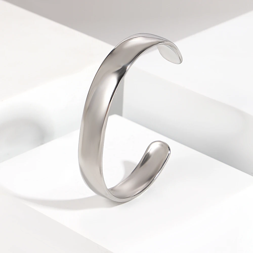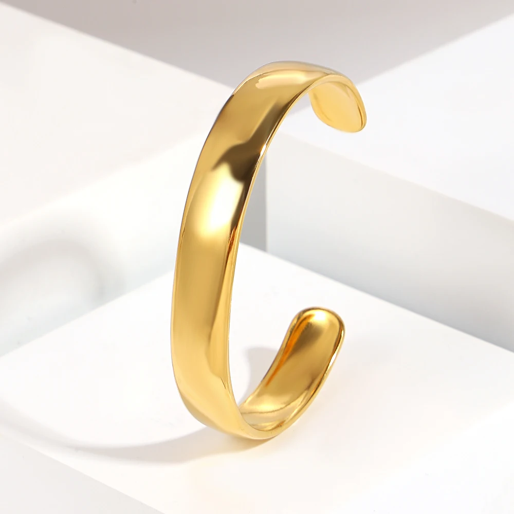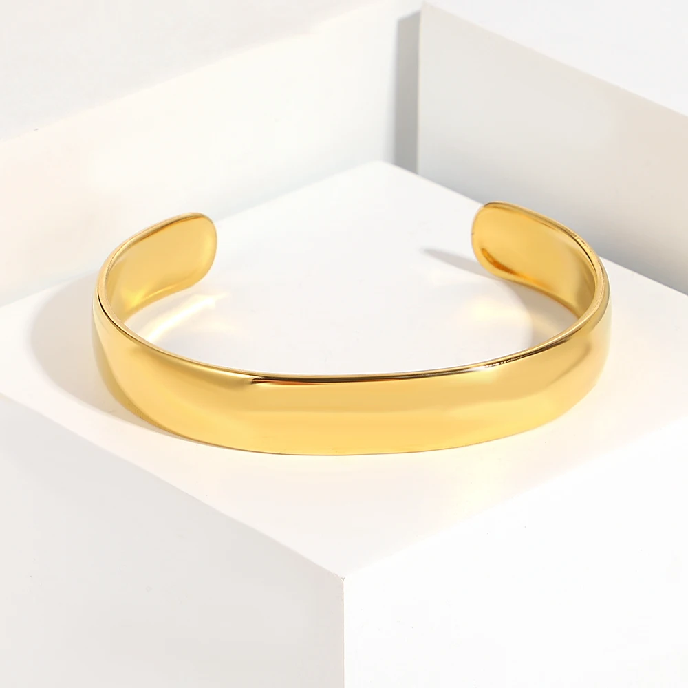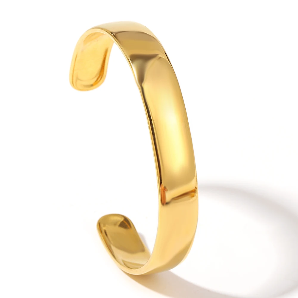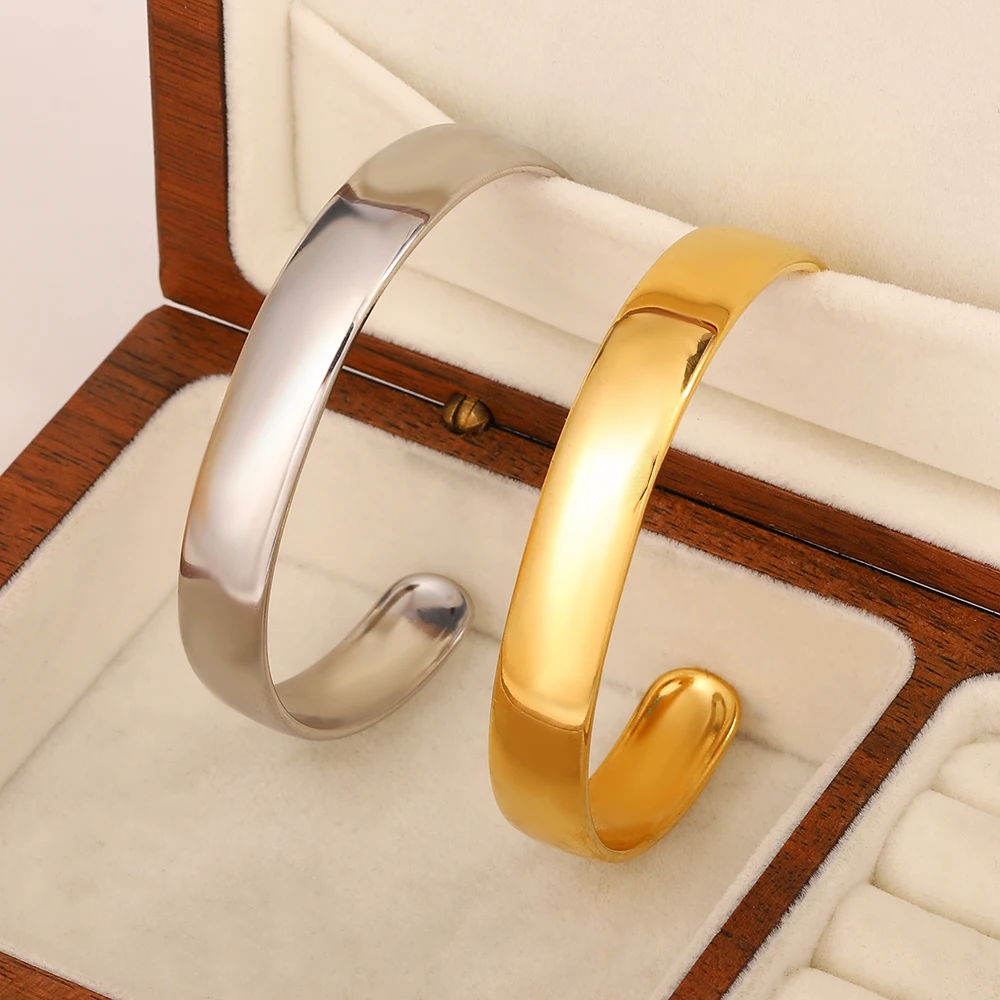 316L Stainless Steel Cuff Bangle Bracelets for Women Minimalist Gold Silver Color Smooth Wide Wrist Bracelet Waterproof Jewelry