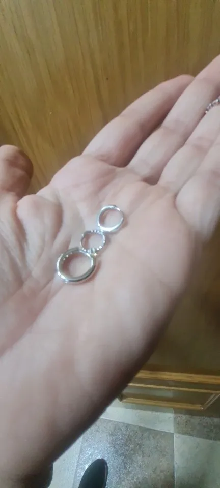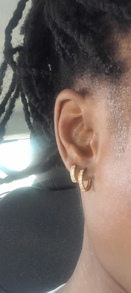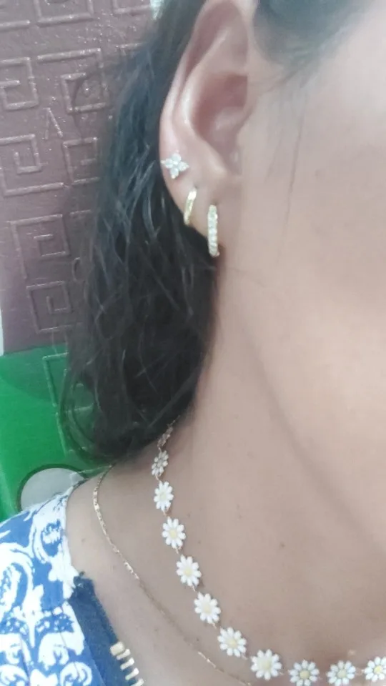They are very cute but small for my taste, I bought 2 because they come for a single ear. In the photo, the smaller earring is missing, I didn't put it in, but it's very cute.