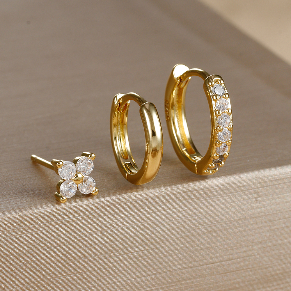 3PCS 14K Gold Plated Stainless Steel Gold Color Circle Earrings Hypoallergenic Dainty Hoop Earrings Set for Women Trendy Jewelry