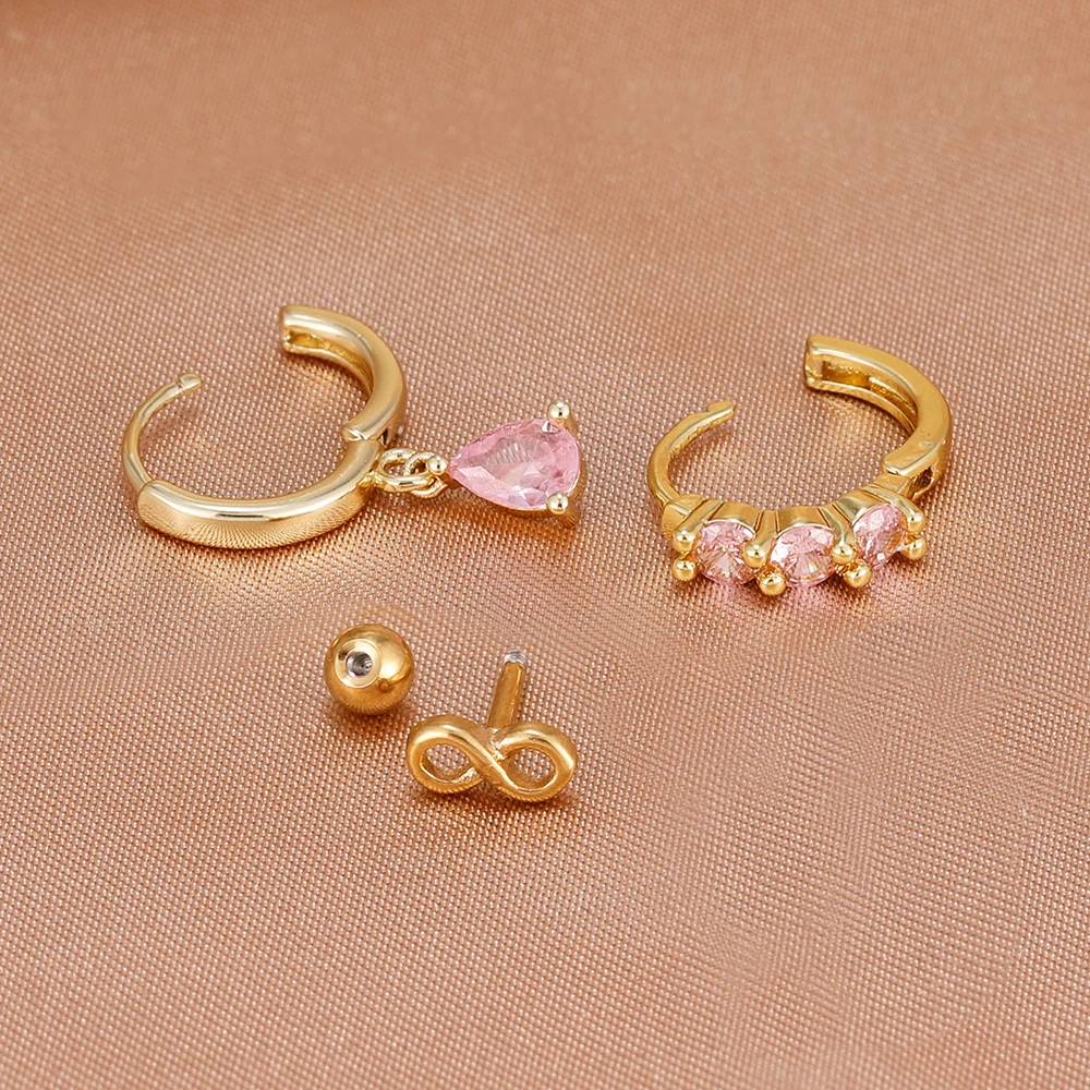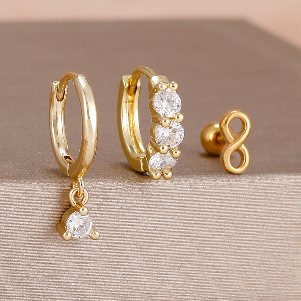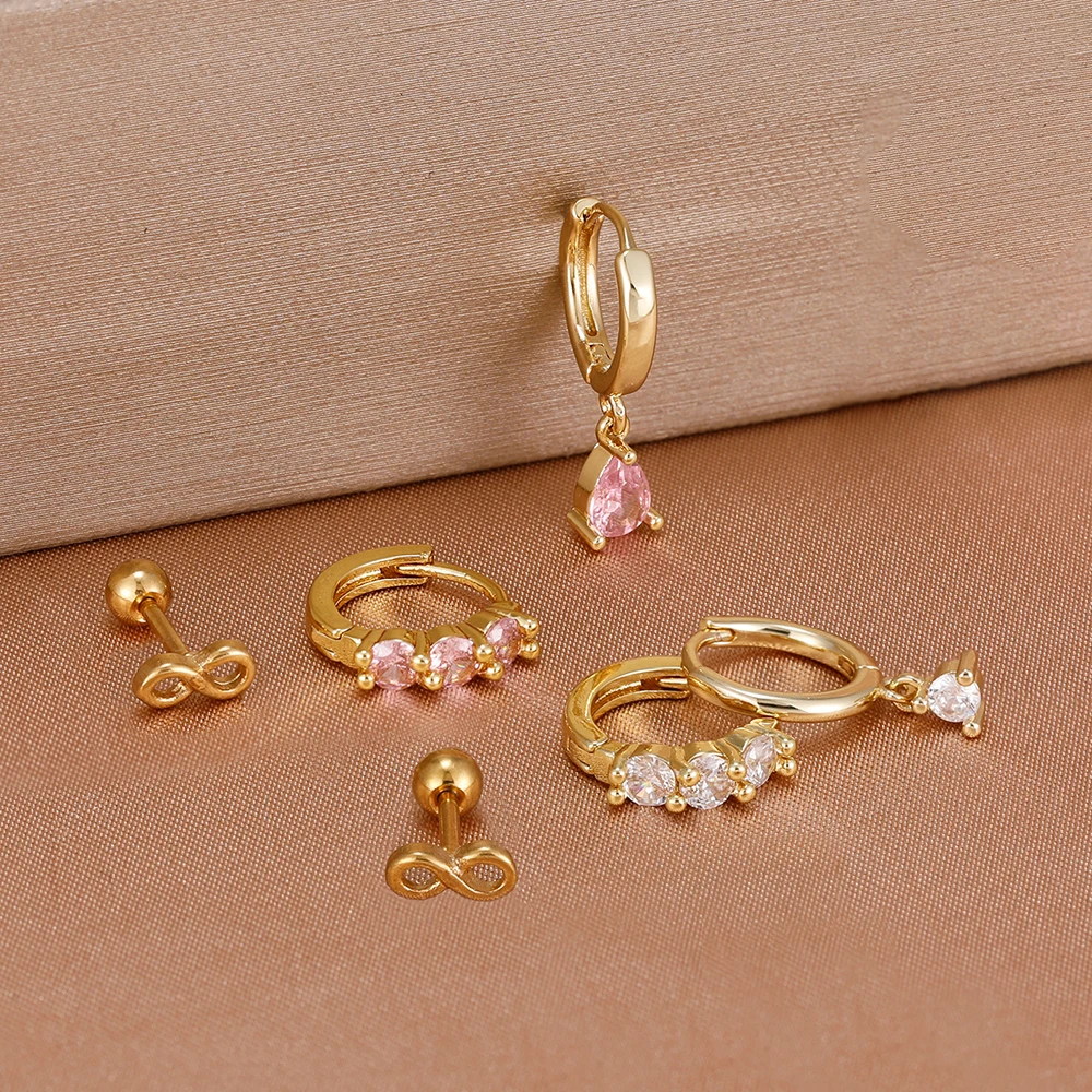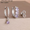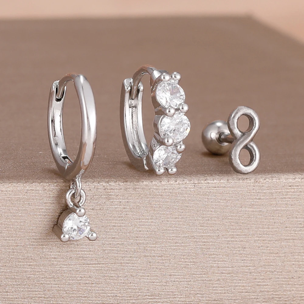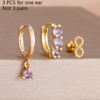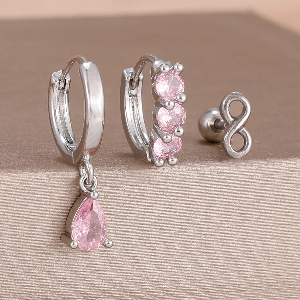 3PCS Fashion Green/Pink/Purple Cubic Zirconia Hoop Earrings Set for Women Stainless Steel Bridal Wedding Party Piercing Jewelry