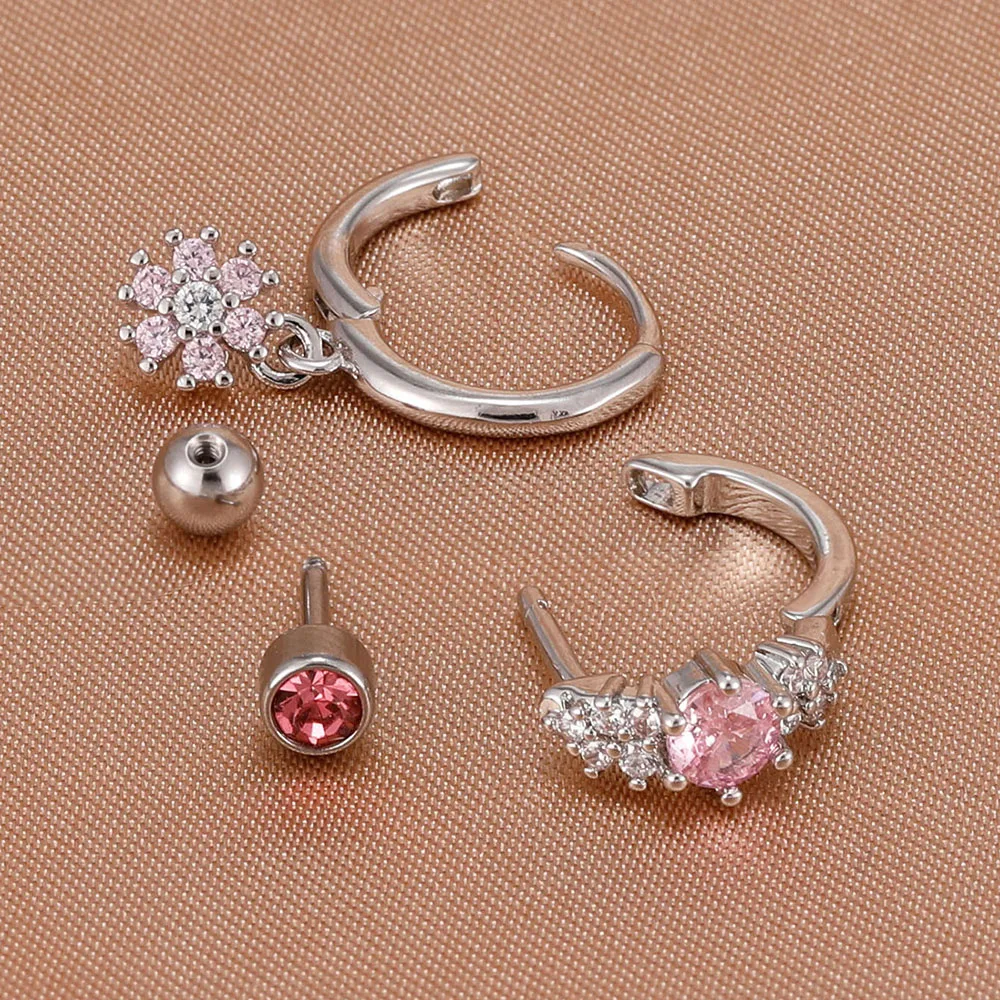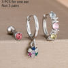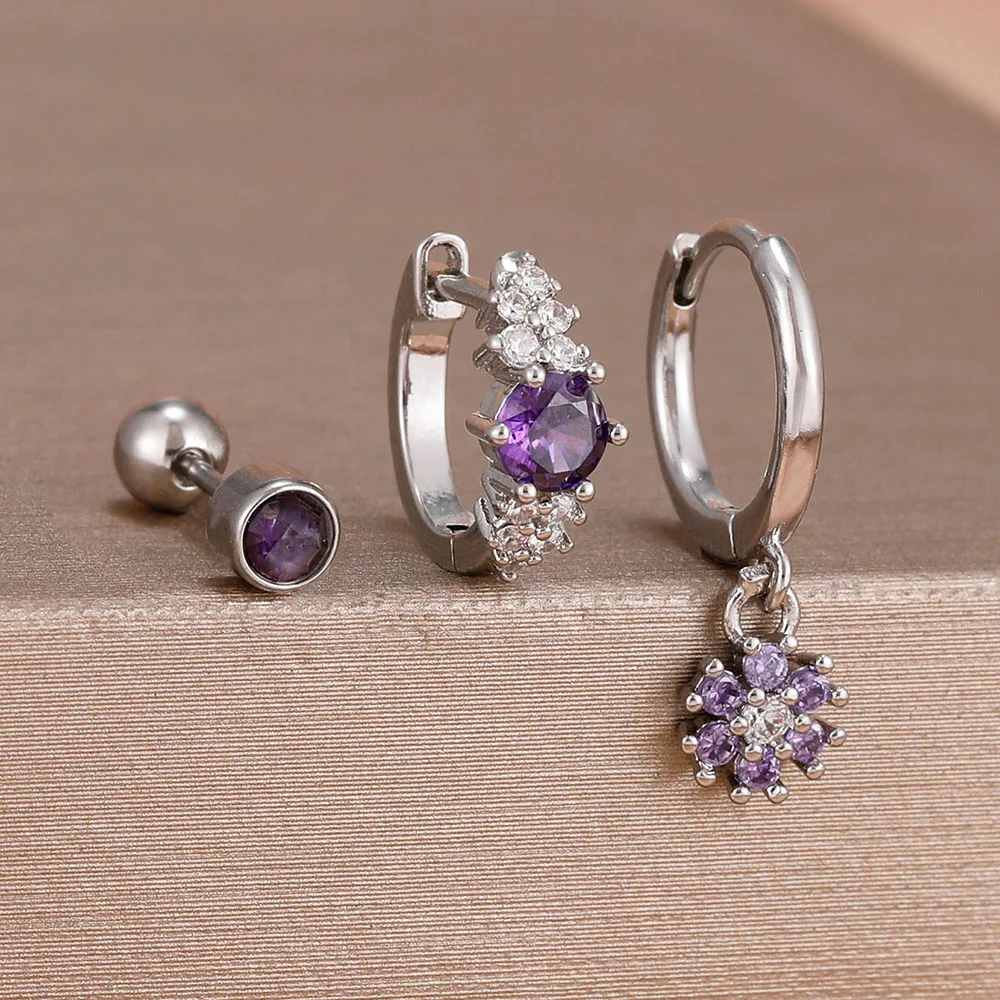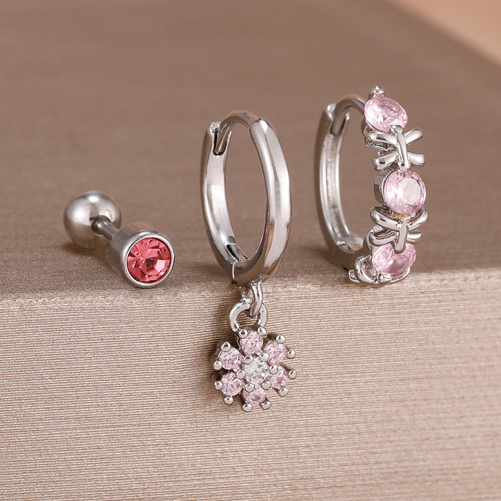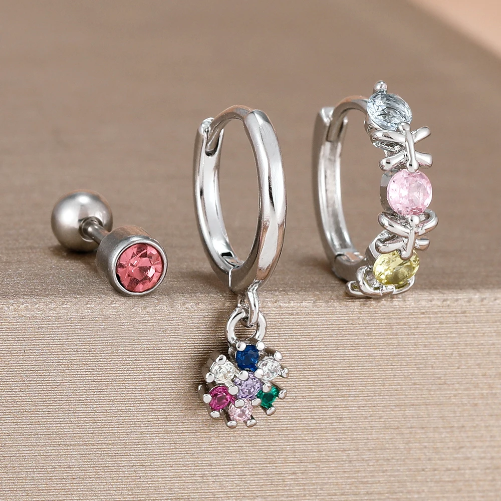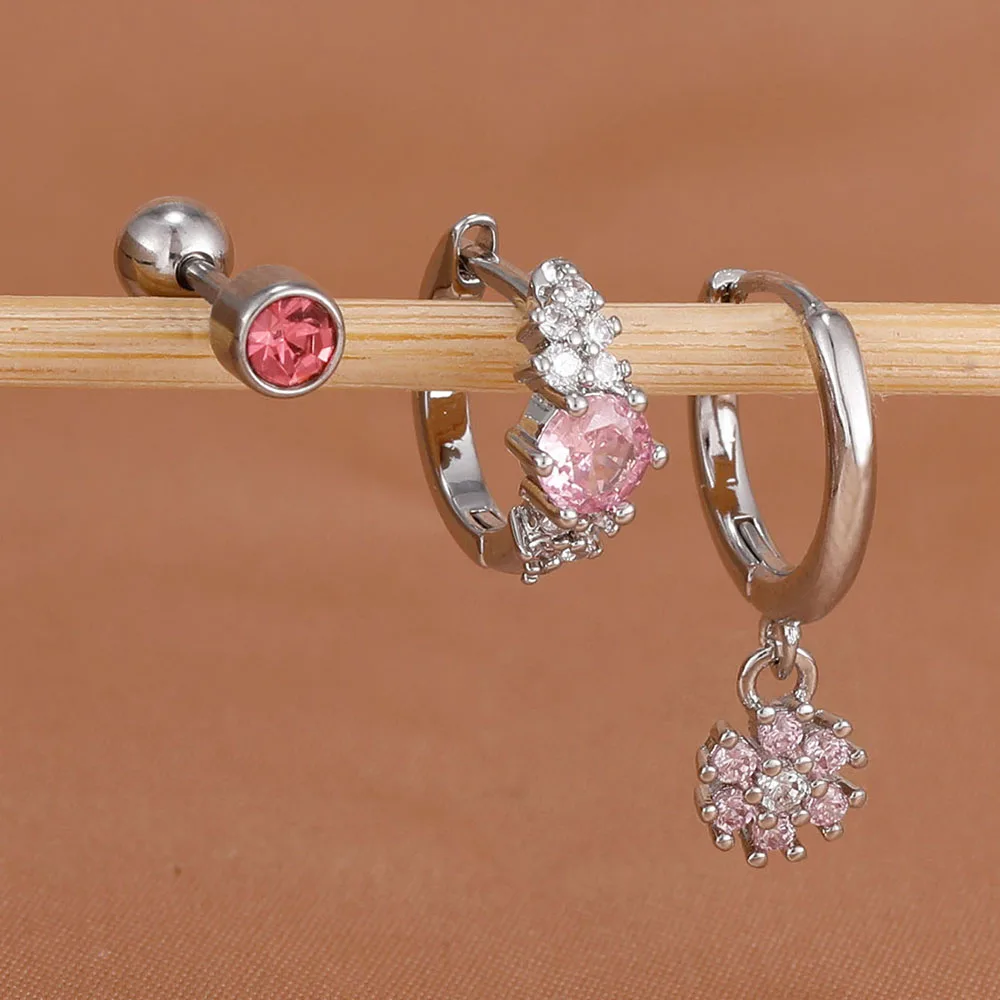3Pcs Fashion Stainless Steel Hoop Earrings Set For Women Exquisite Pendant Crystal Flower Huggie Piercing Earring Jewelry