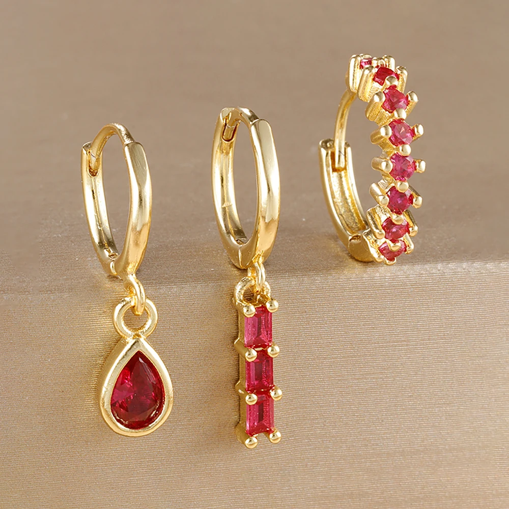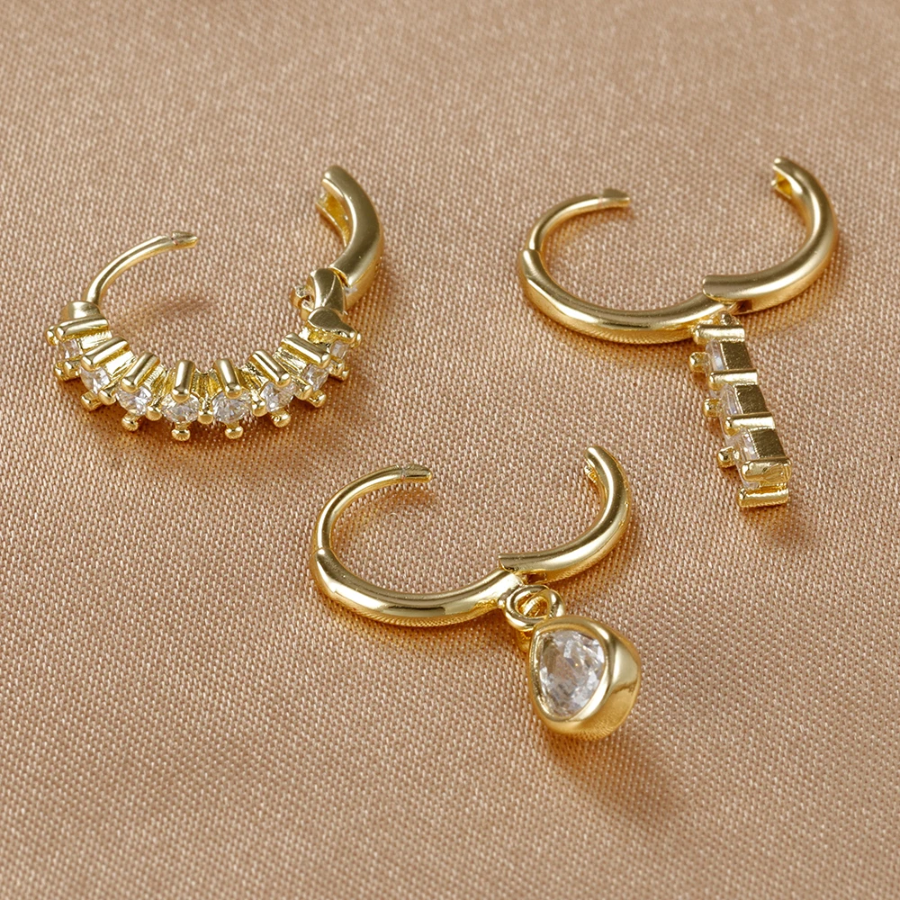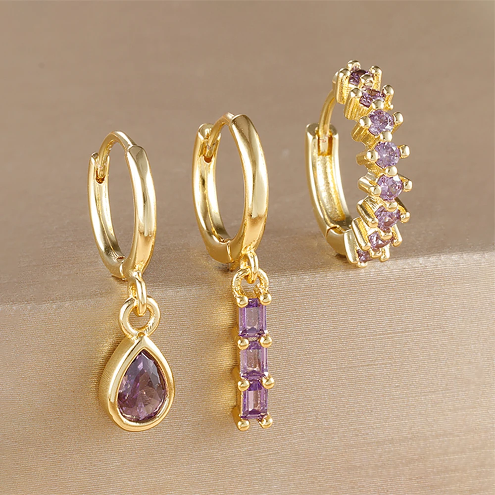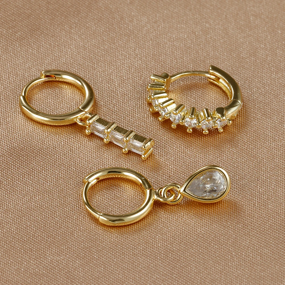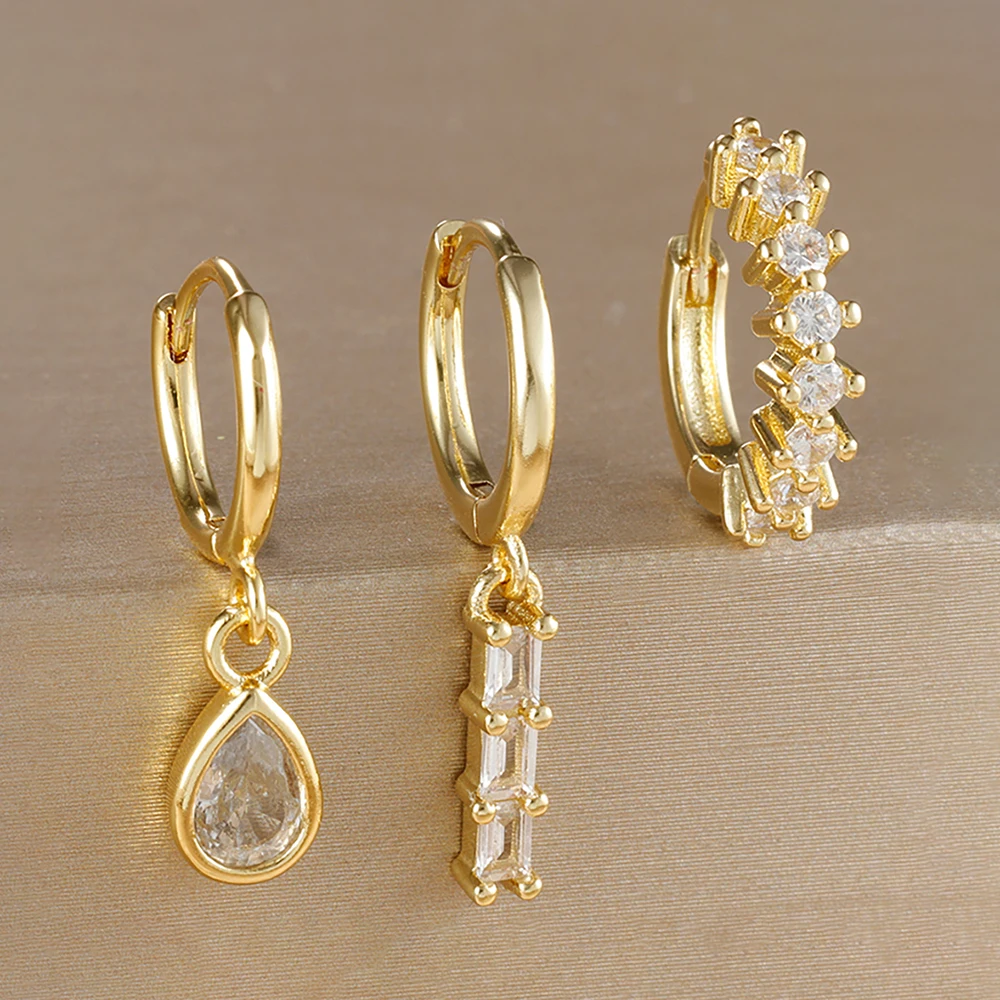 3PCS Fashion Water Drop Pendant Piercing Earrings Set For Women Stainless Steel Zircon Round Hoop Earring Statement Jewelry