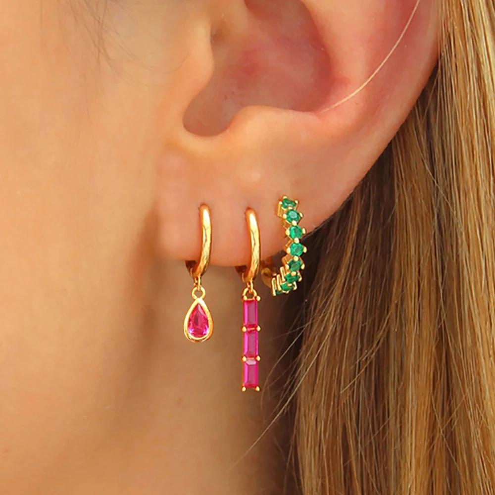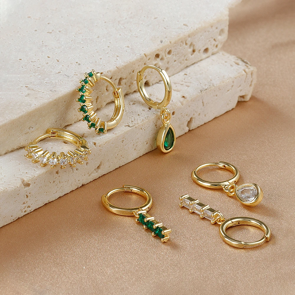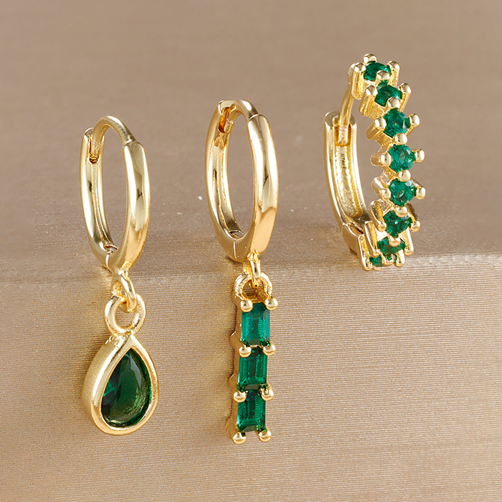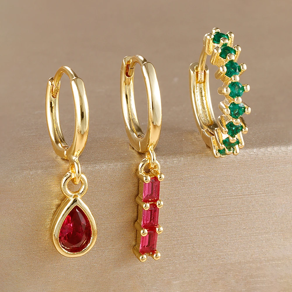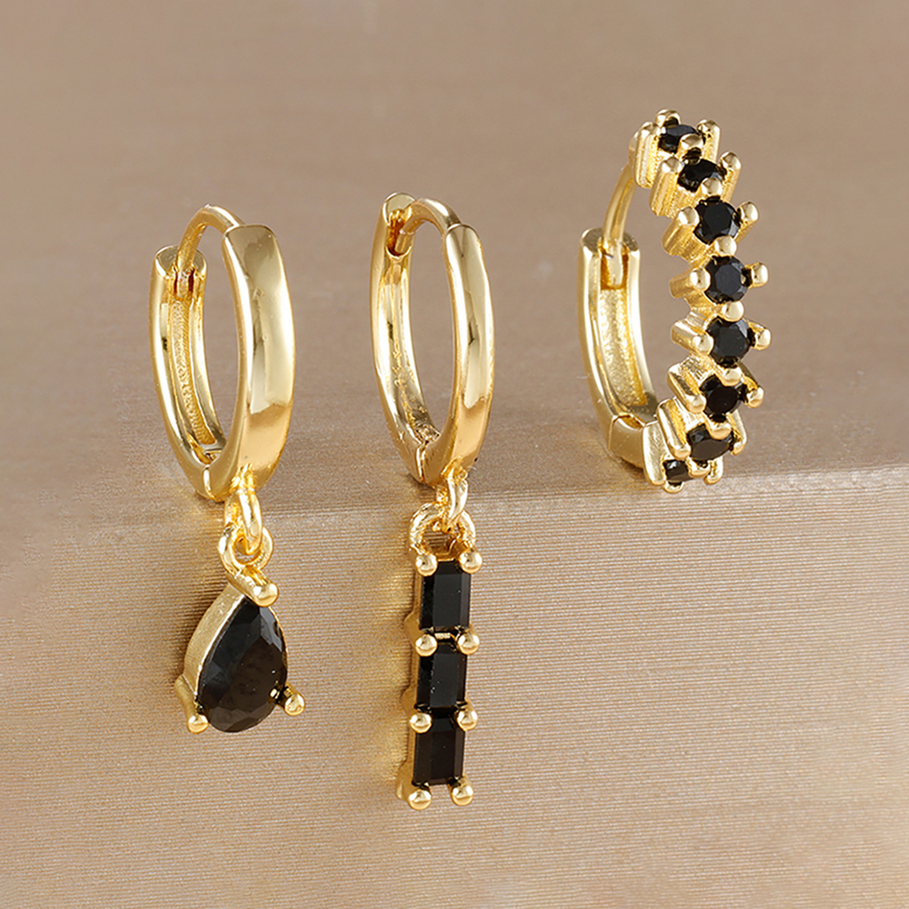 3PCS Fashion Water Drop Pendant Piercing Earrings Set For Women Stainless Steel Zircon Round Hoop Earring Statement Jewelry