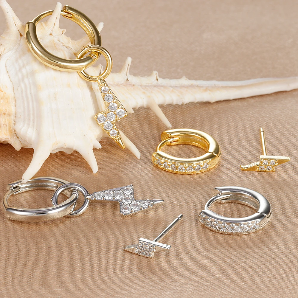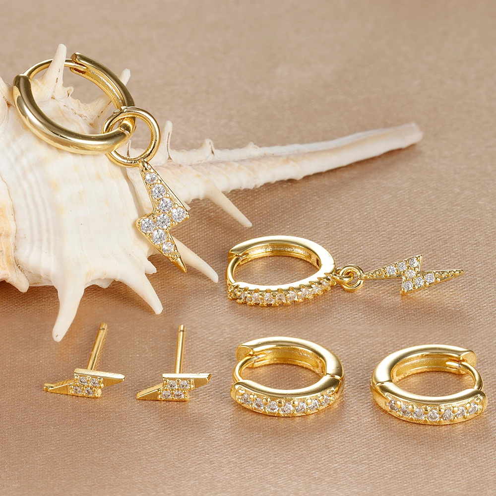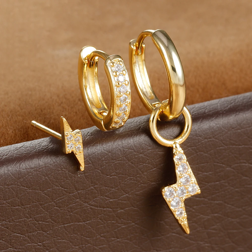 3PCS Gold Silver Color Stainless Steel Lightning Hoop Earrings for Women 18K Gold Plated Punk Huggies Cartilage Piercing Jewelry