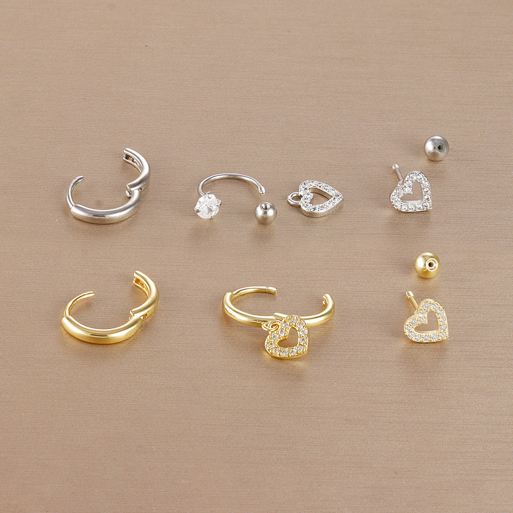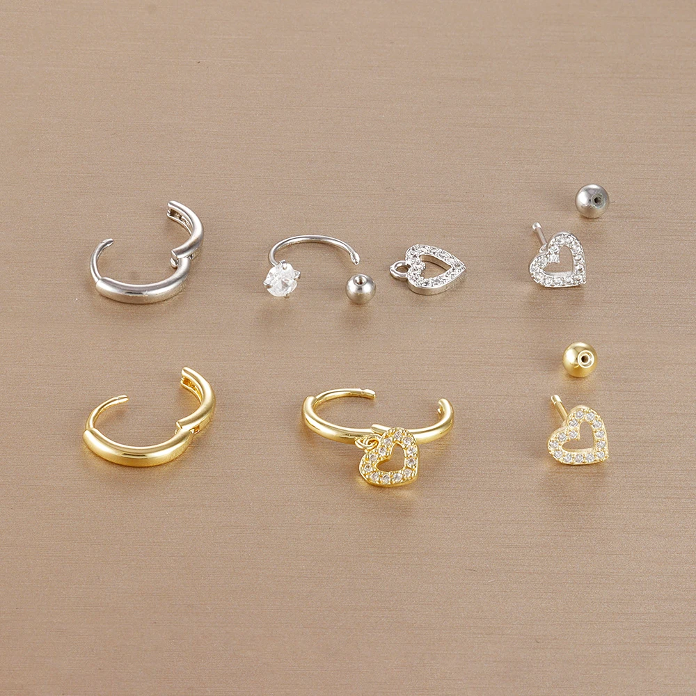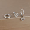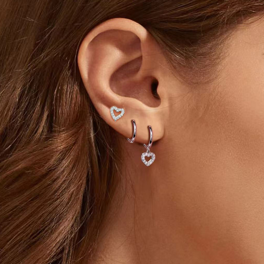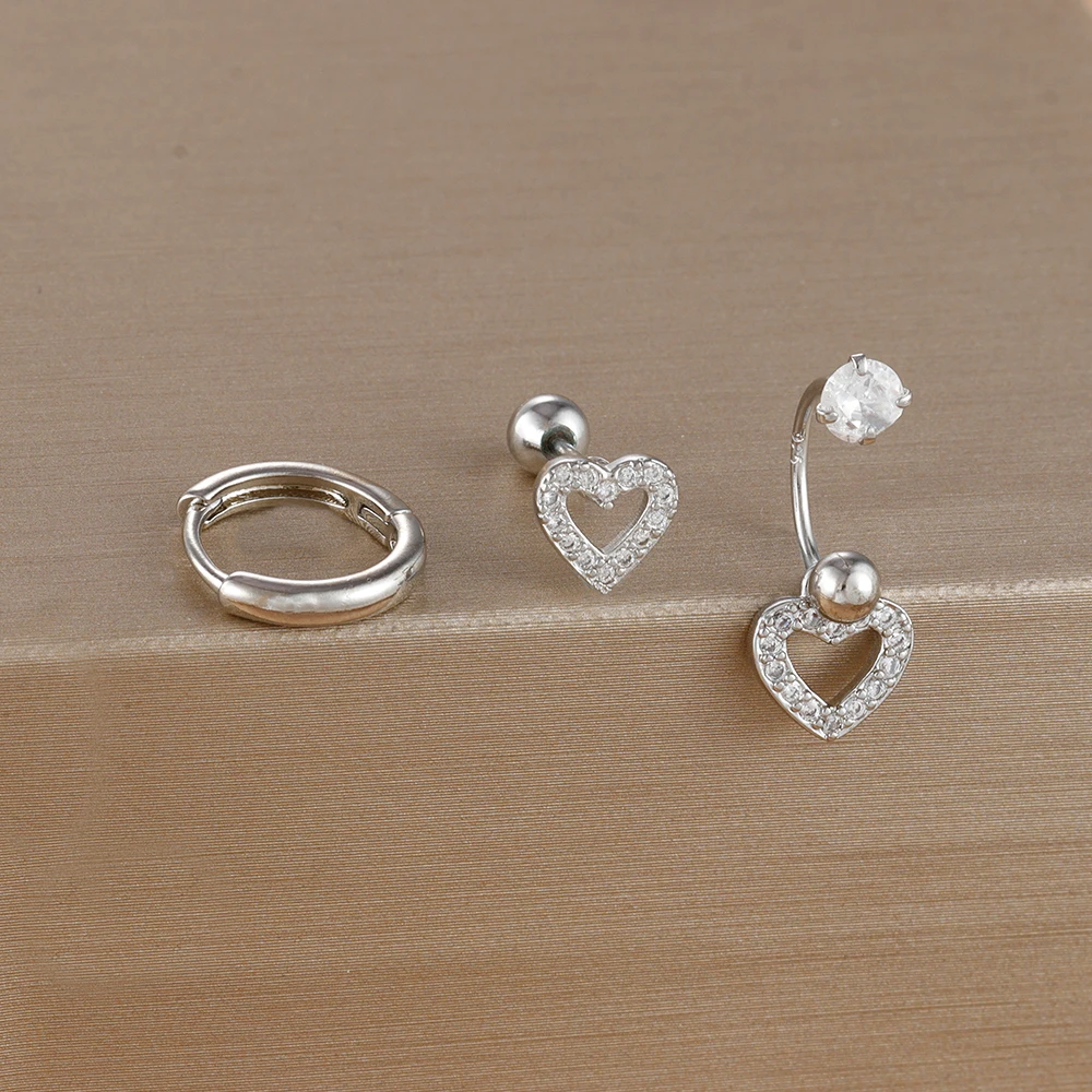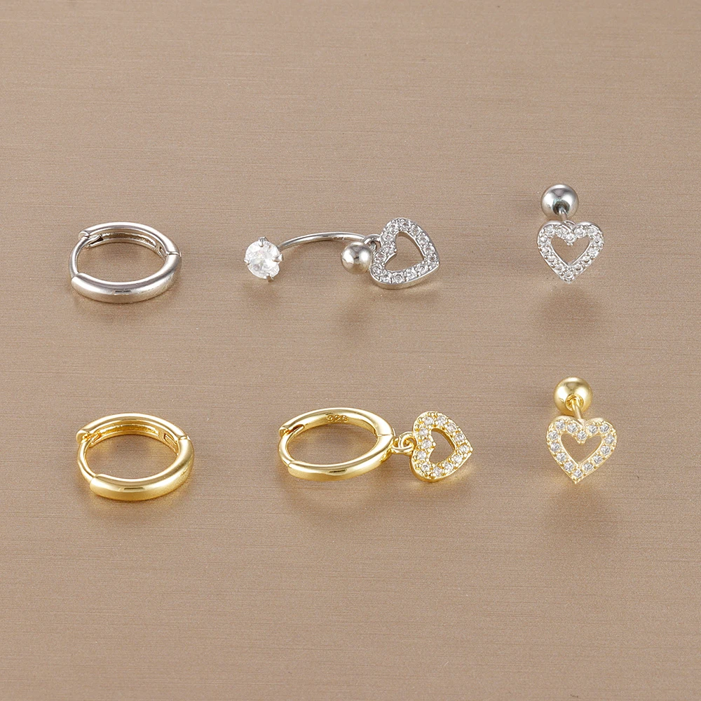 3PCS Heart-Shaped Zircon Pendant Hollow Hoop Earrings Set for Women Stainless Steel Gold Color Round Earrings Fashion Jewelry