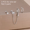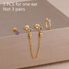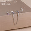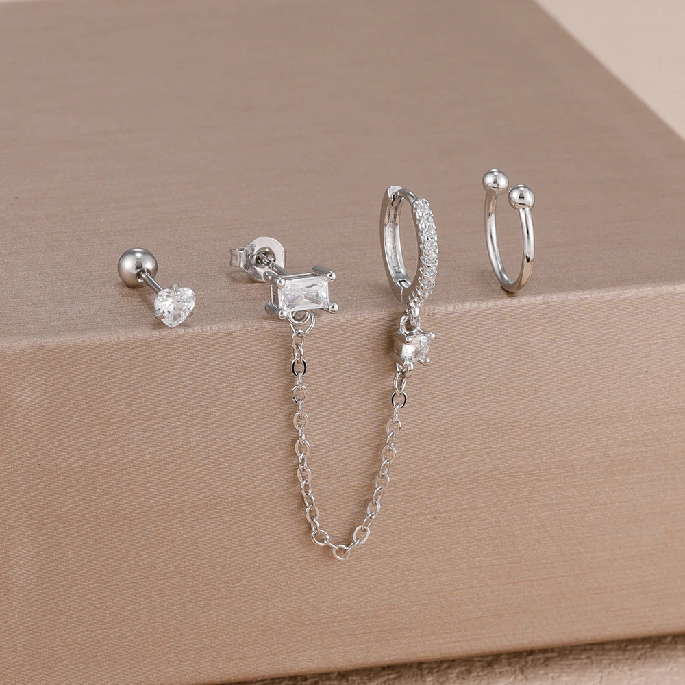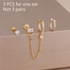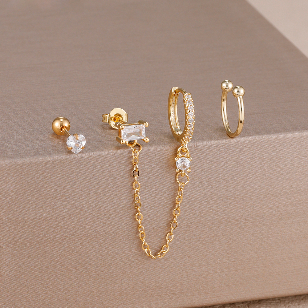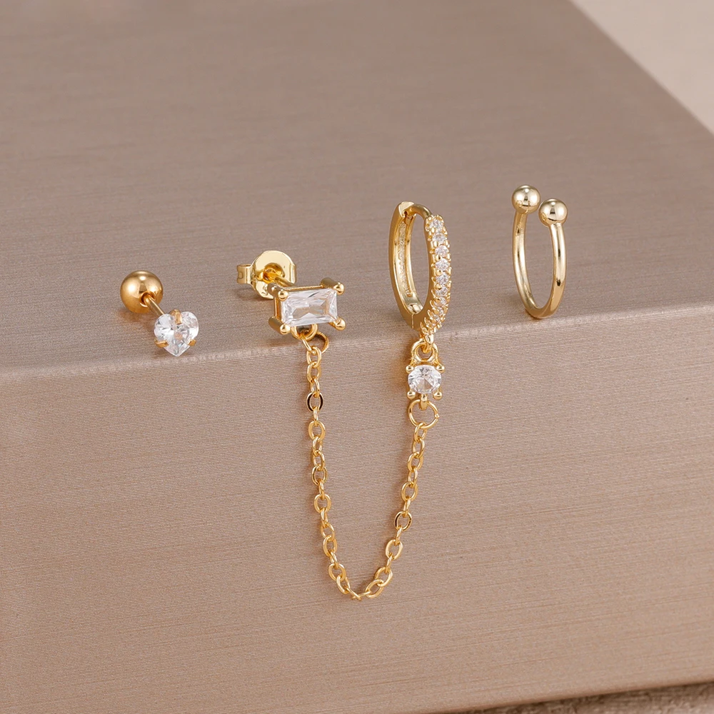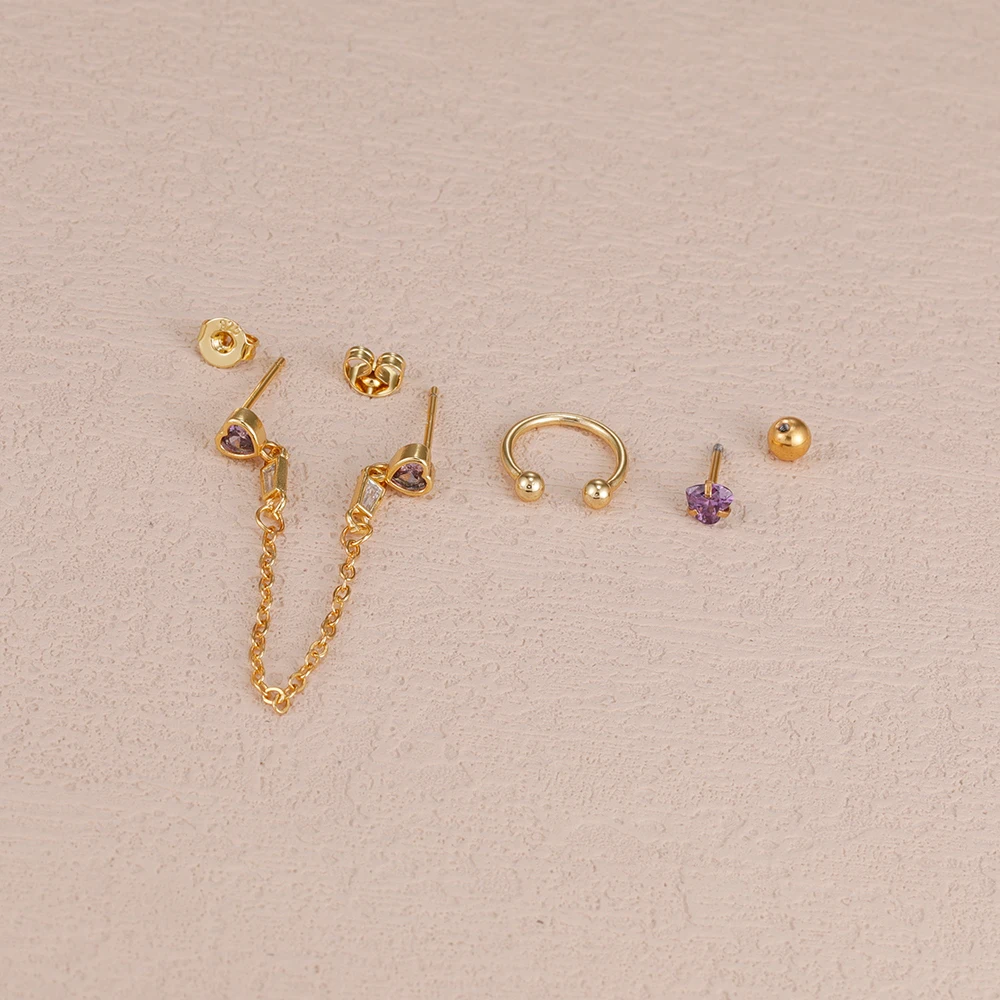 3PCS Heart Square Purple Zircon Tassel Chain Earrings Set For Women Gold Plated Elegant Studs Hoop Earring Girl Party Jewelry