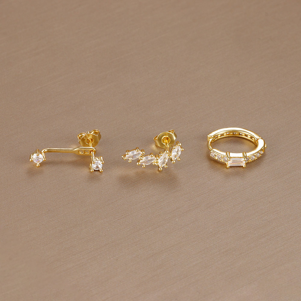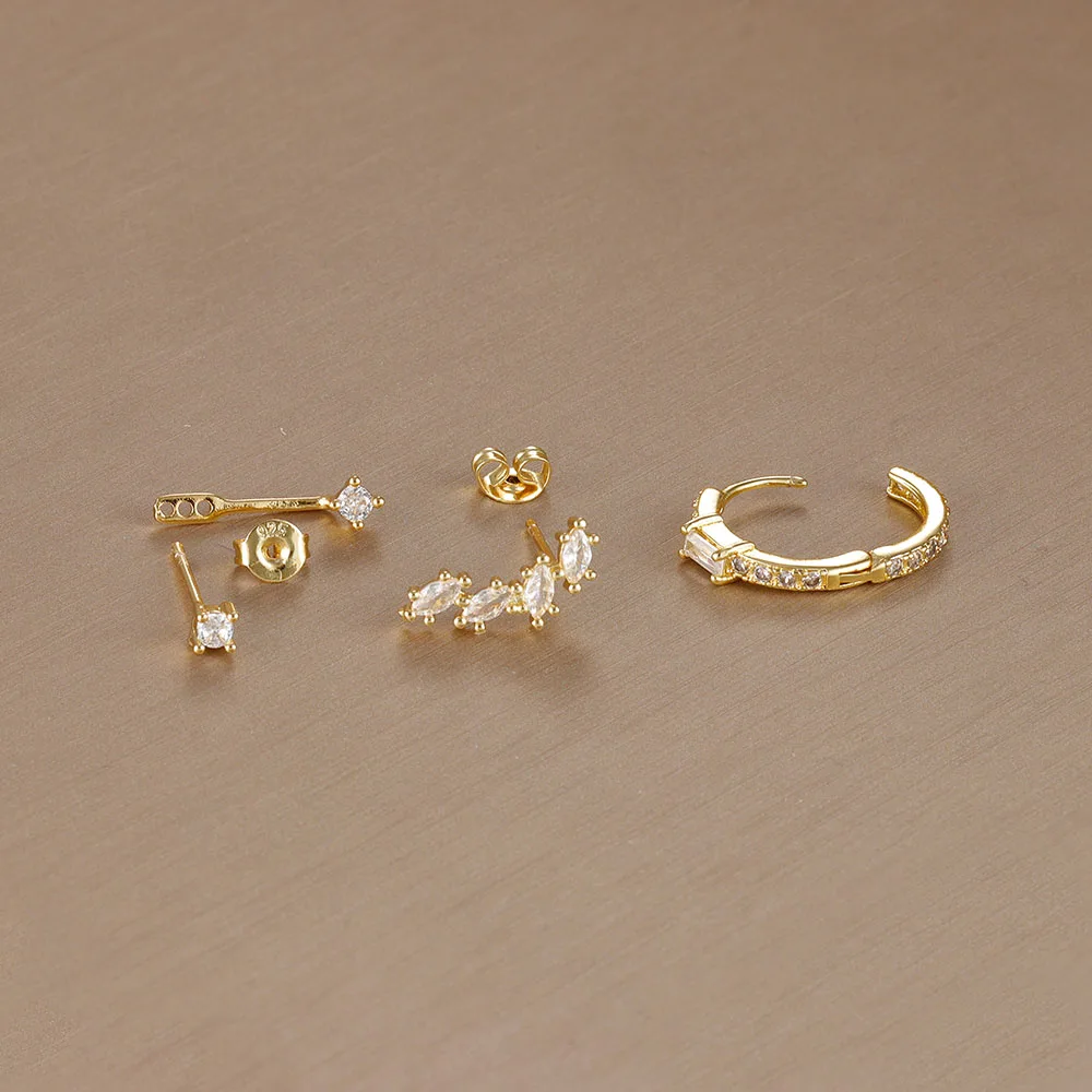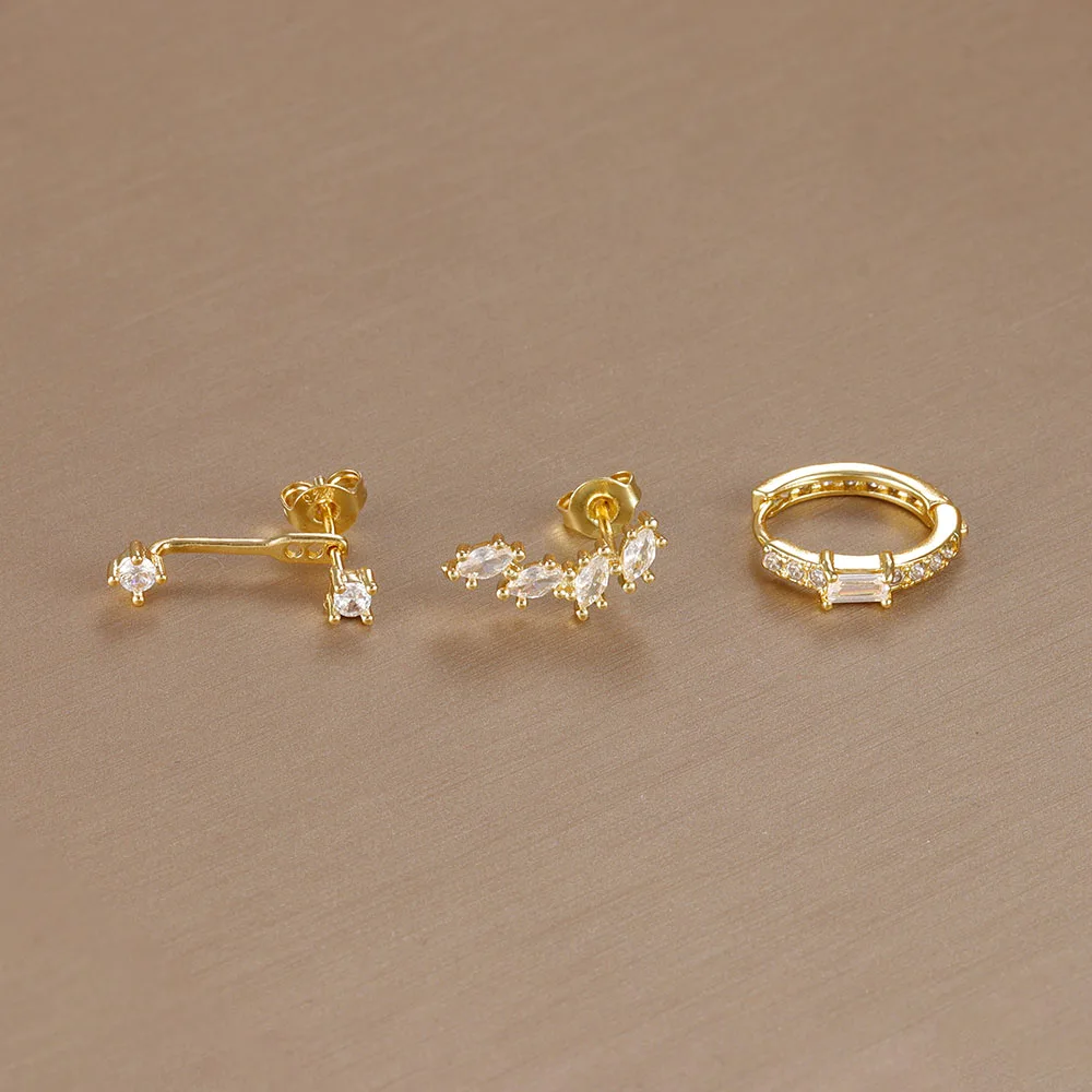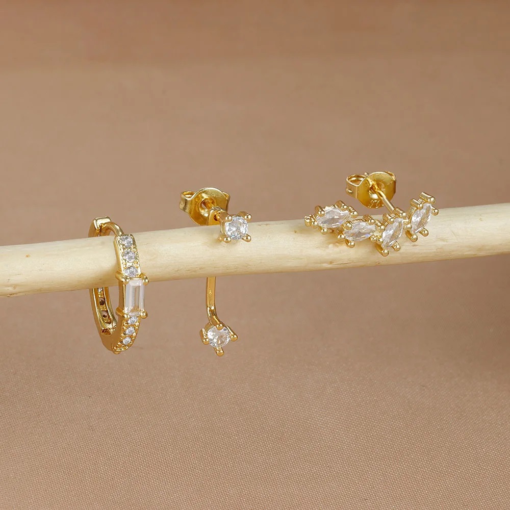 3PCS Korean Stainless Steel Crystal Zirconia Round Hoop Earrings Set For Women Gold Plated Fashion Jewelry Gift aretes de mujer
