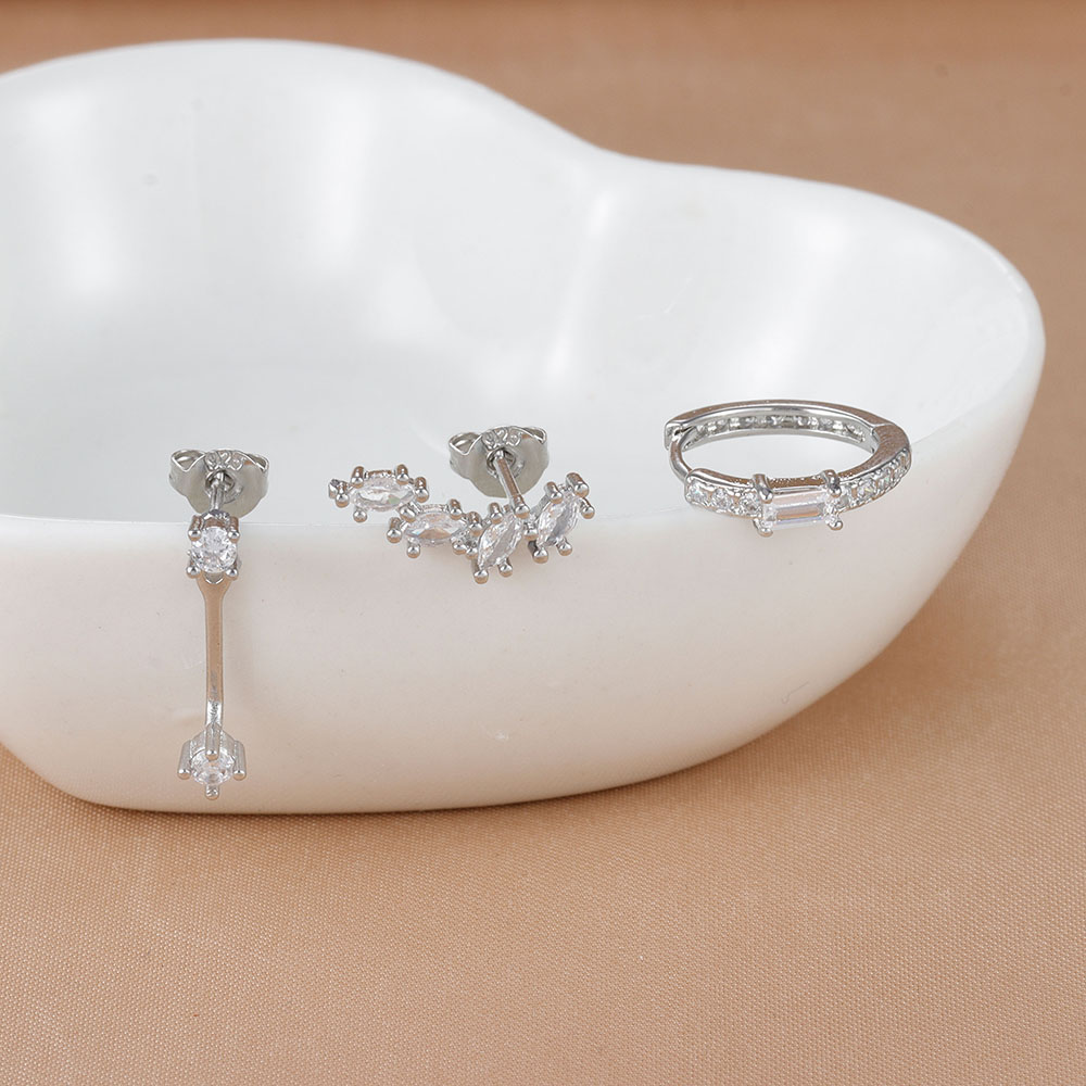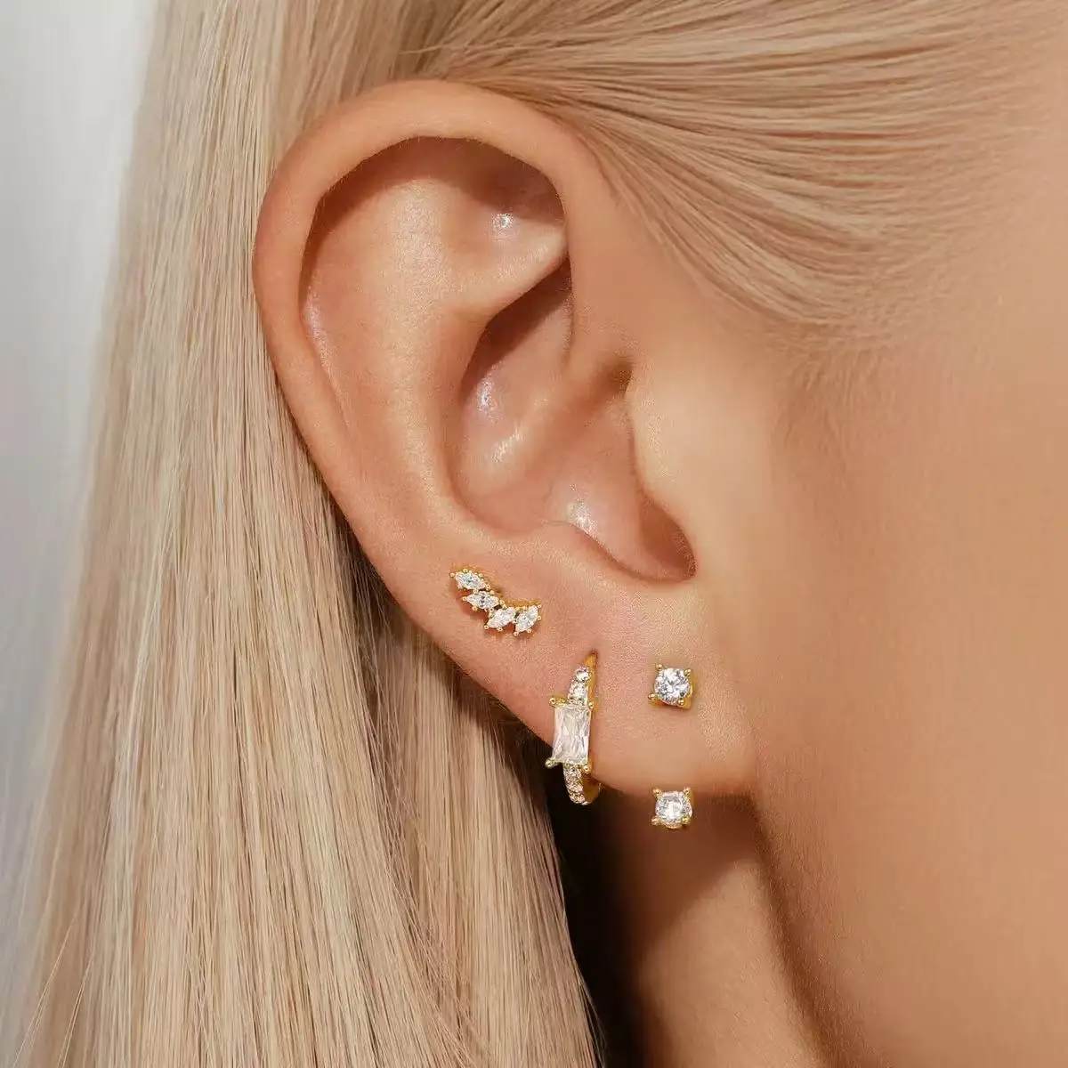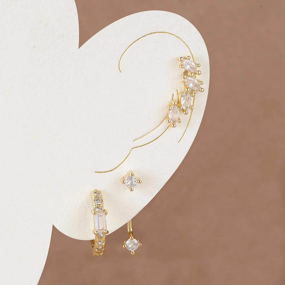 3PCS Korean Stainless Steel Crystal Zirconia Round Hoop Earrings Set For Women Gold Plated Fashion Jewelry Gift aretes de mujer
