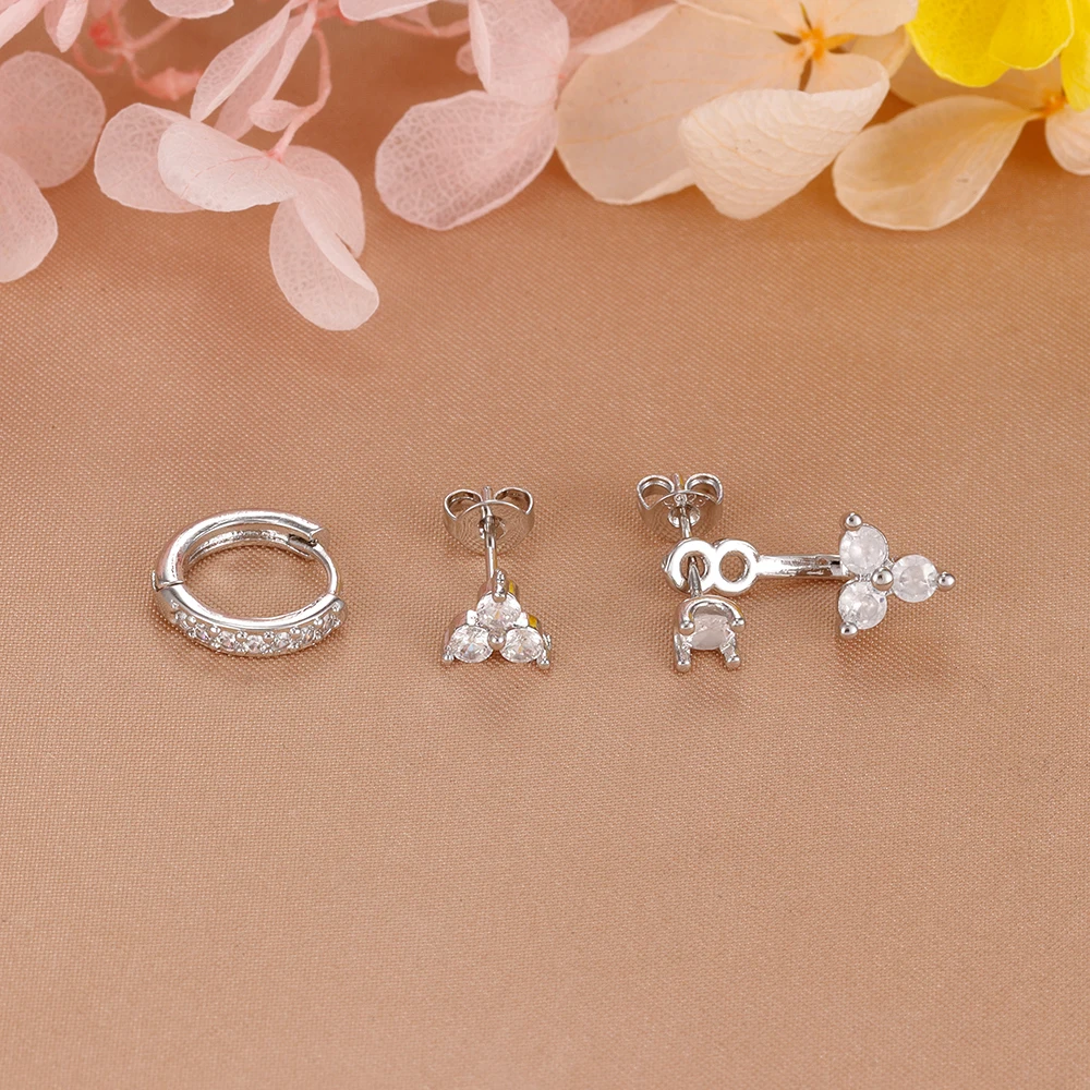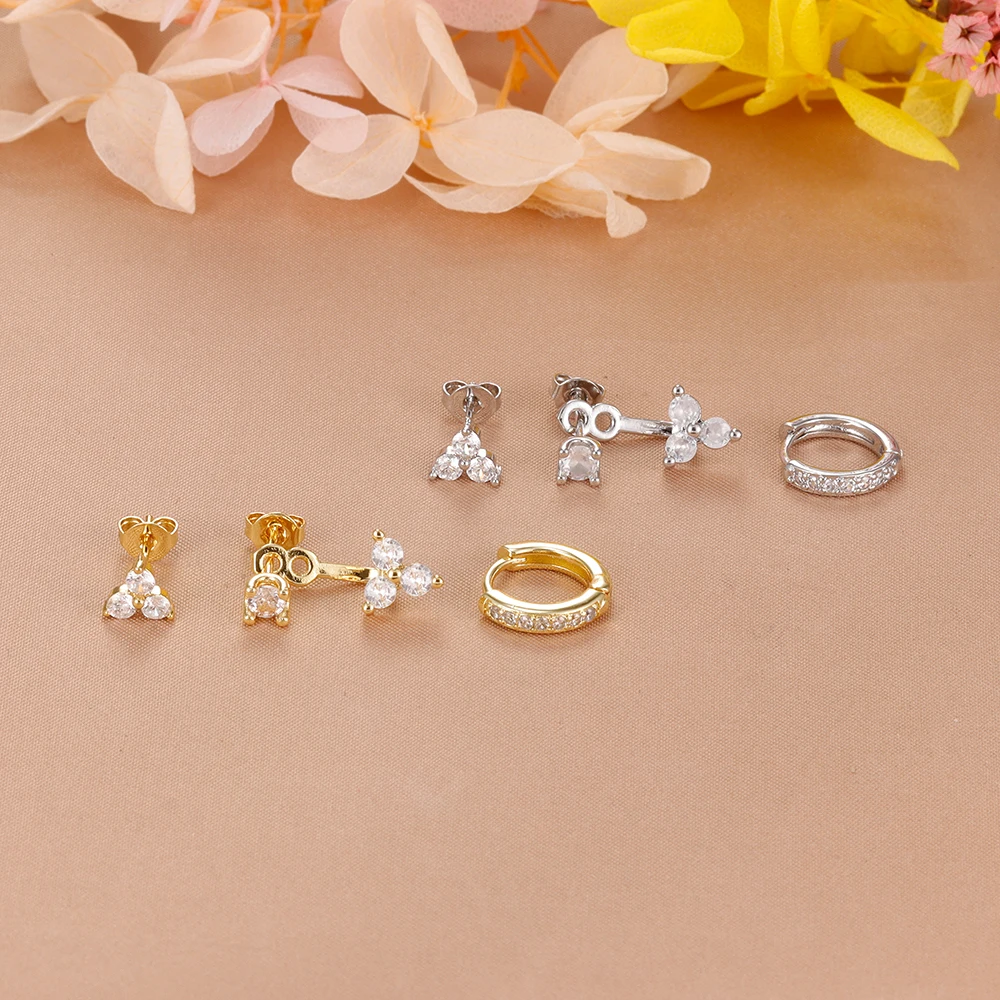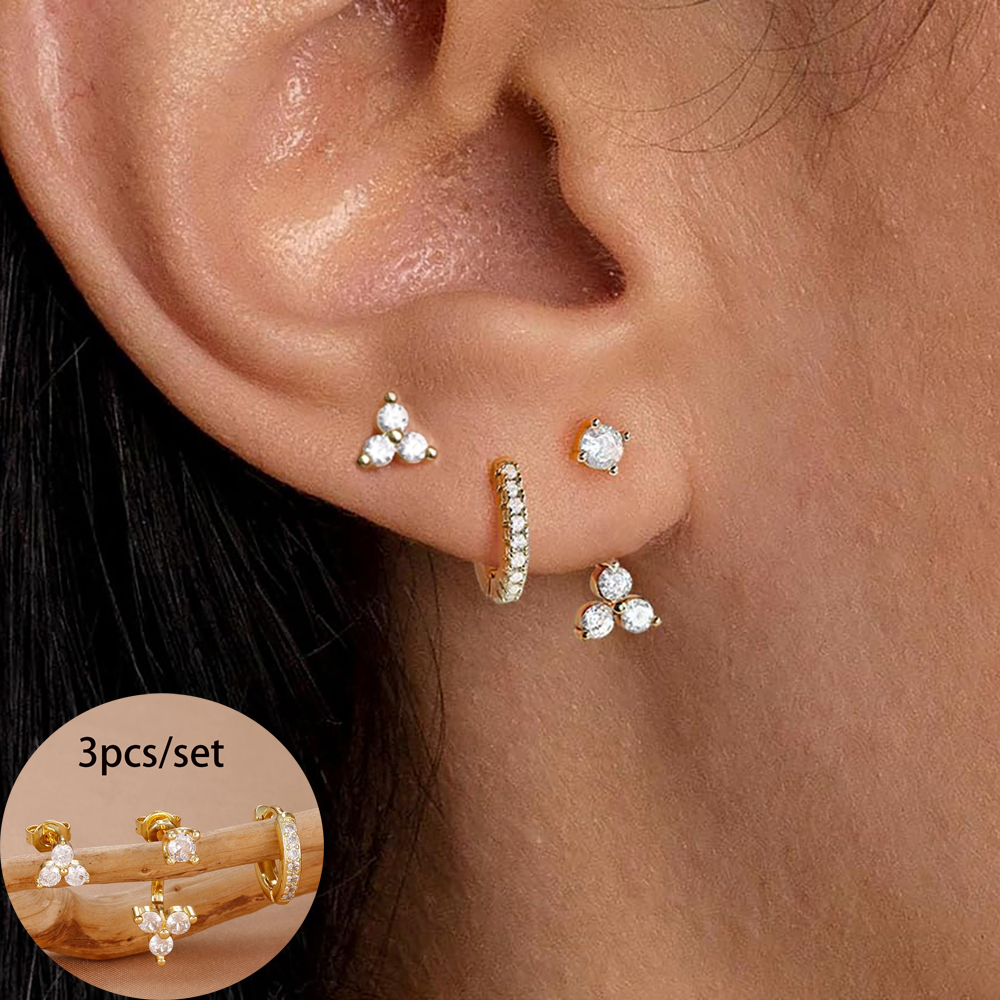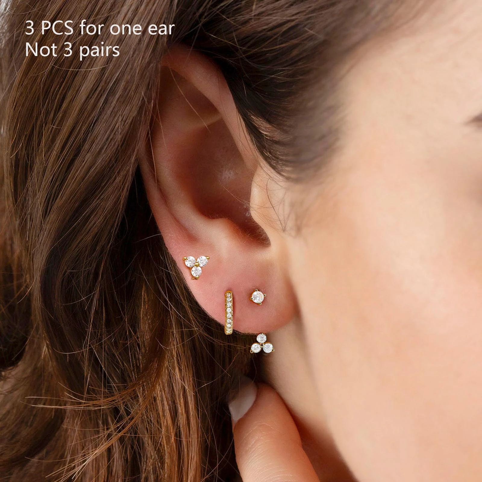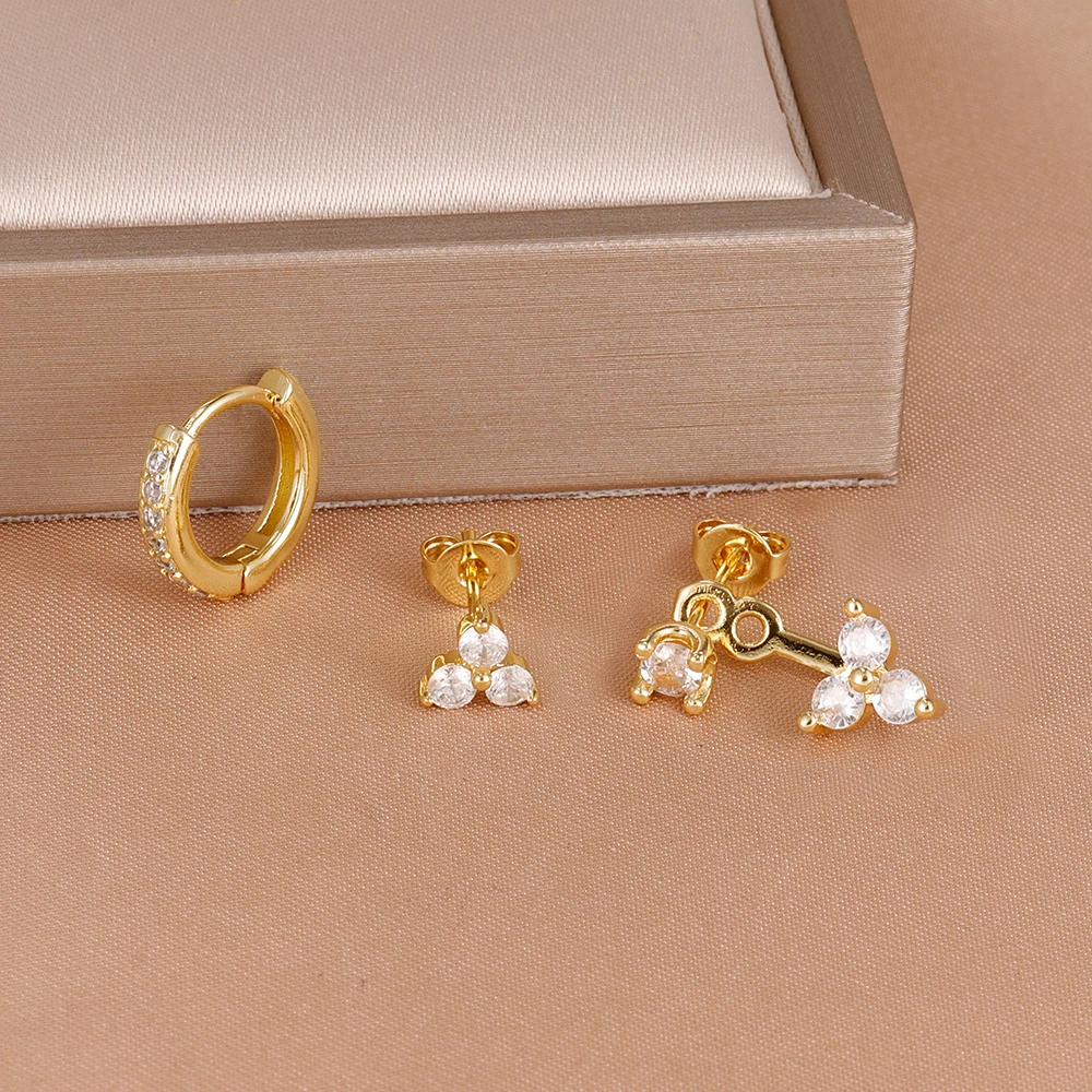 3PCS Korean Stainless Steel CZ Hoop Earrings Set for Women 18K Gold Plated Huggies Cartilage Piercing Earring Fashion Jewelry