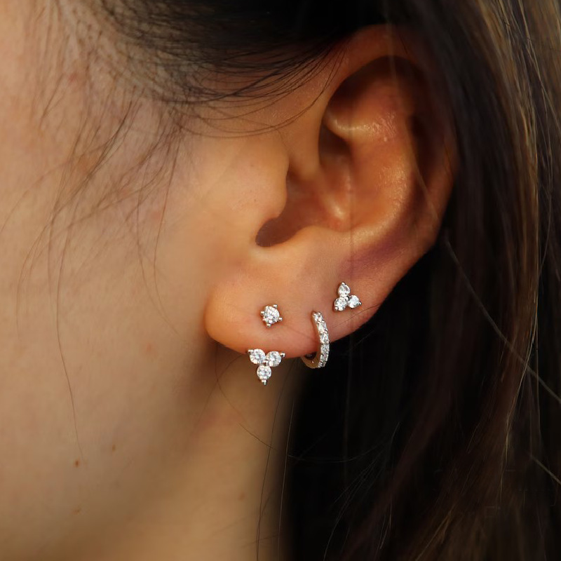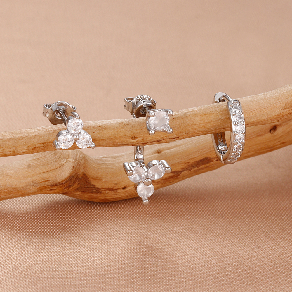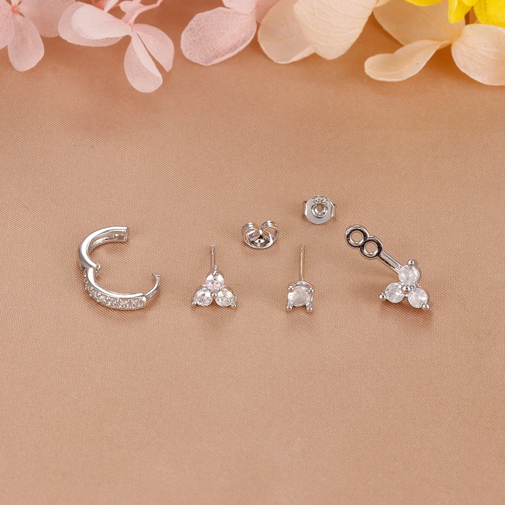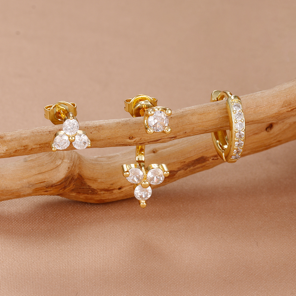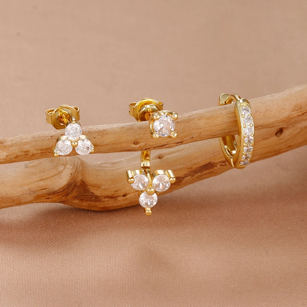 3PCS Korean Stainless Steel CZ Hoop Earrings Set for Women 18K Gold Plated Huggies Cartilage Piercing Earring Fashion Jewelry