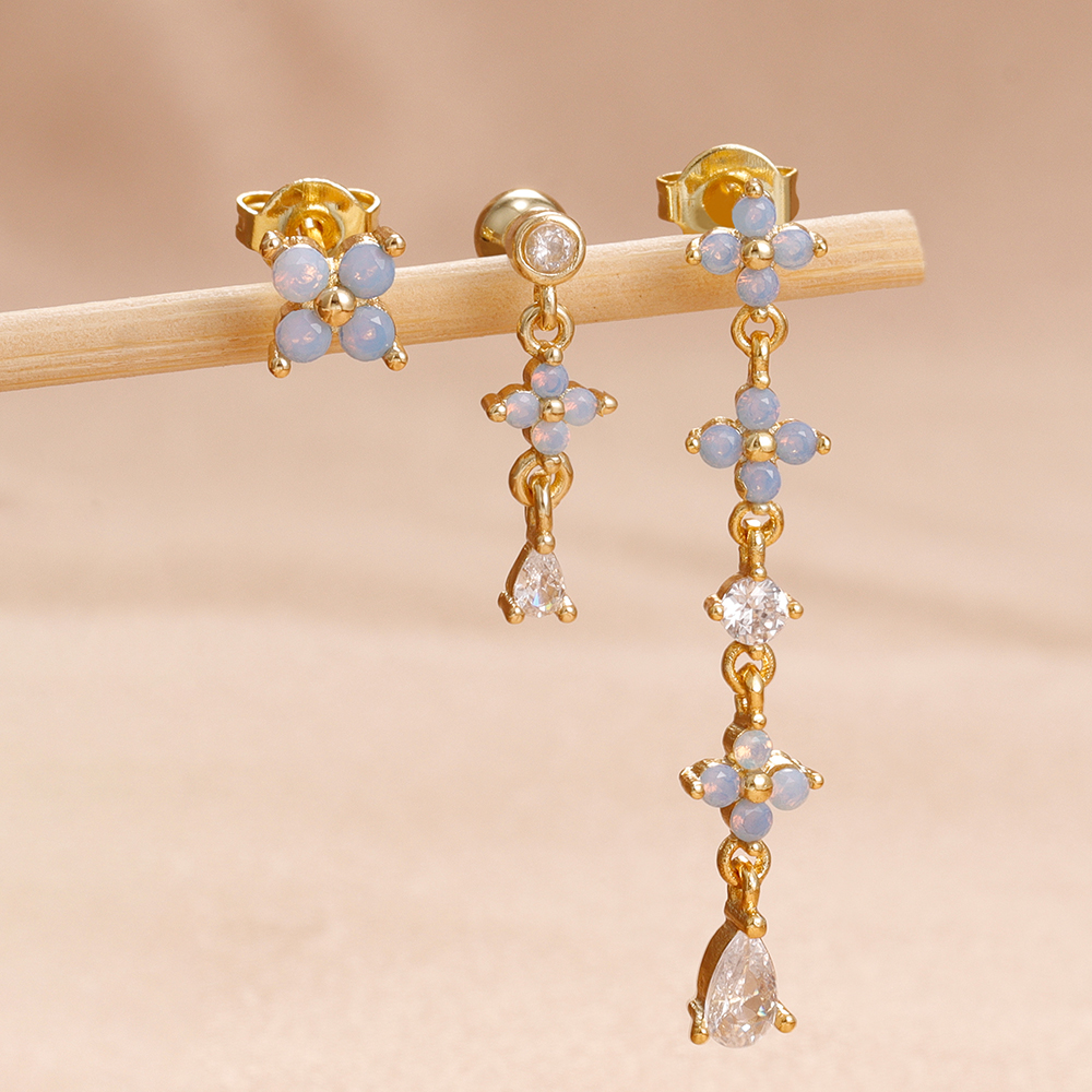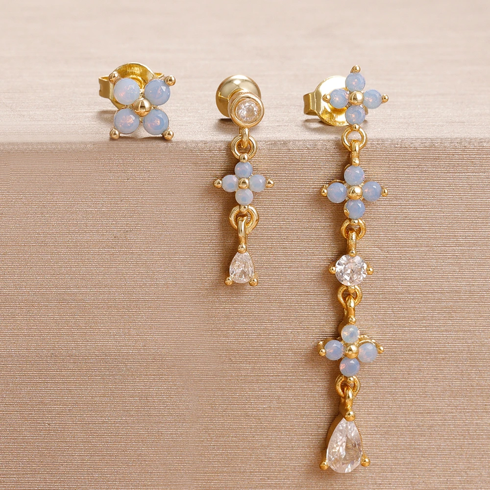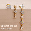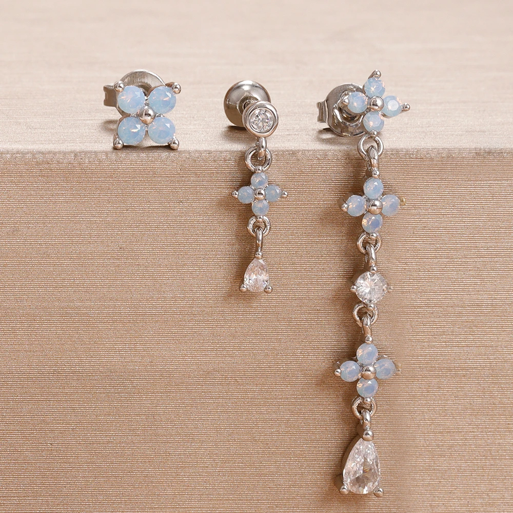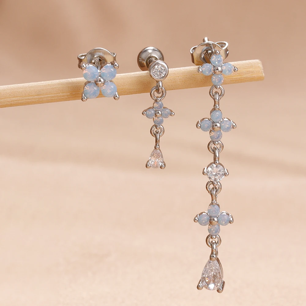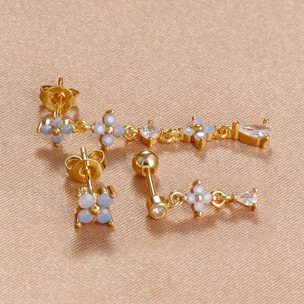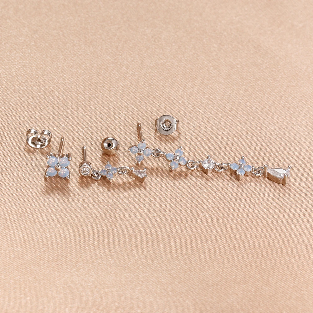 3PCS Luxury Blue Flower CZ Ear Stud Earrings Set For Women Exquisite Cubic Zirconia Stainless Steel Earring Fashion Jewelry